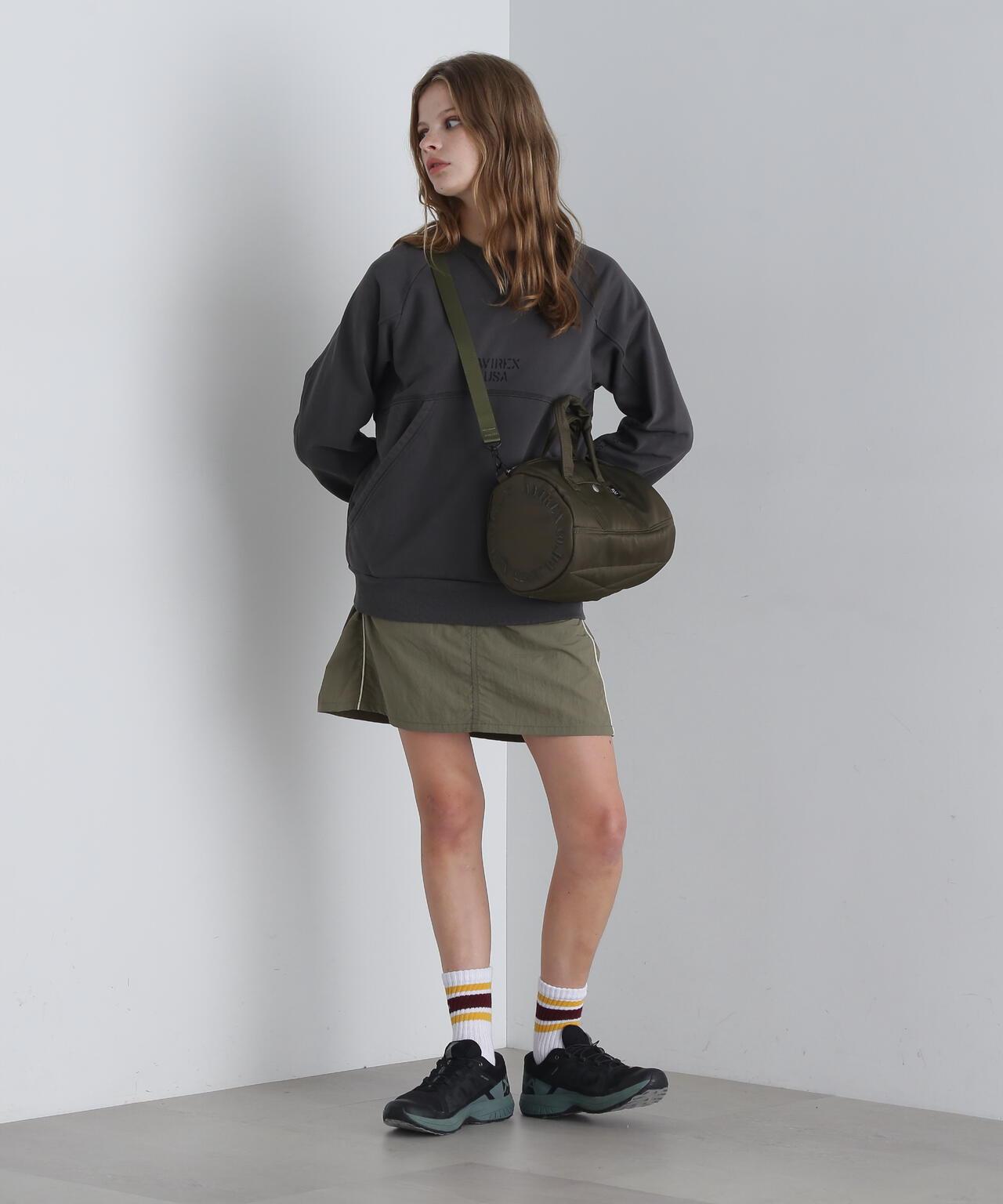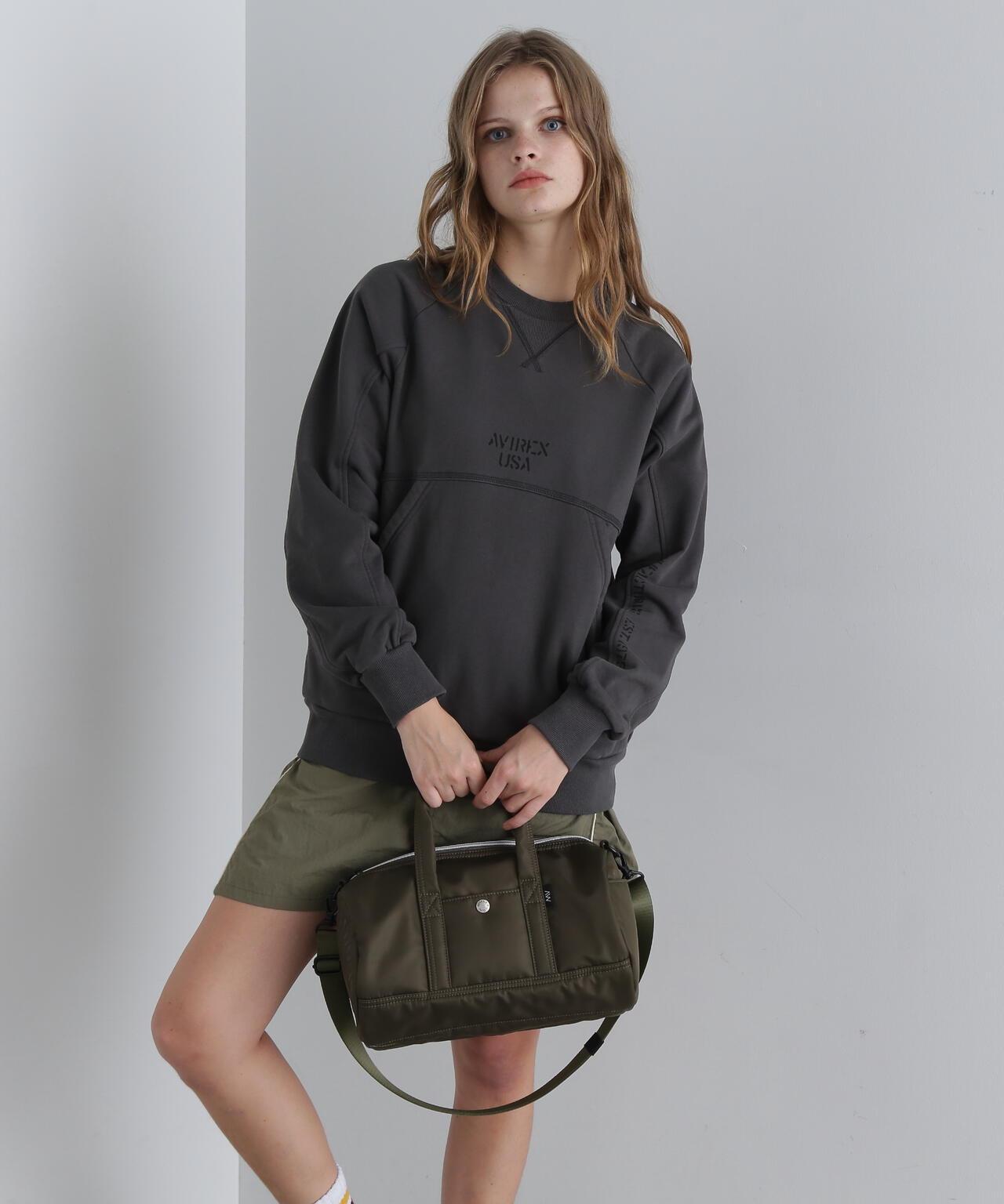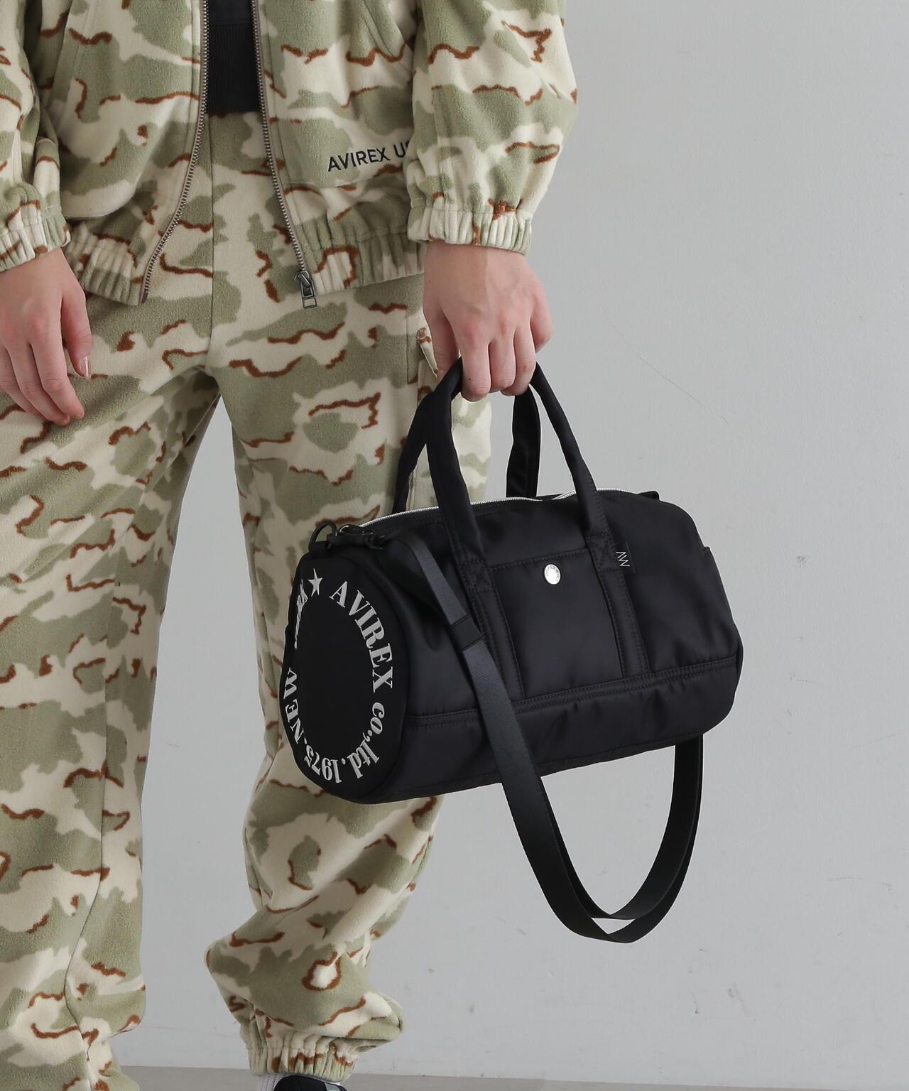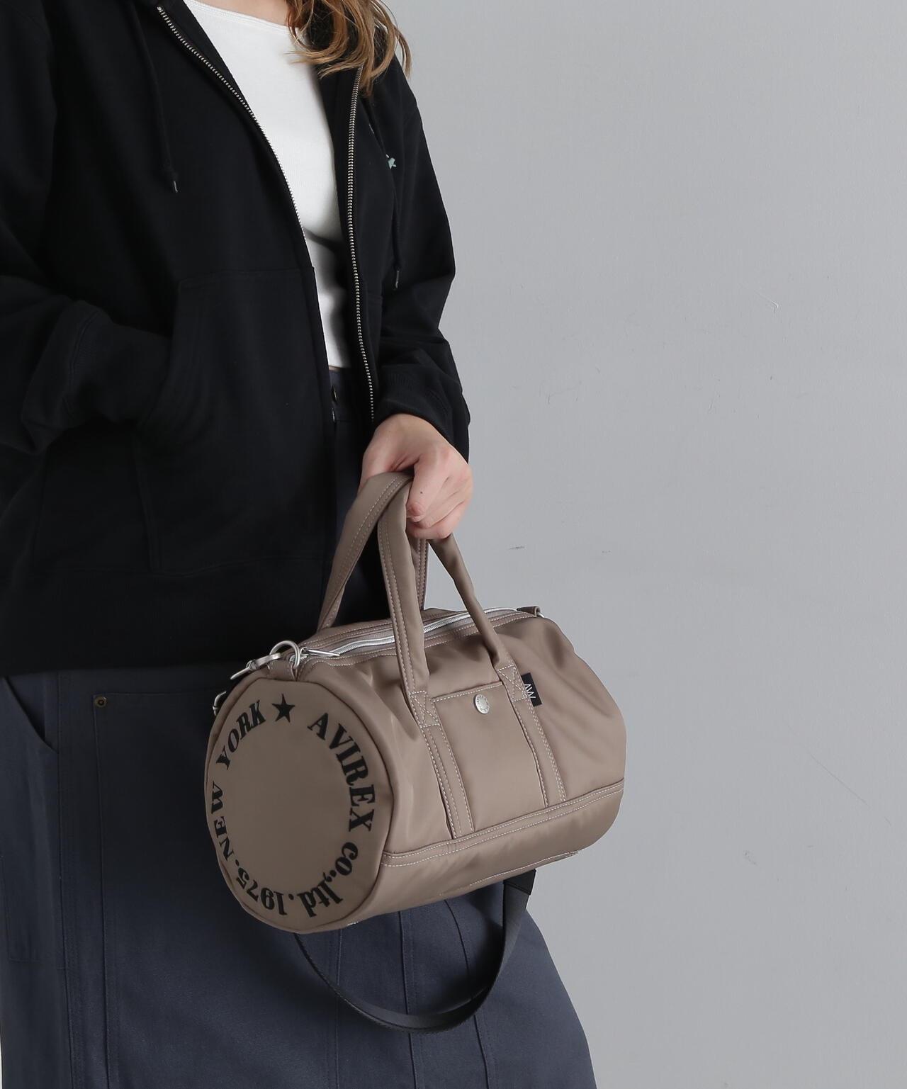AVIREX Official Shop] MINI DUFFLE BAG - 雖然是迷你尺寸,但包口很寬,實用性很強 - 側邊刺繡的標誌很有特色 - 內外都有小口袋 - 肩帶可拆卸。AVIREX WOMAN] 該系列將純正軍裝的功能性和設計感投射到女士休閒裝上。作為一個獨特而永恆的女裝品牌,它為聰慧、自由、好奇、高貴和活潑的成年職業女性提供女式休閒裝。