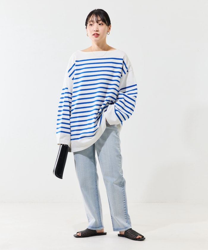在春季,我們建議搭配玄色邊框 T 恤和芭蕾舞鞋,打造法式休閒造型!