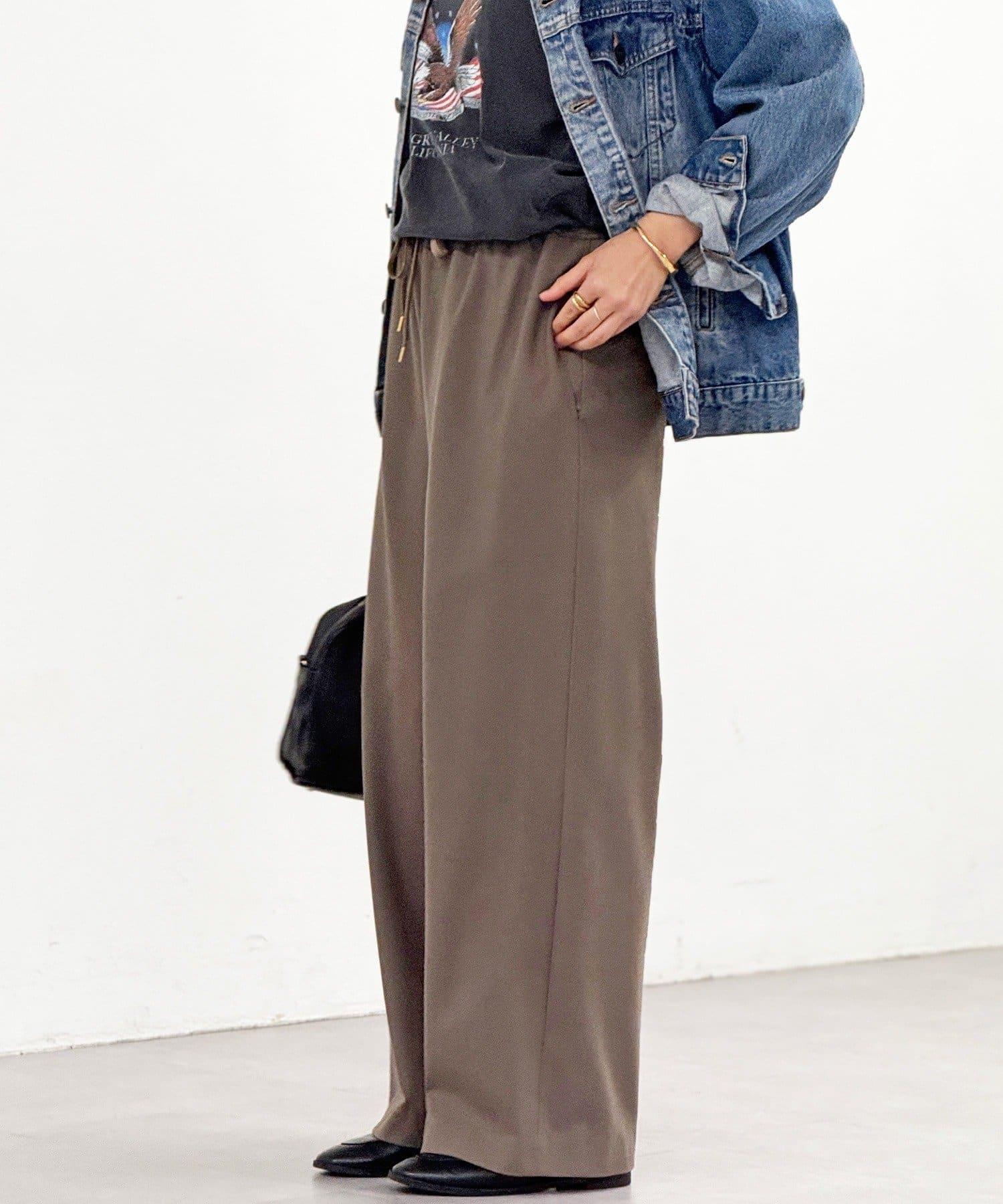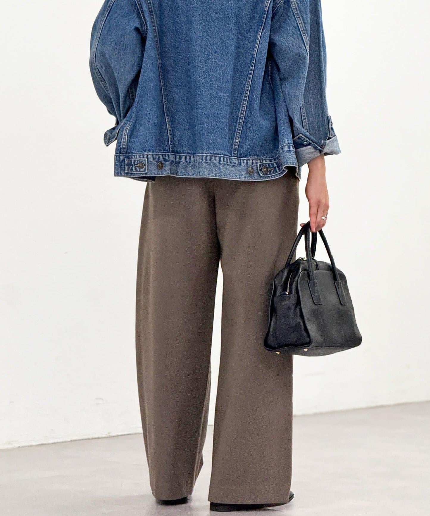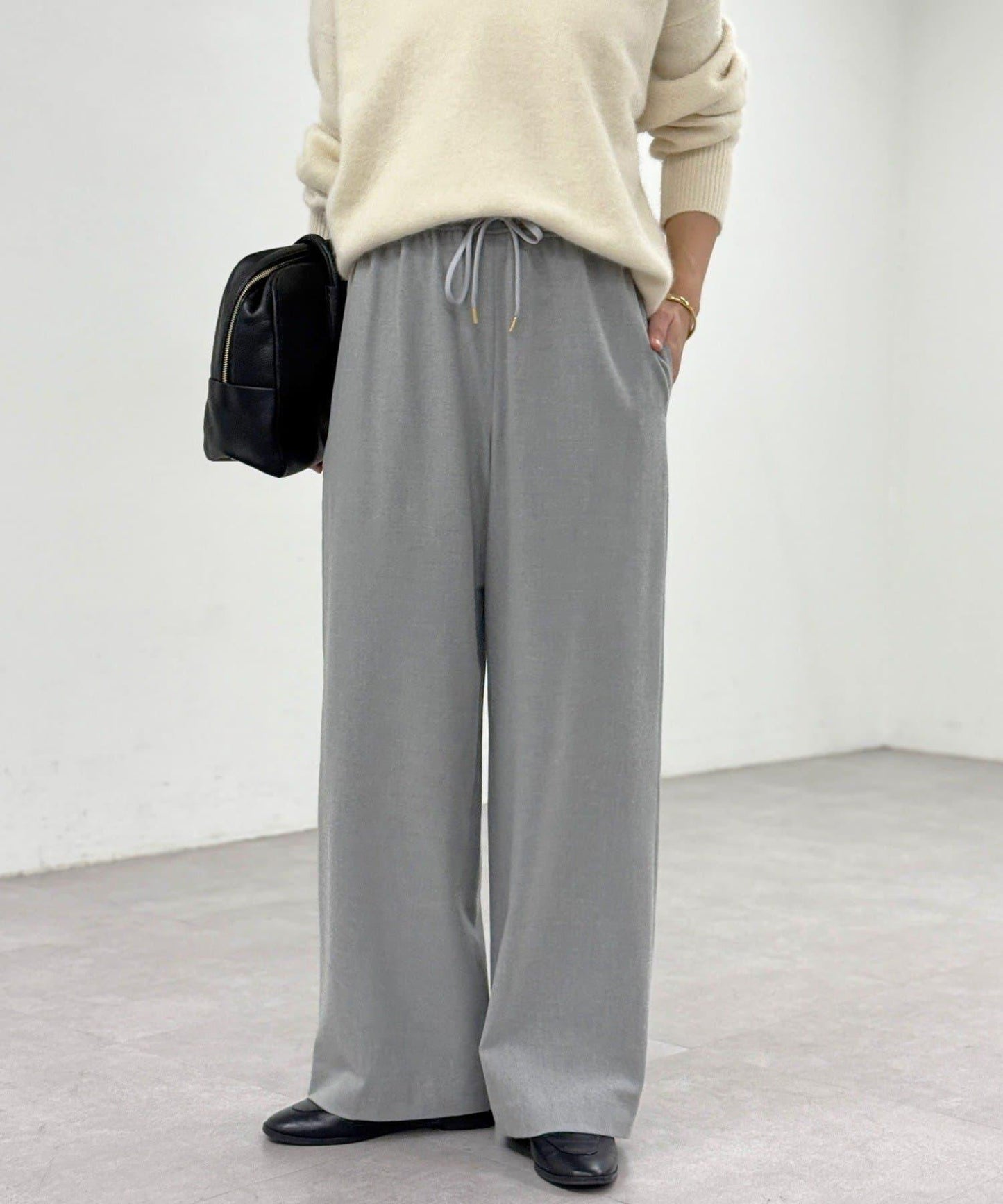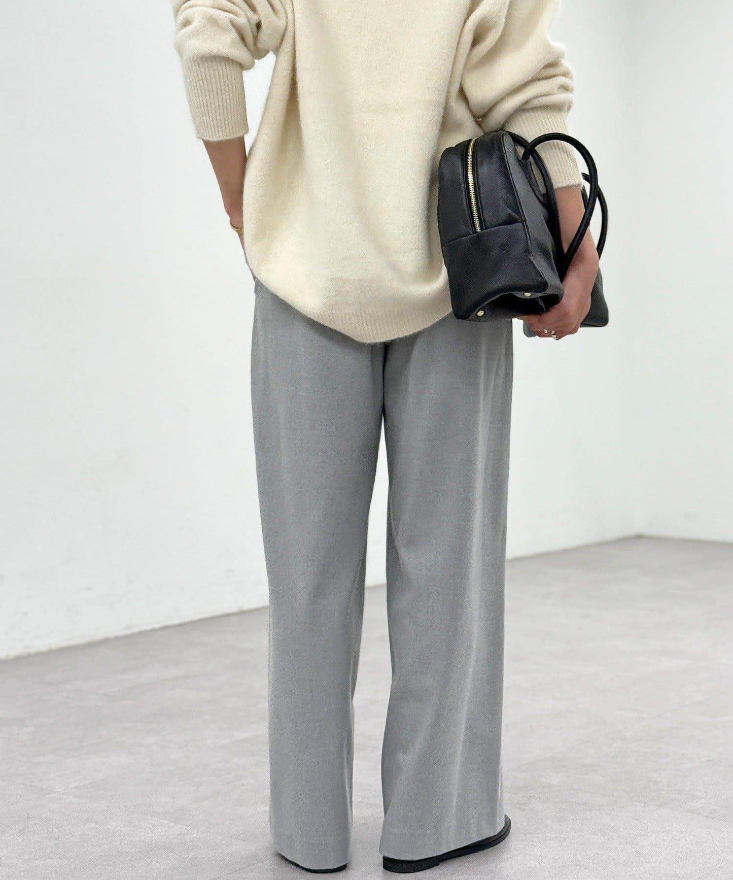 直筒闊腿長褲,採用雙面磨毛面料,在隆冬時節仍可保暖舒適。
