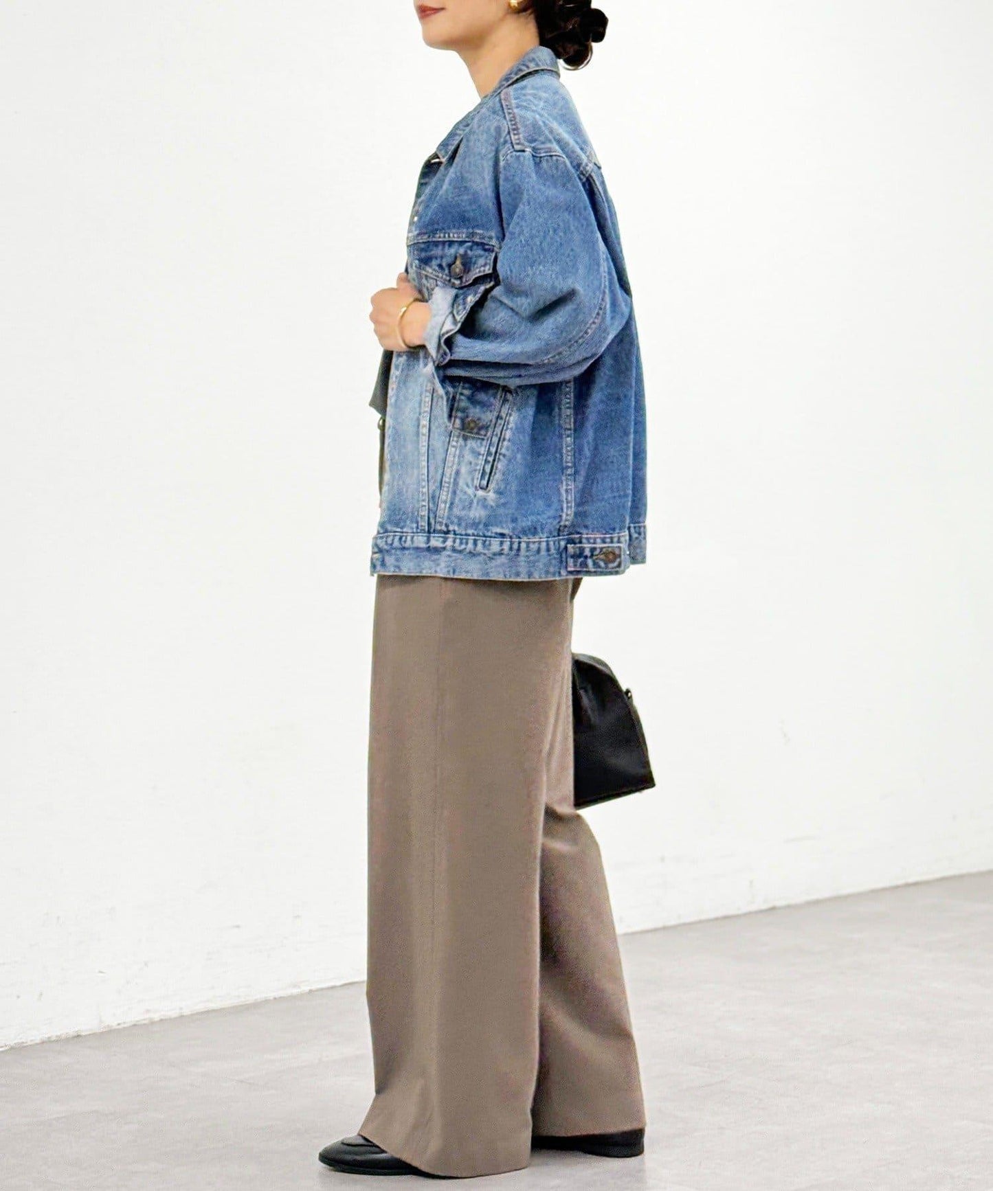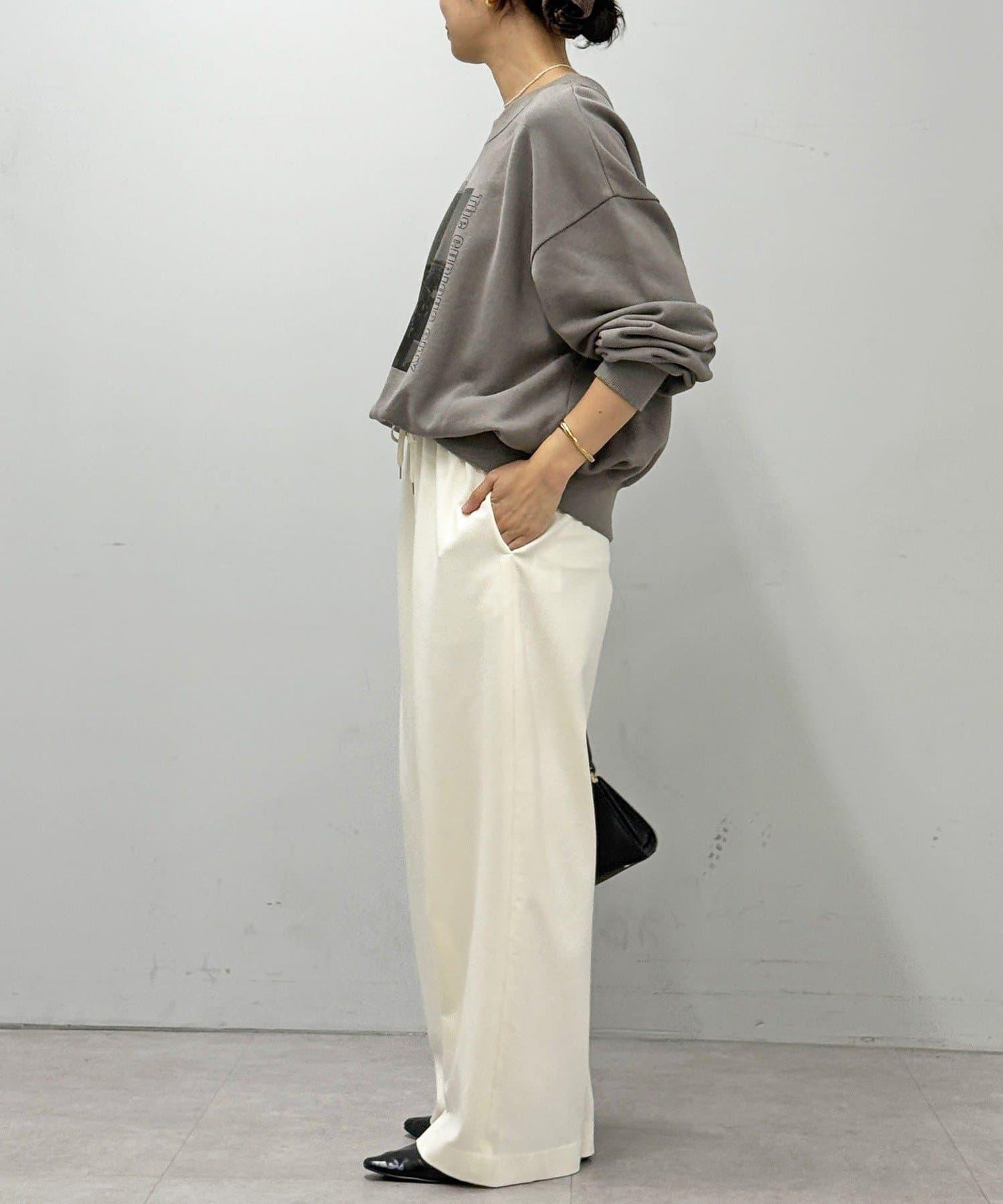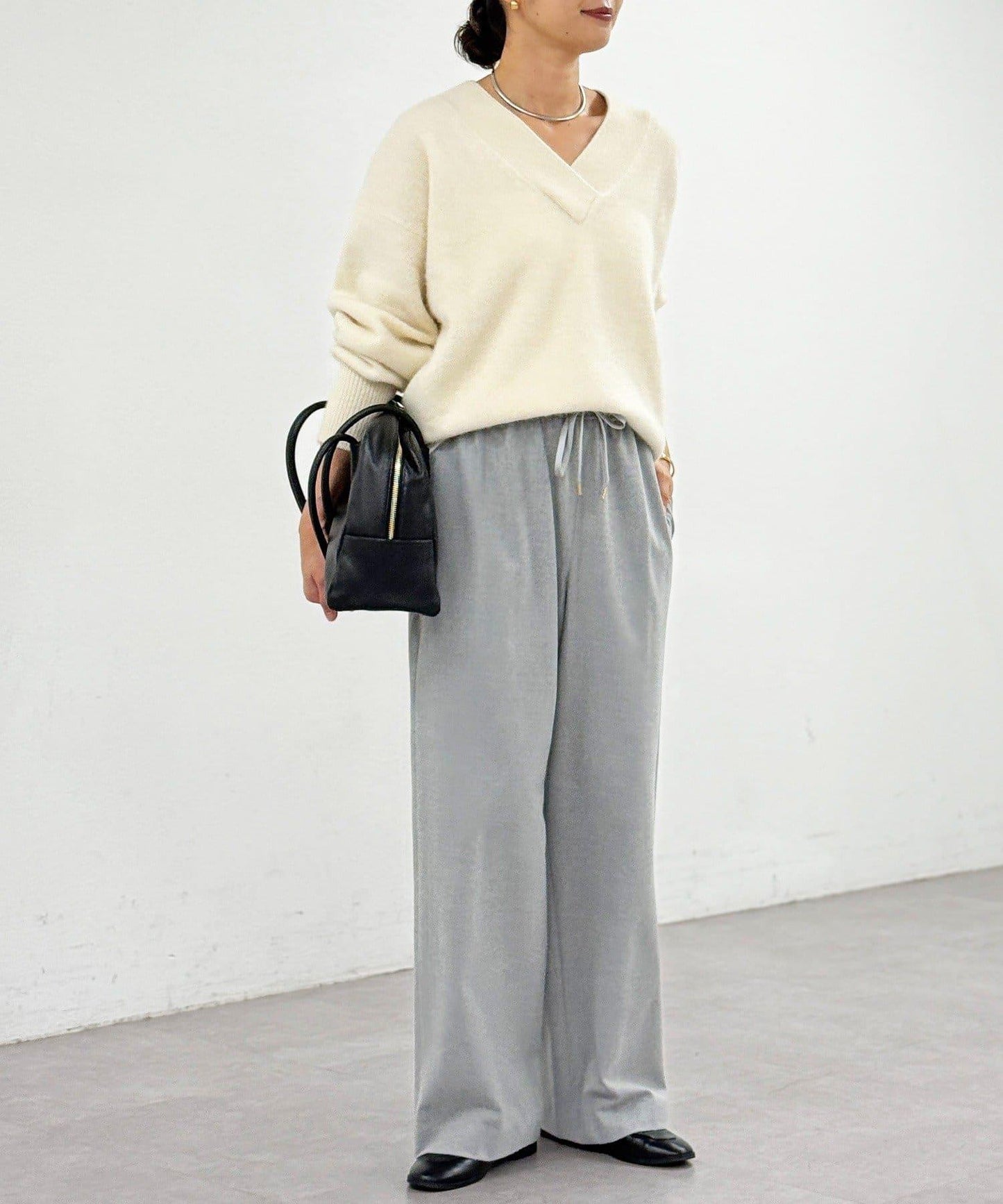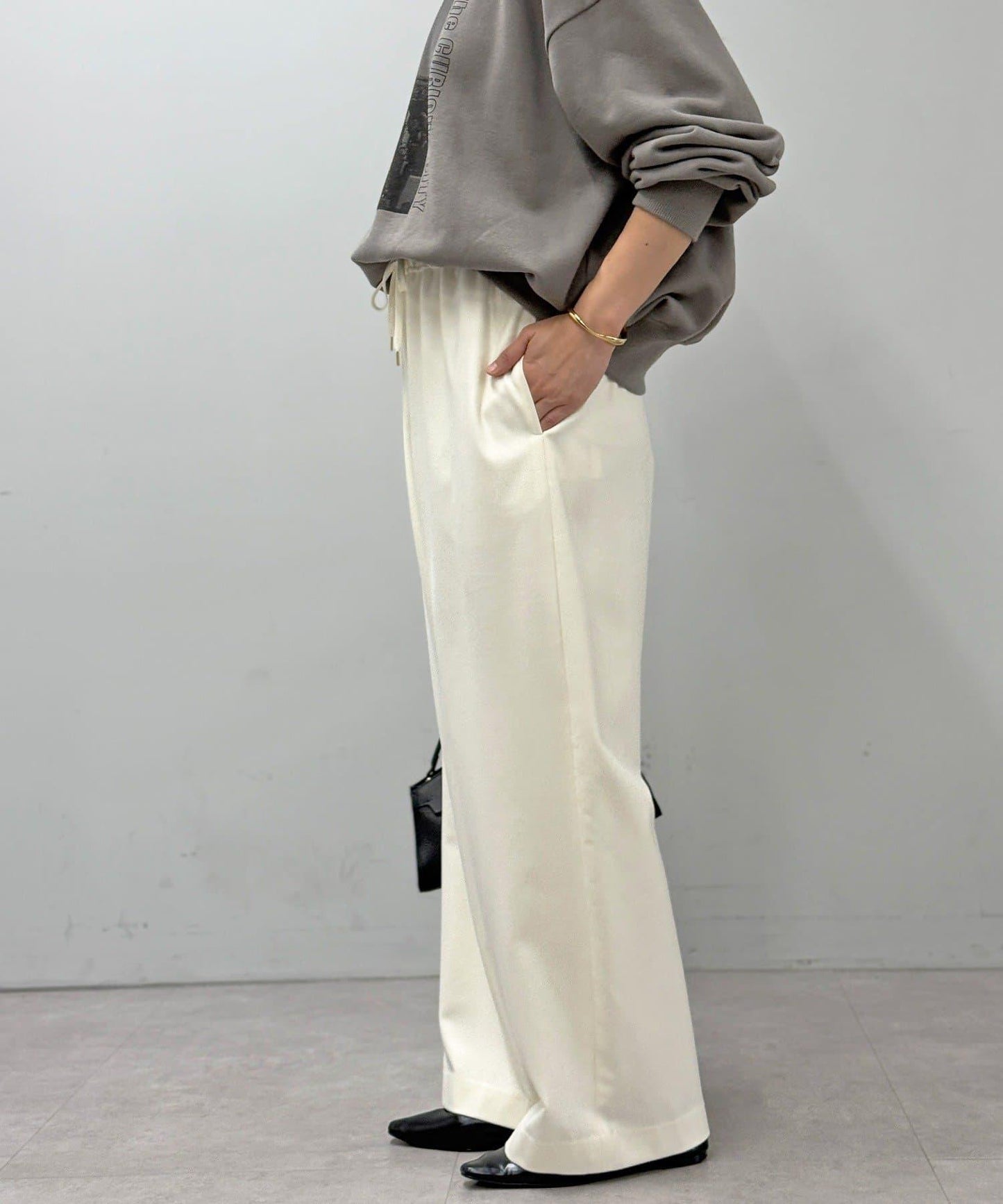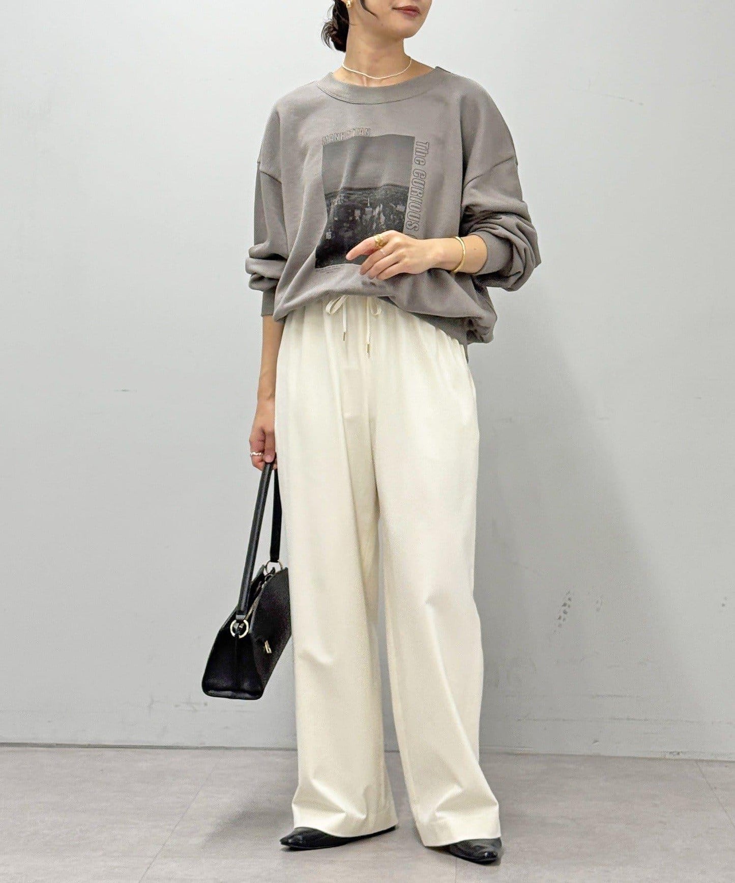 直筒闊腿長褲,採用雙面磨毛面料,在隆冬時節仍可保暖舒適。