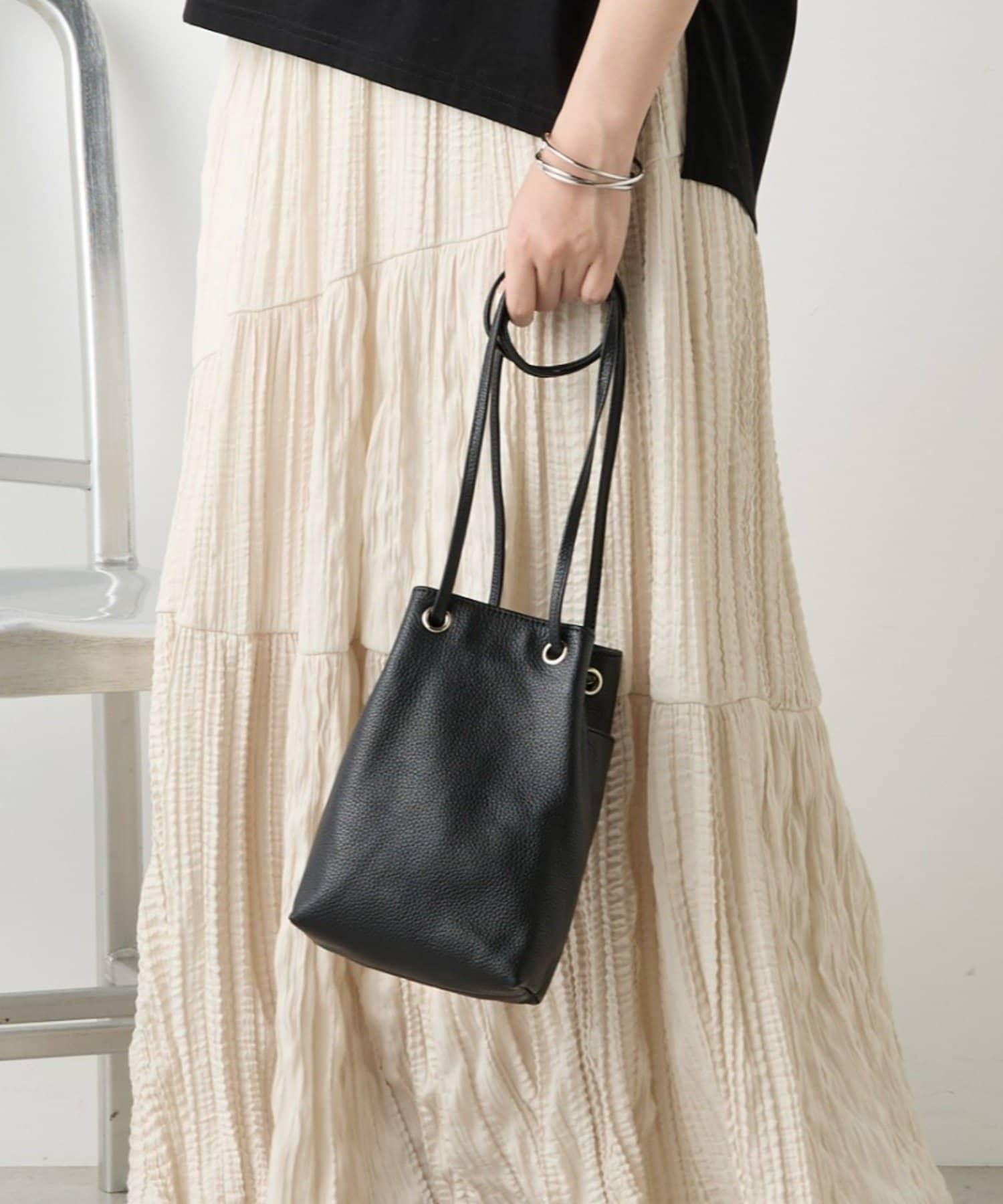 包包由柔軟的人造皮革製成,配以金色五金件。