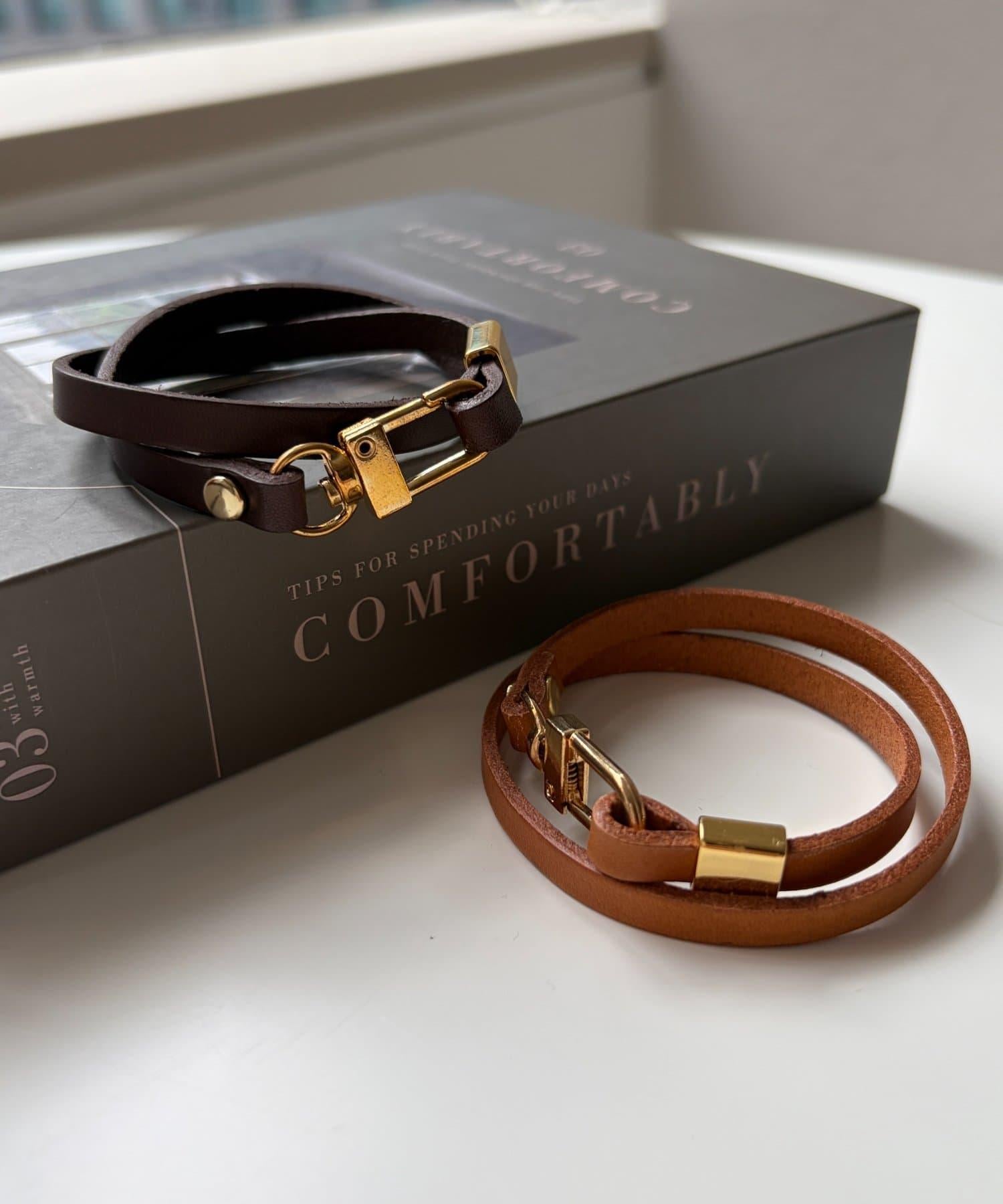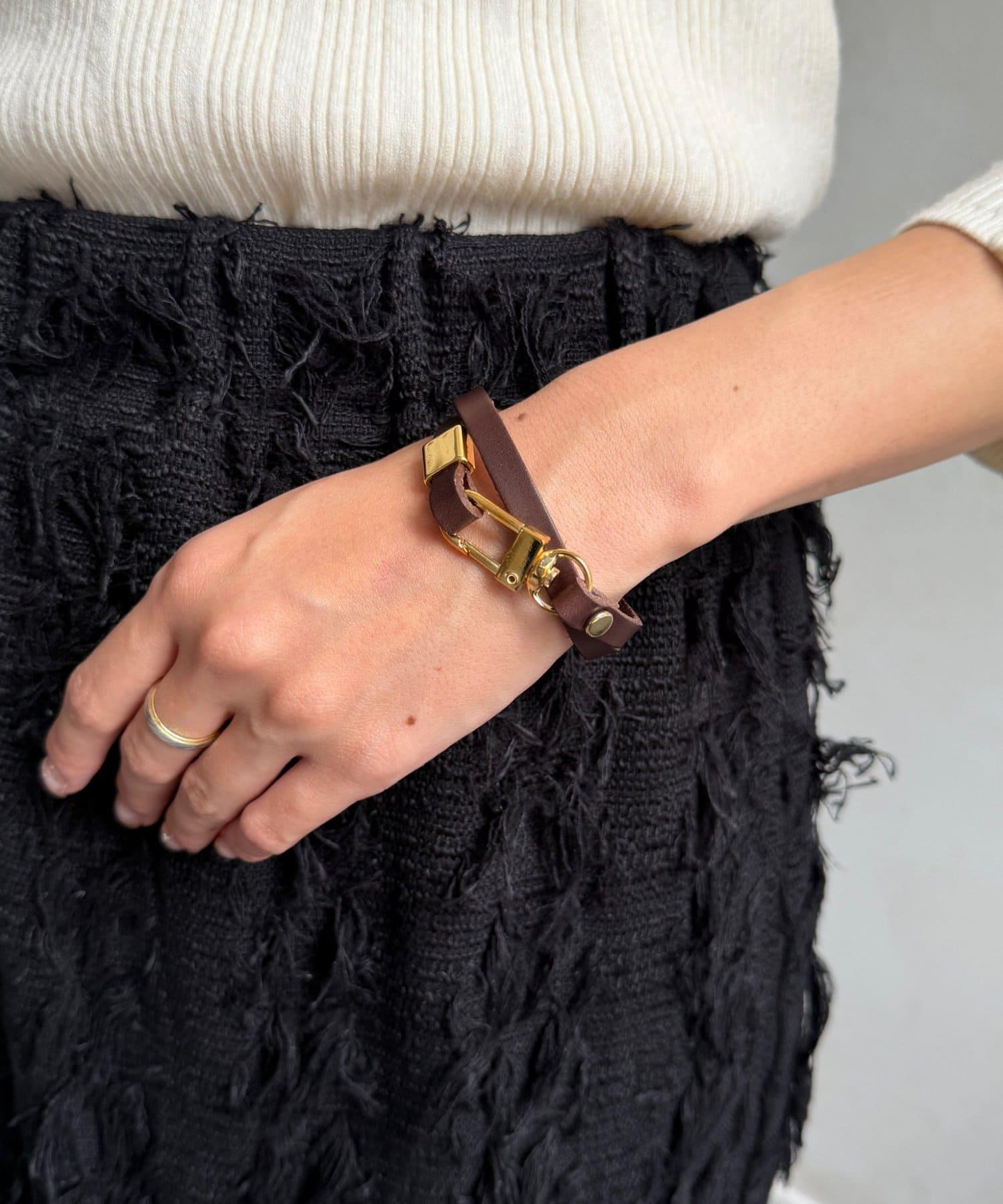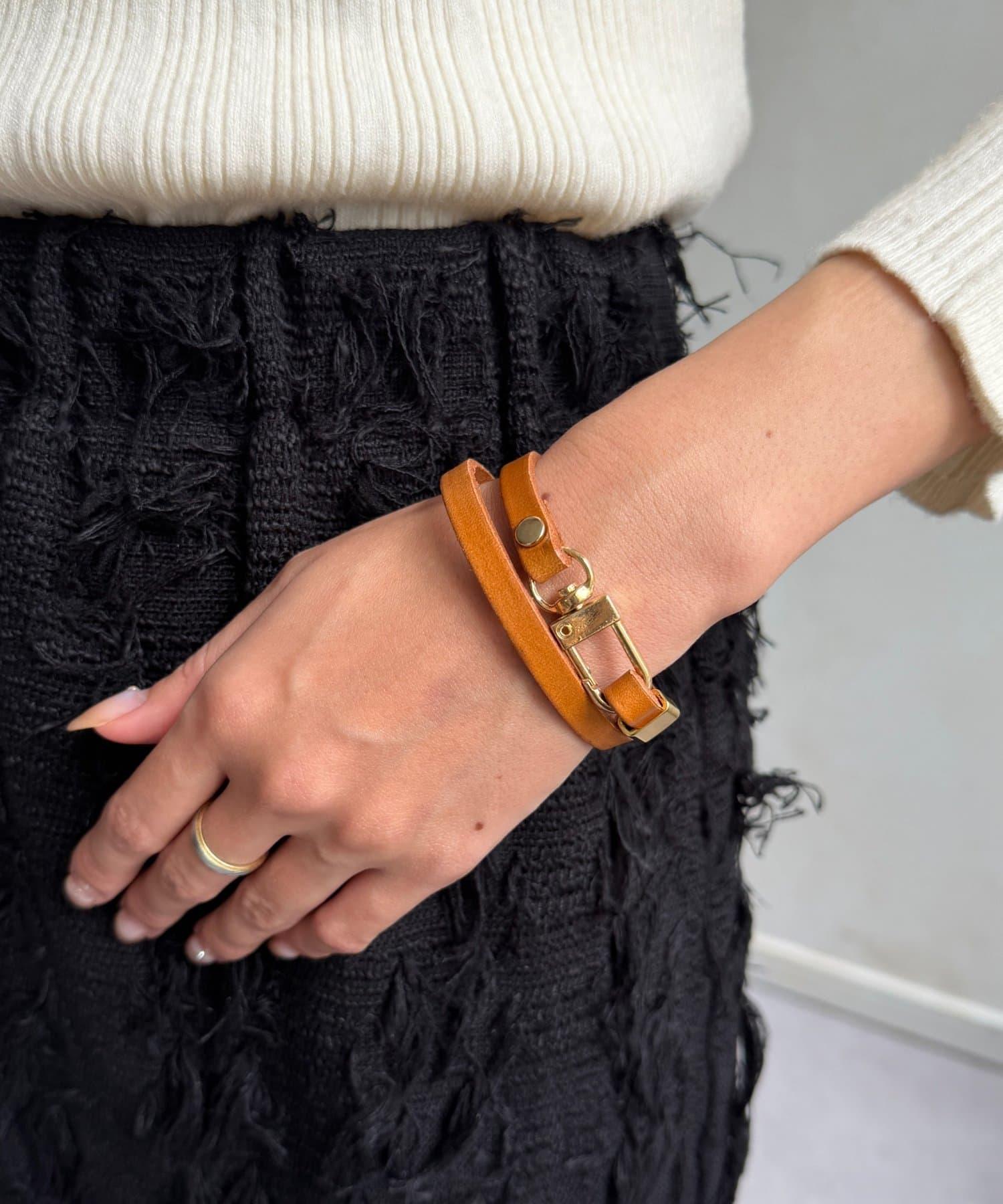 真皮製成的雙股手鍊,給人一種優雅的印象。