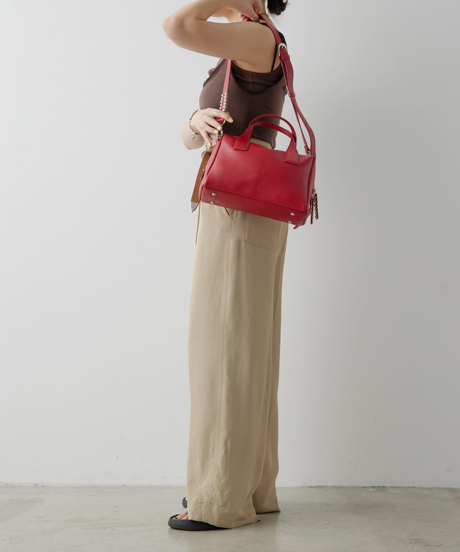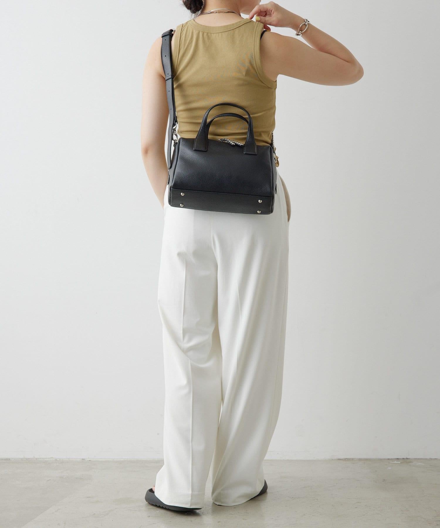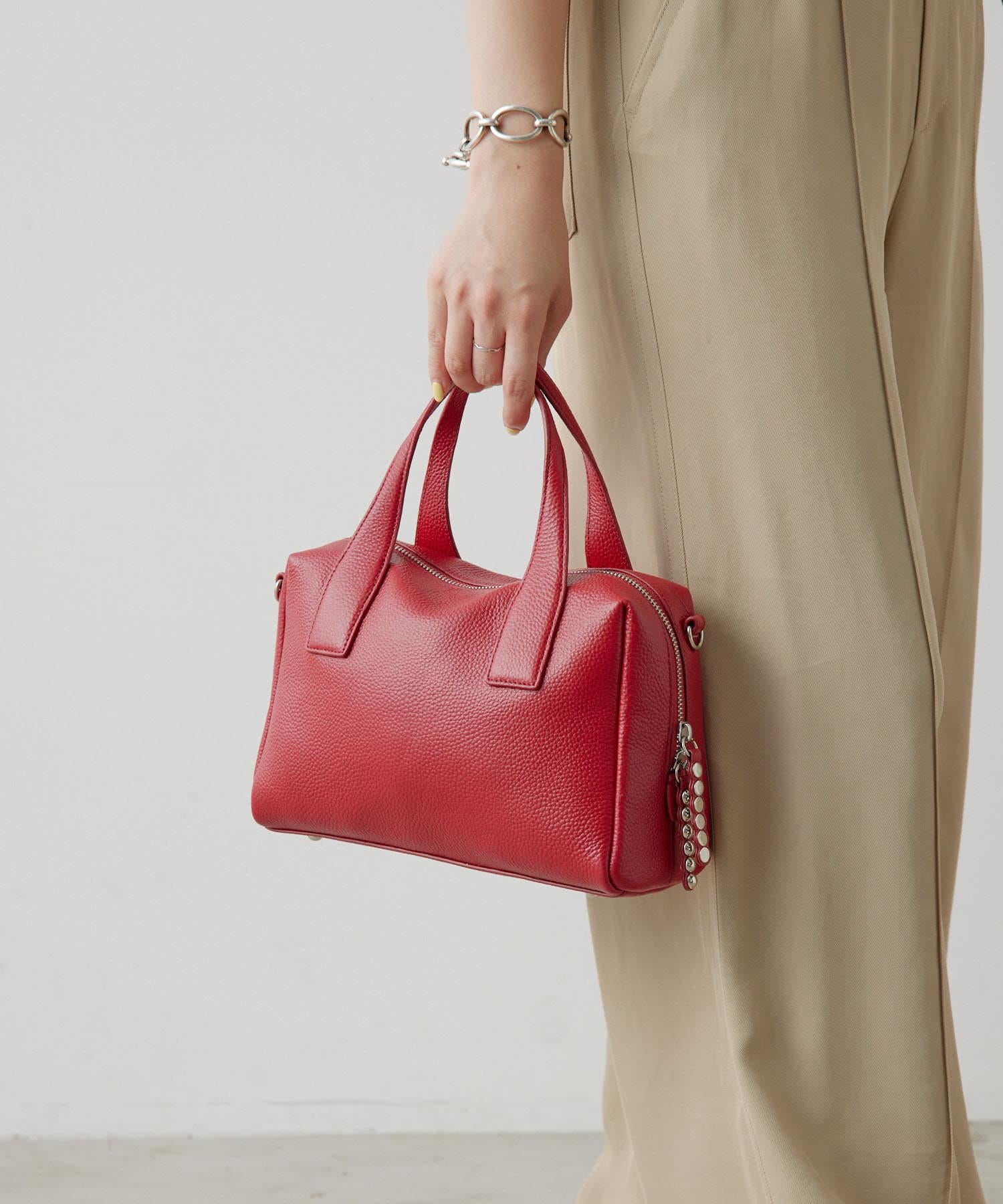 真皮/500毫升寵物瓶也能放入!/帶肩帶/兩用 鉚釘波士頓包