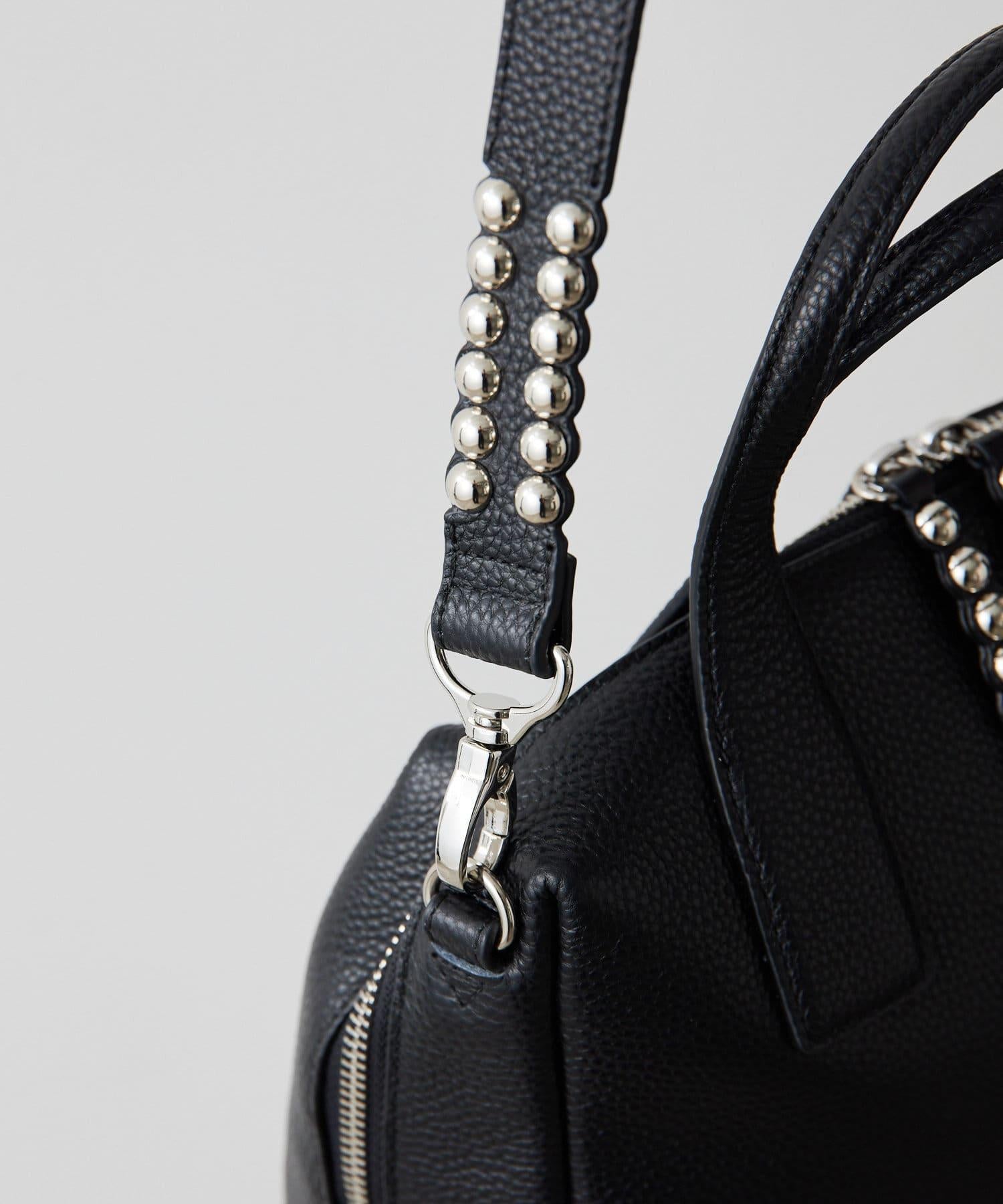 社交網站推薦!帶銀色鉚釘的波士頓皮包。