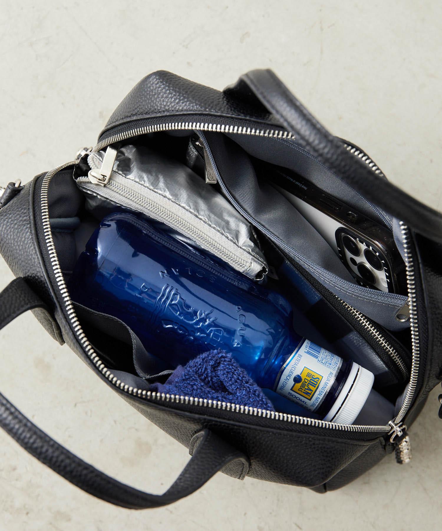 這款中型波士頓包可容納一個長錢包和一個 500 毫升的 PET 瓶。