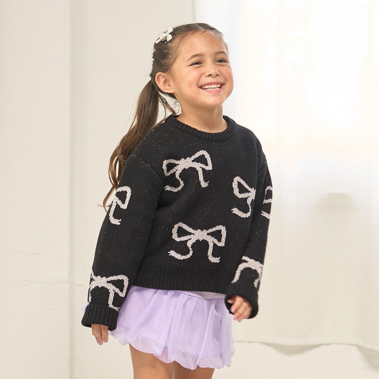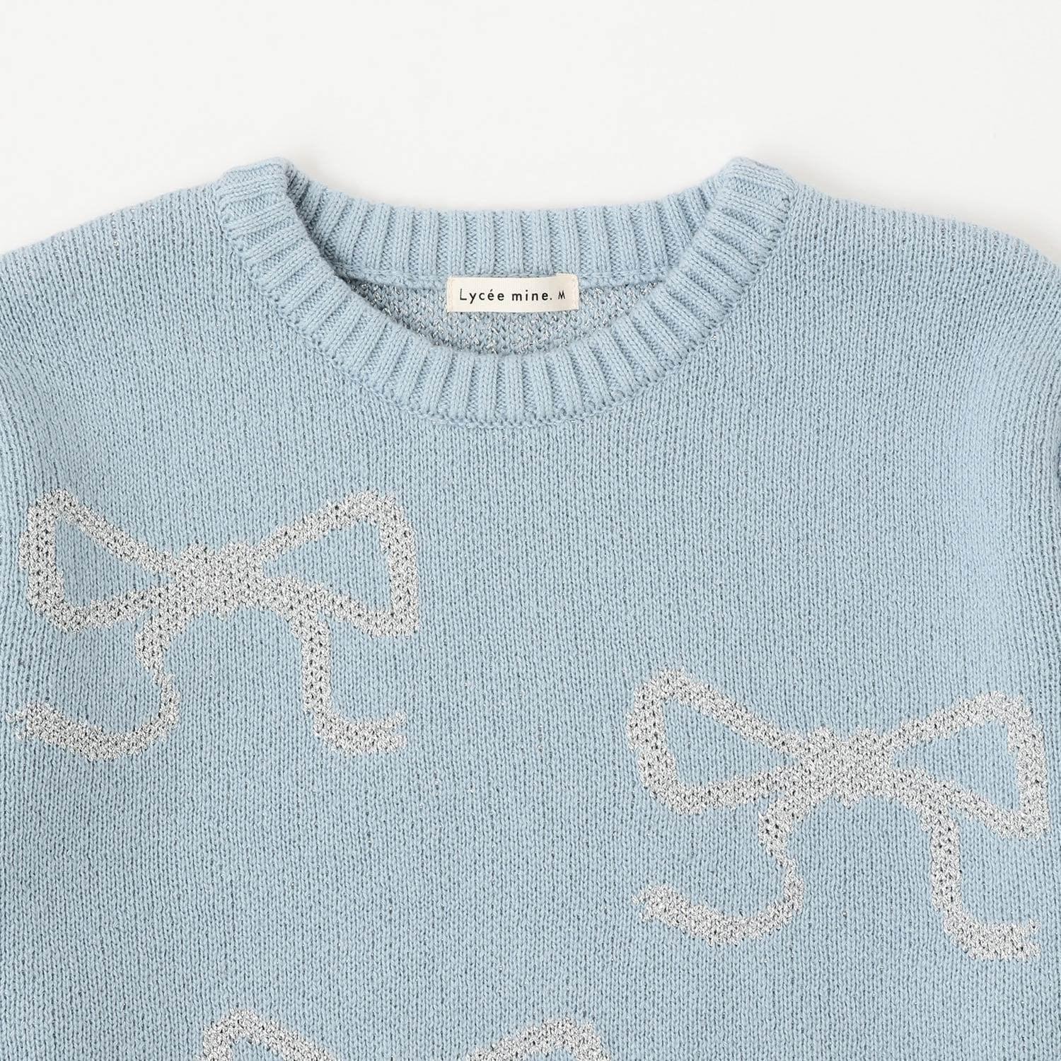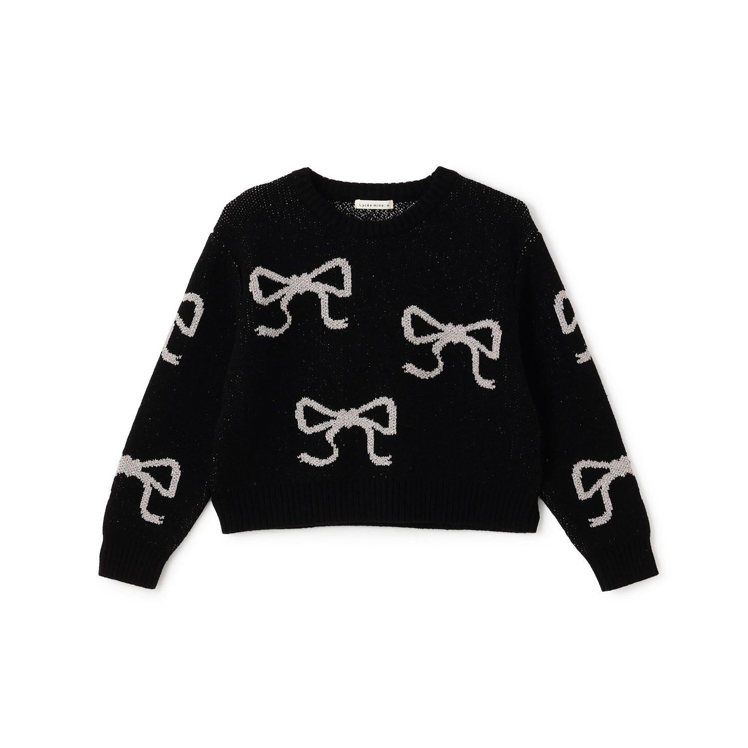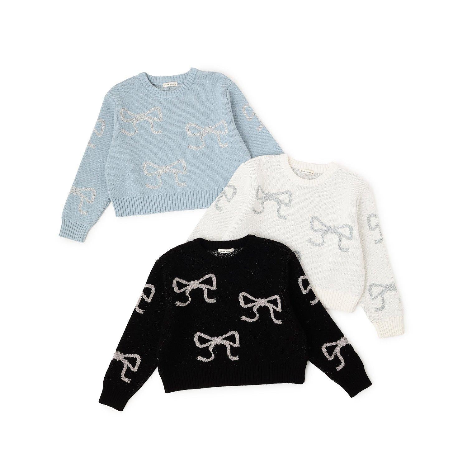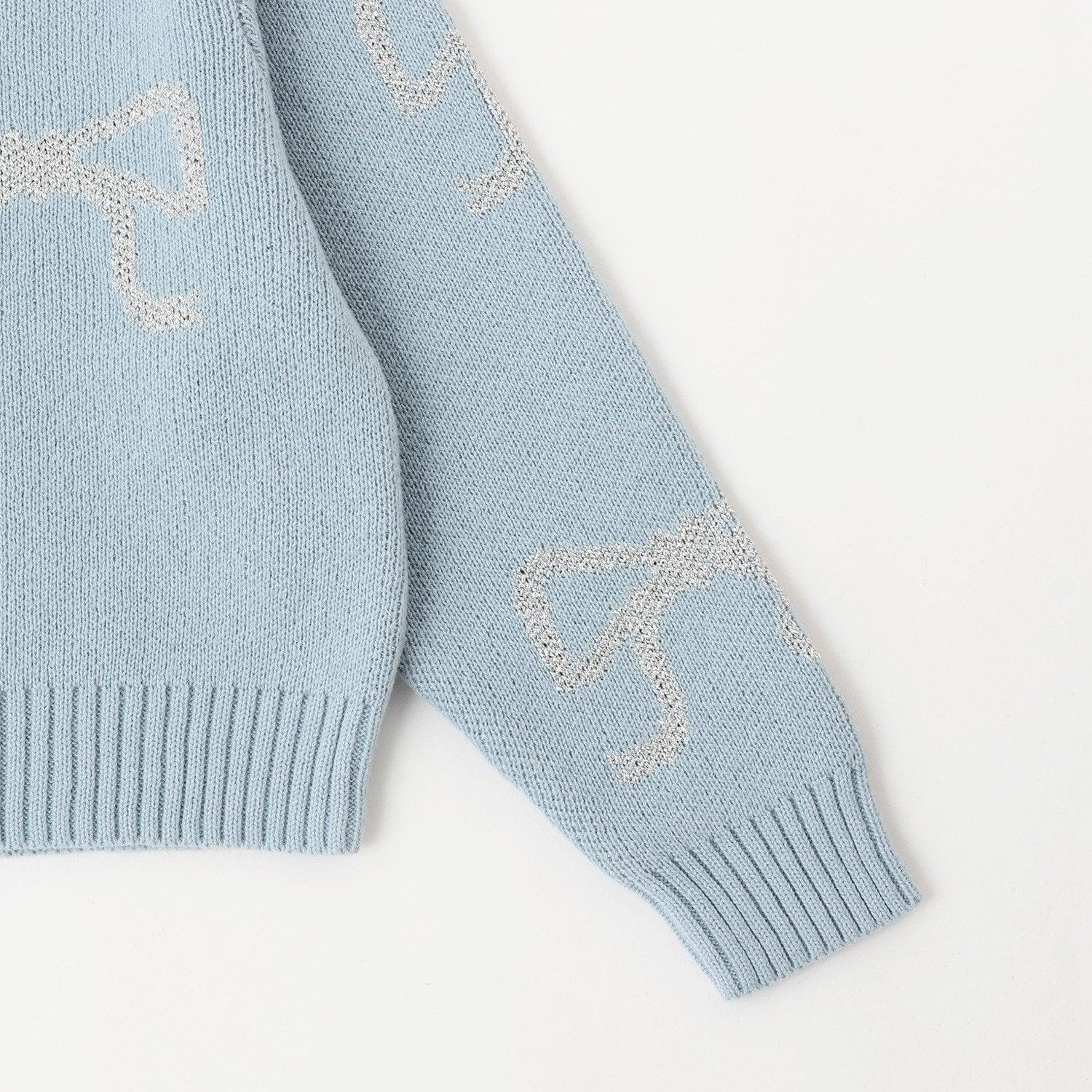 短款亮絲蝴蝶結毛衣