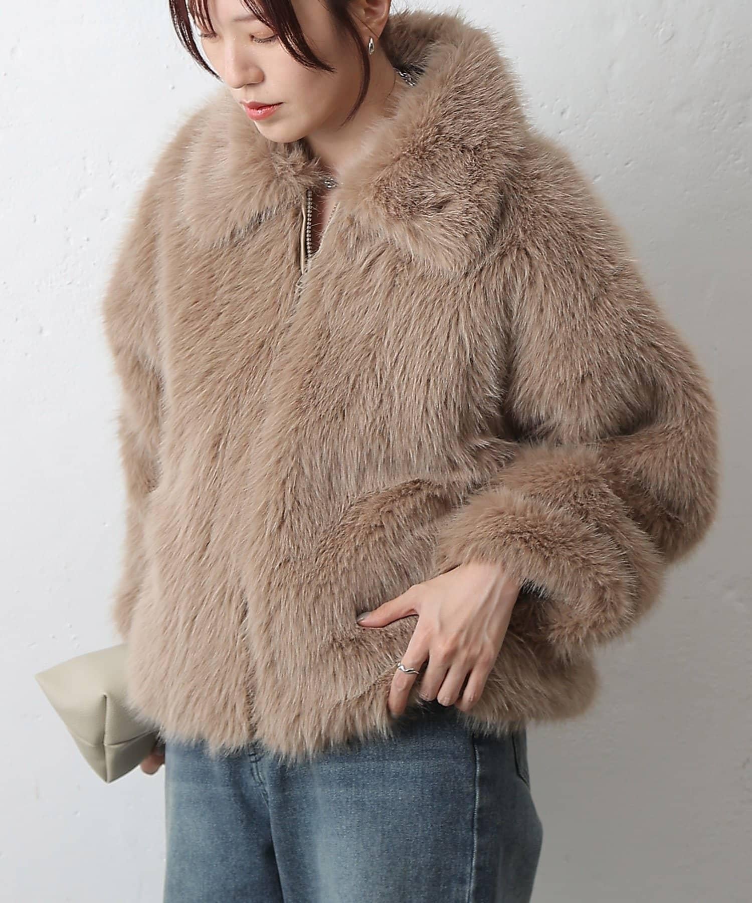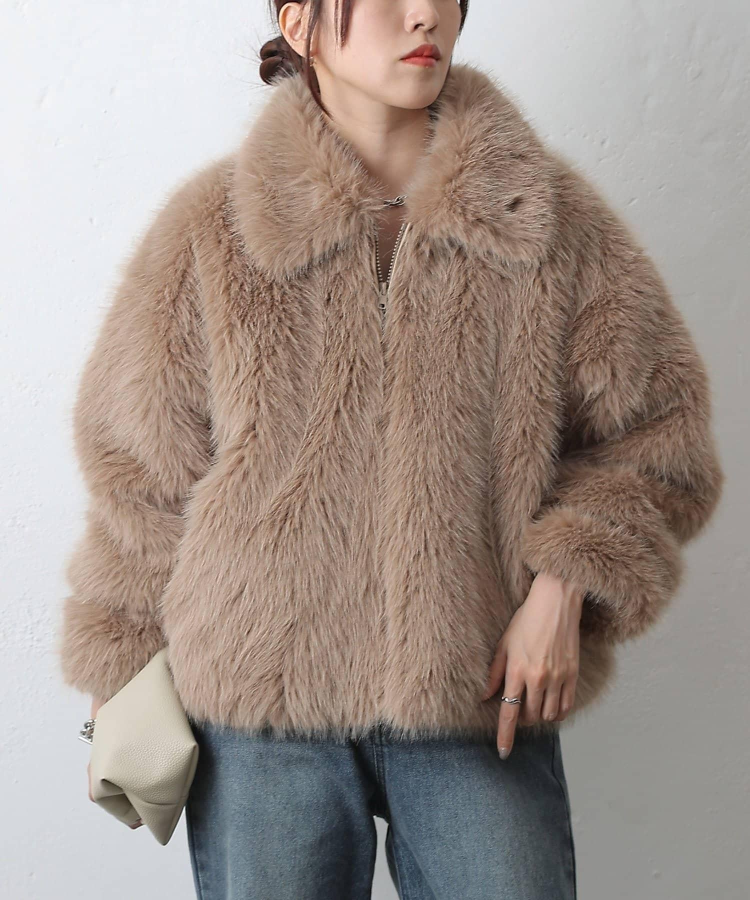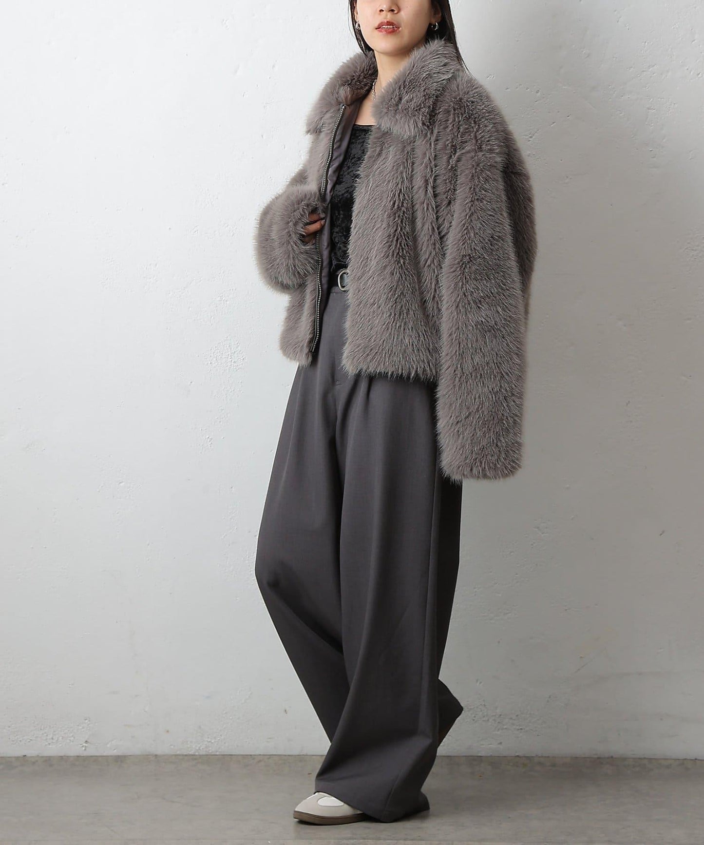 短款的設計讓蓬鬆的皮草也能穿出臃腫感。