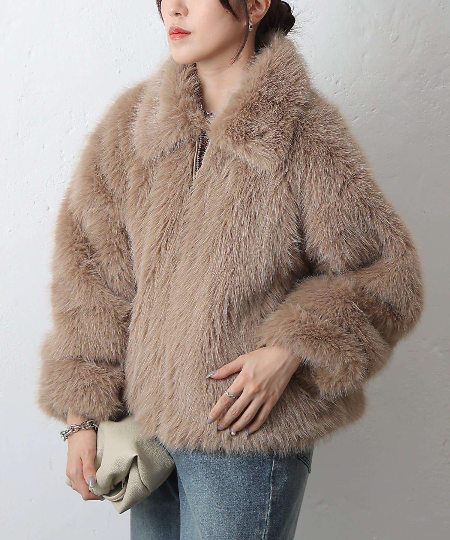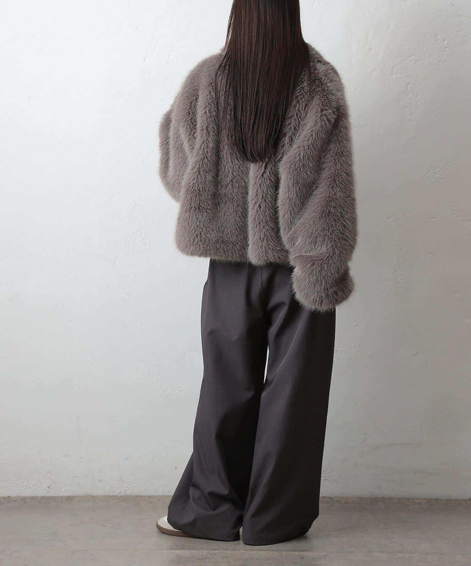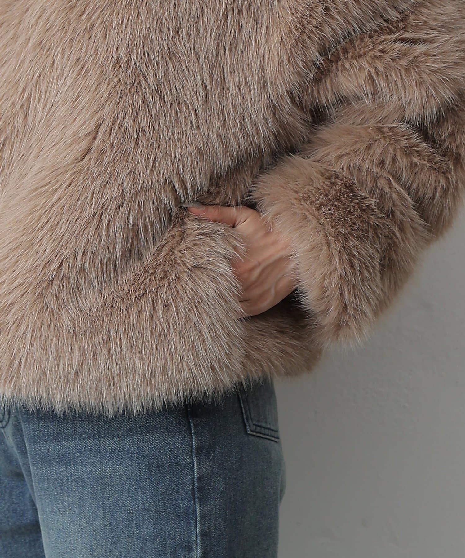 短款皮草罩衫,質地蓬鬆,蓬鬆度恰到好處。