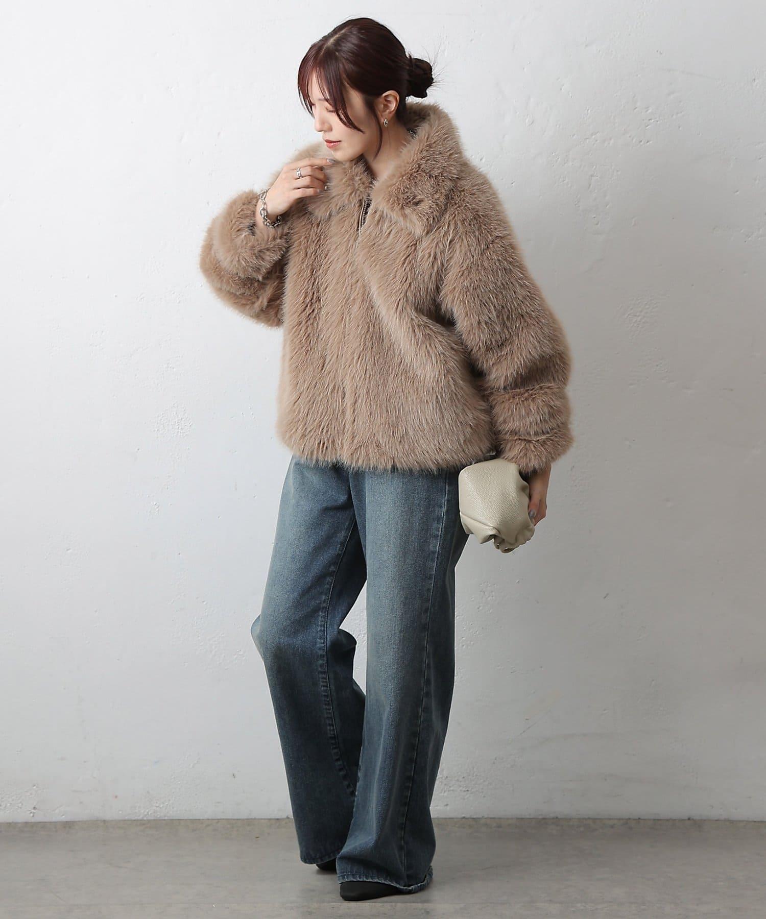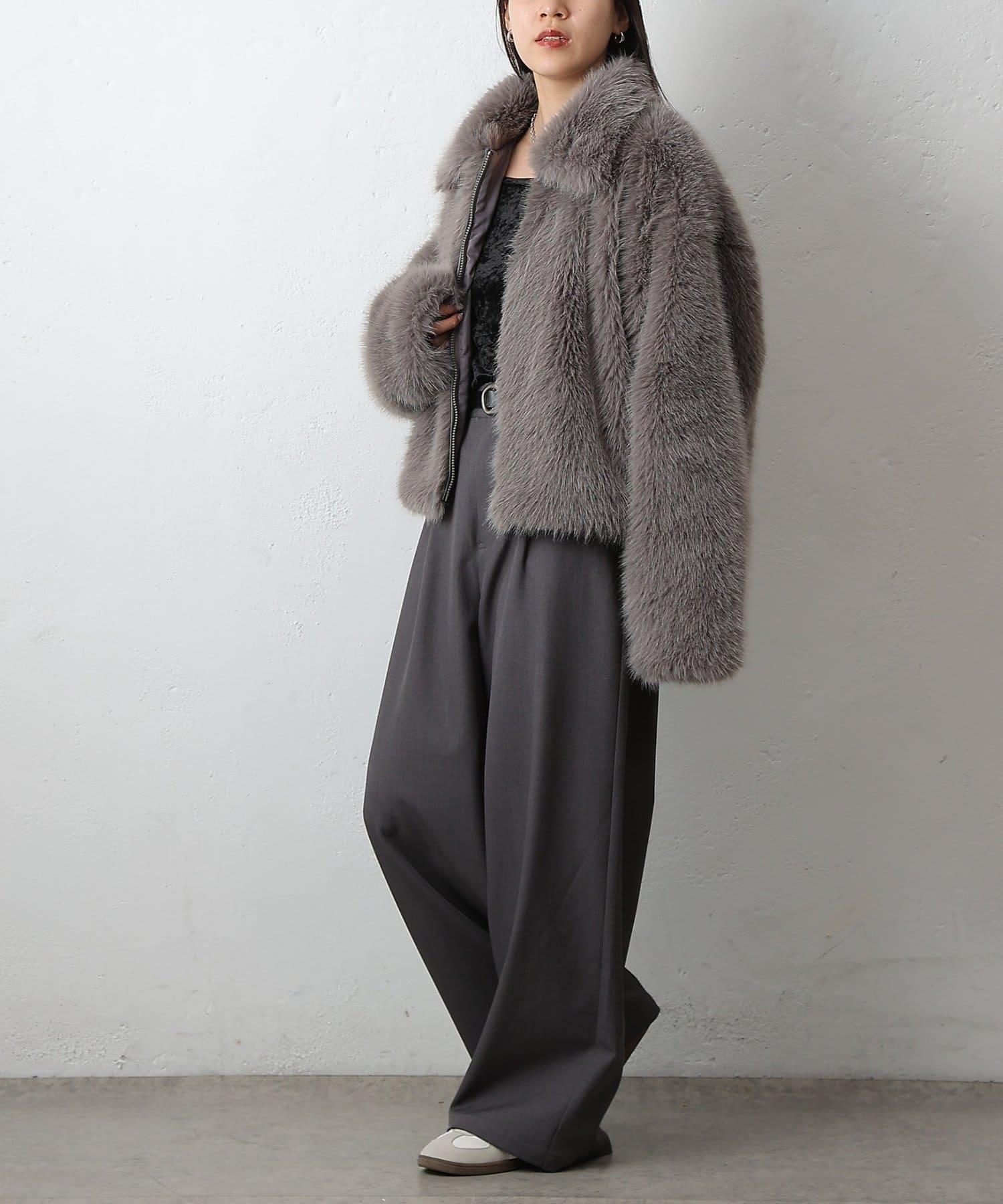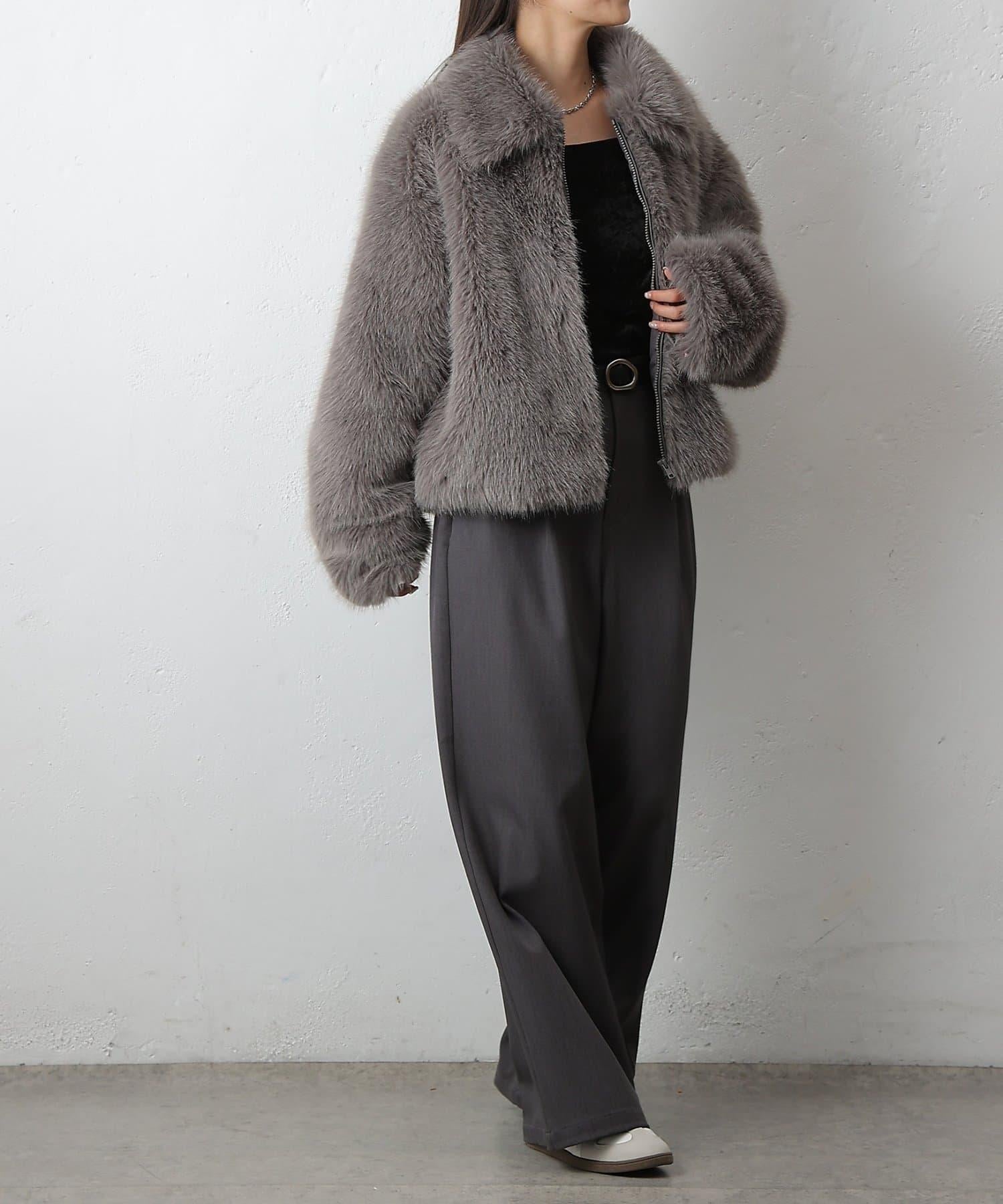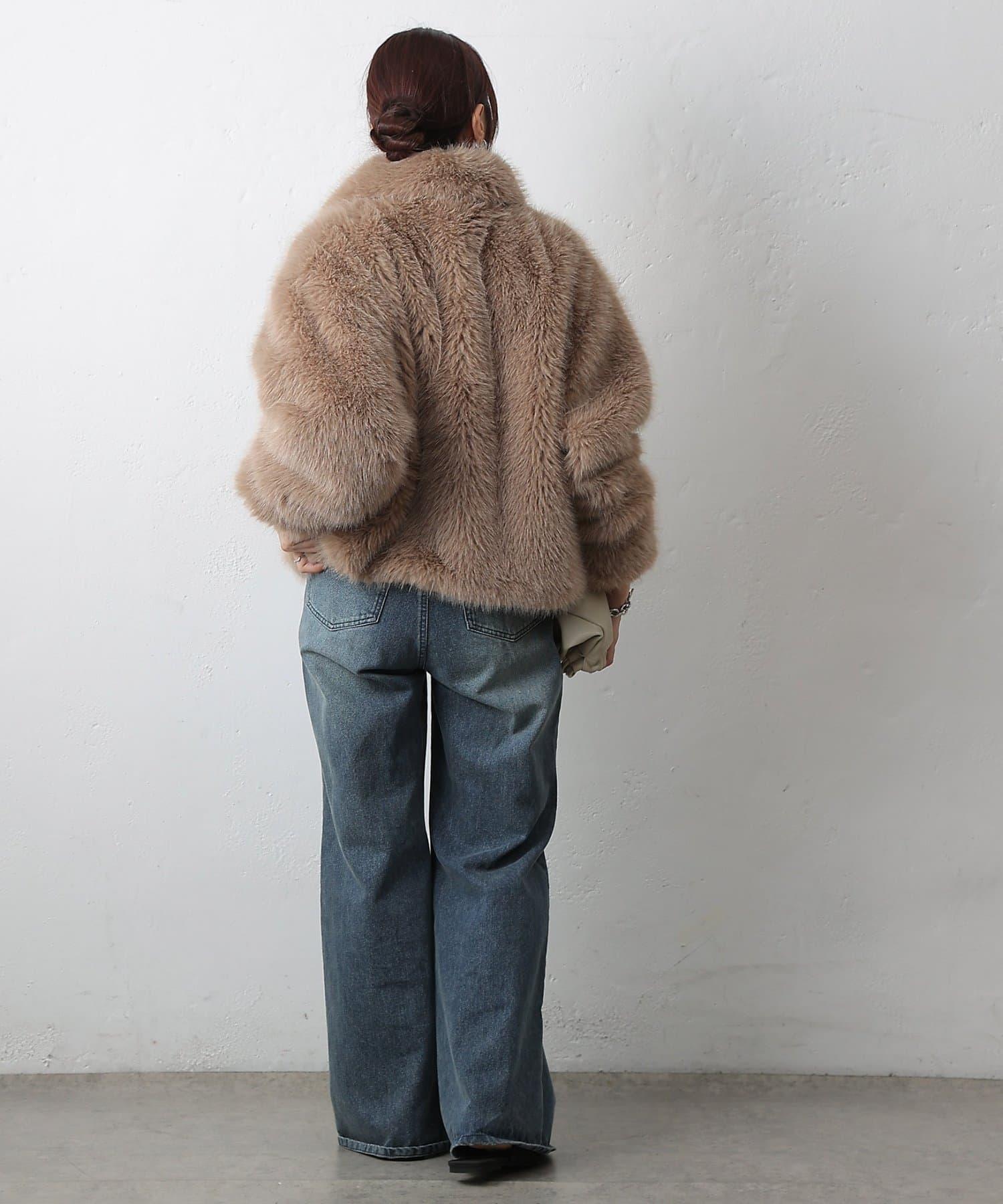 短款皮草罩衫,質地蓬鬆,蓬鬆度恰到好處。