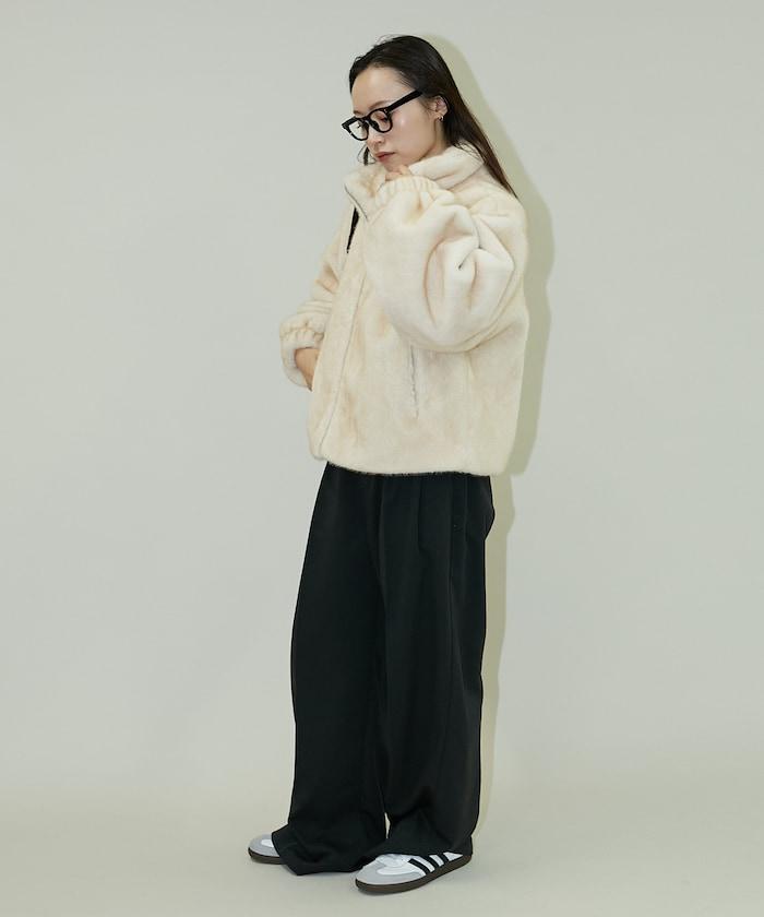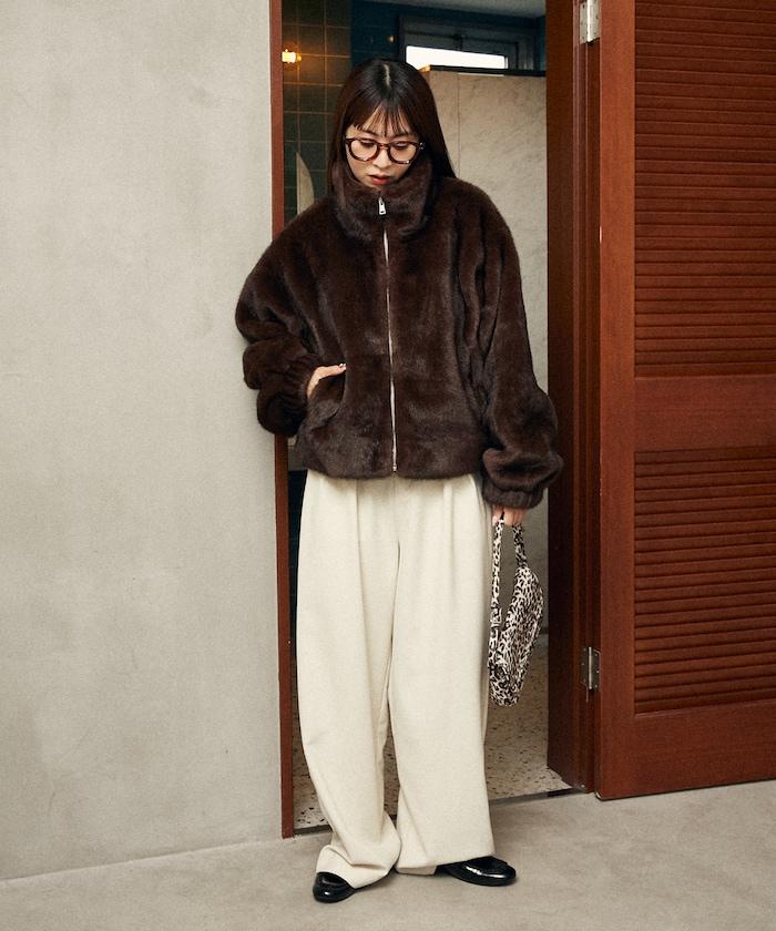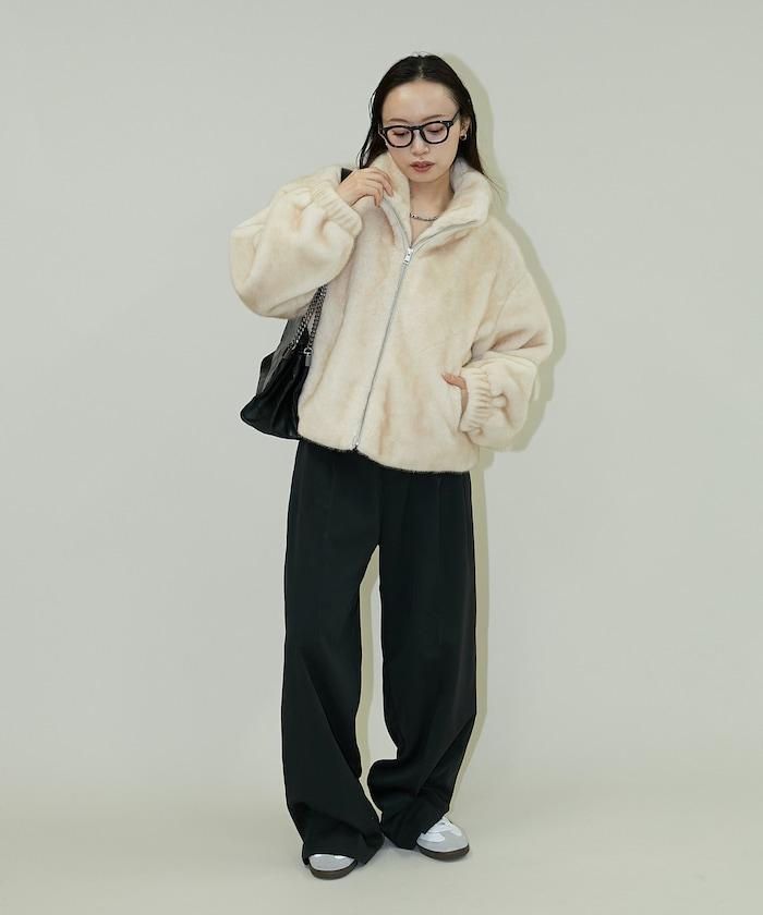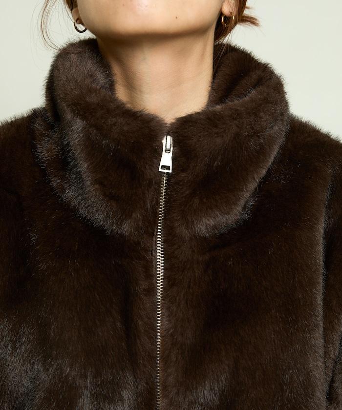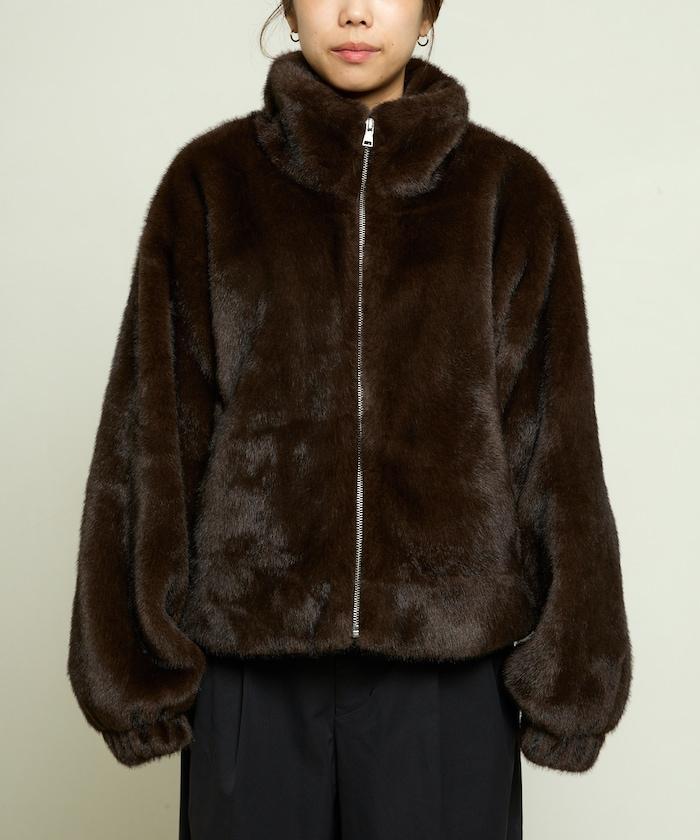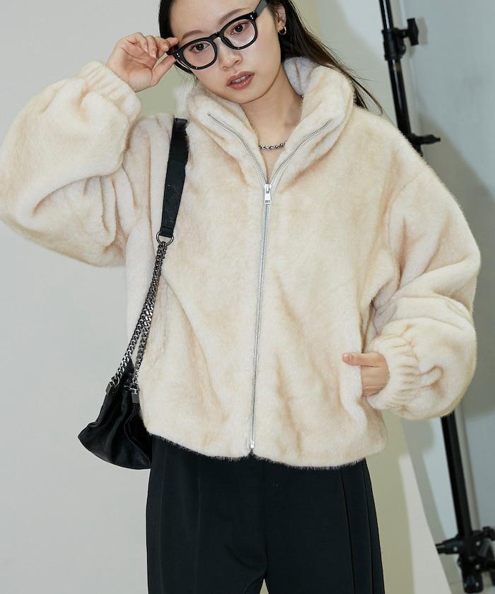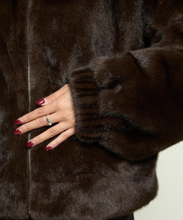 短款人造皮草罩衫,長度緊湊,質地蓬鬆。