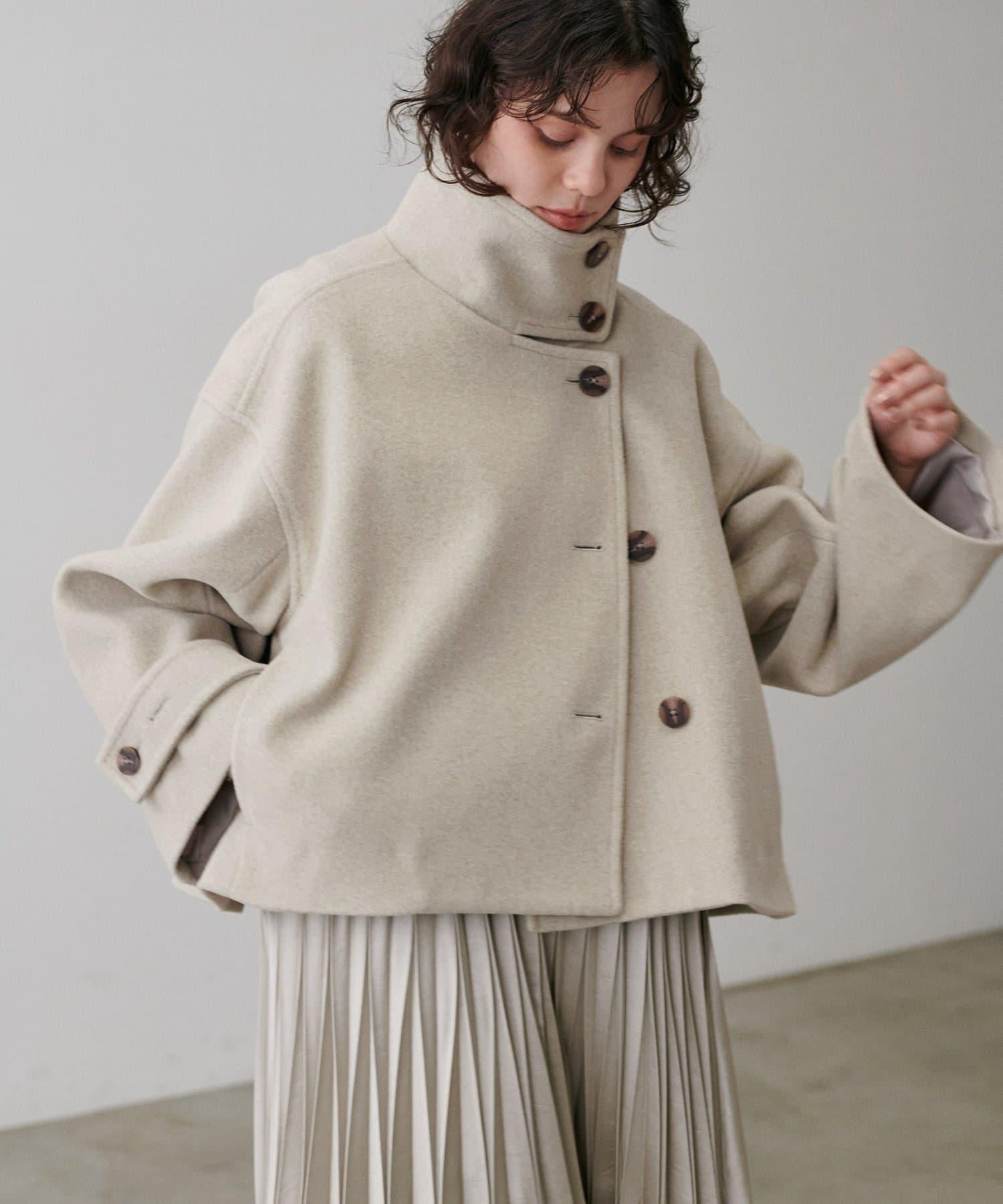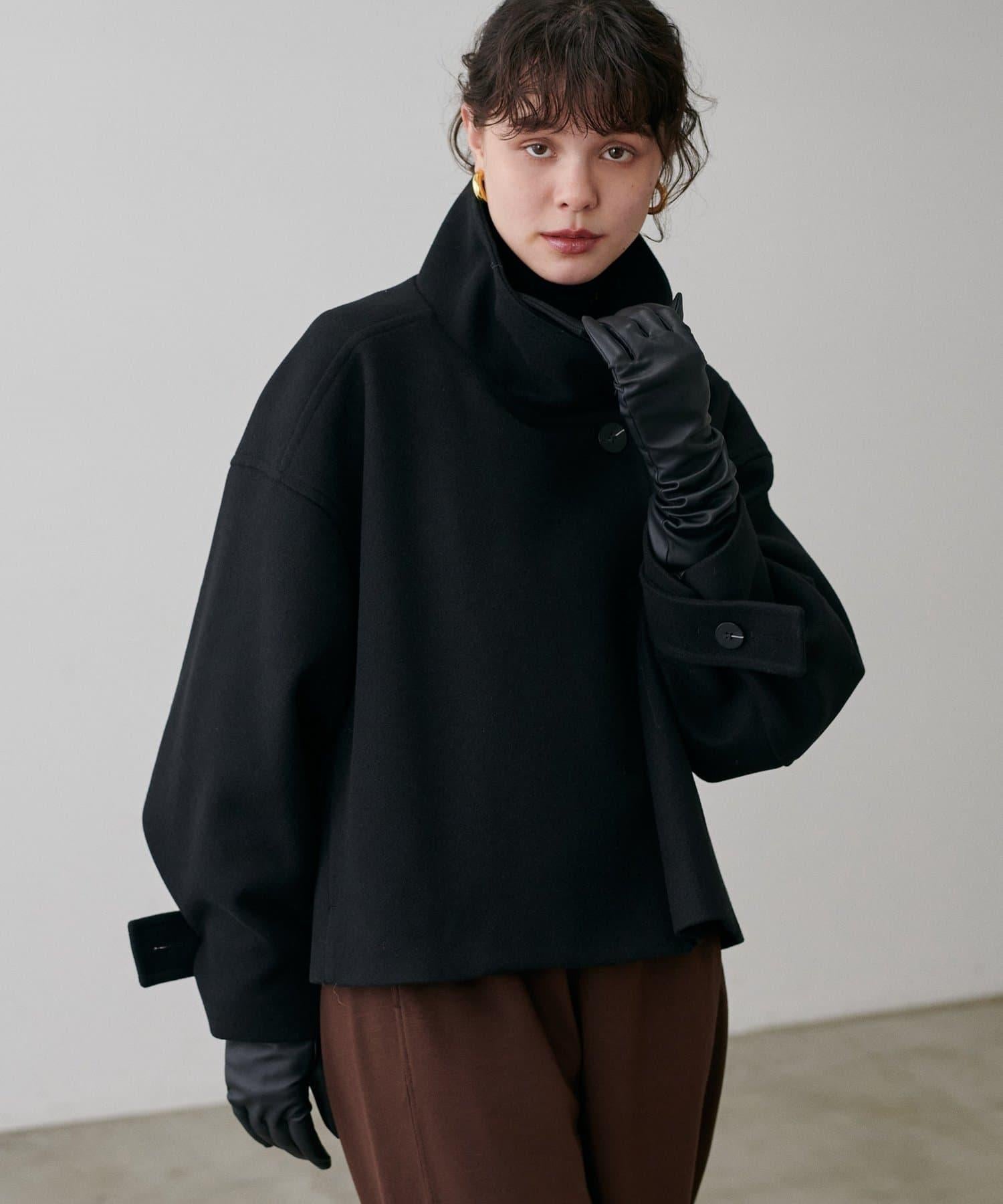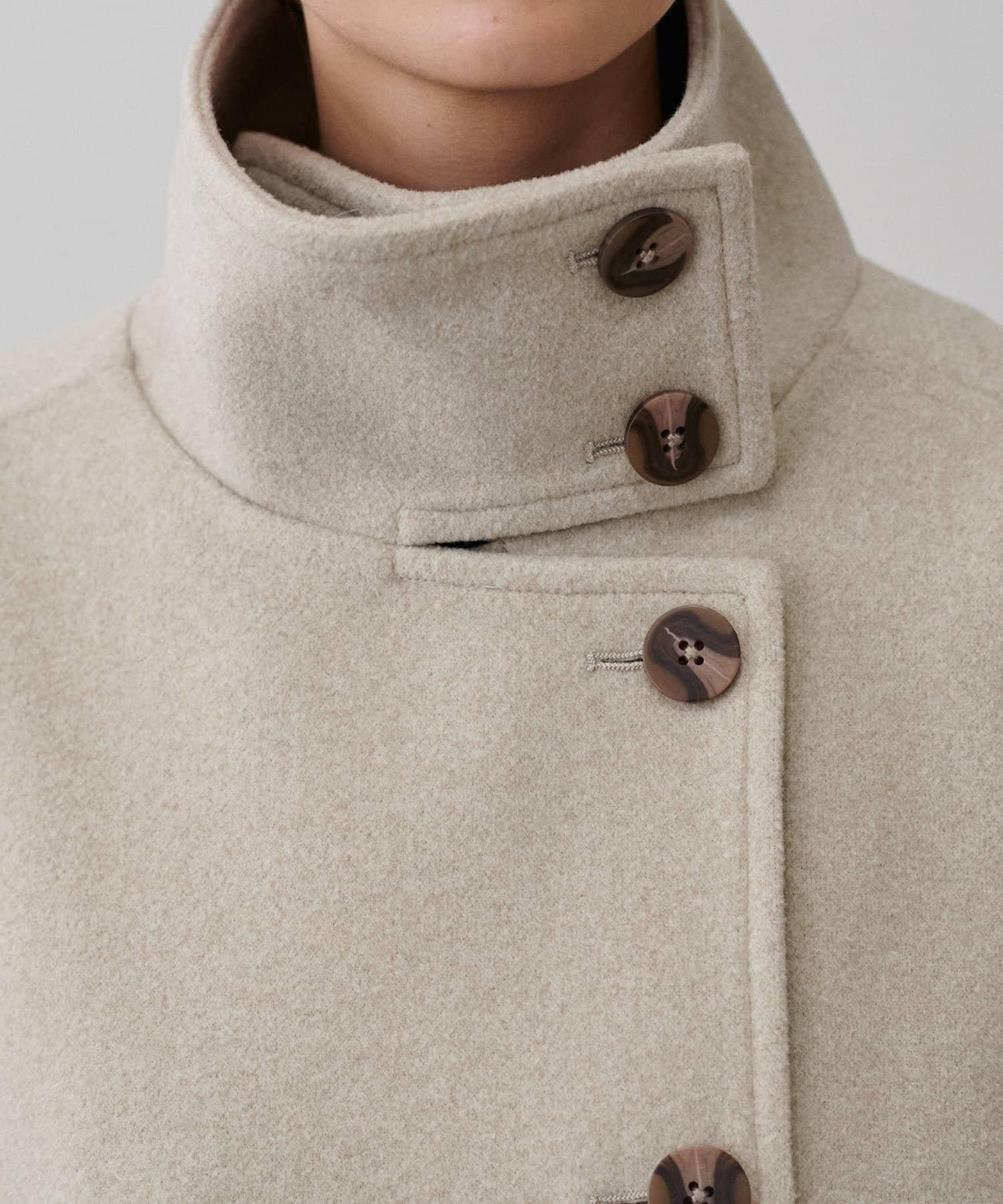 這款針織大衣柔軟輕便,衣領可有多種穿法。