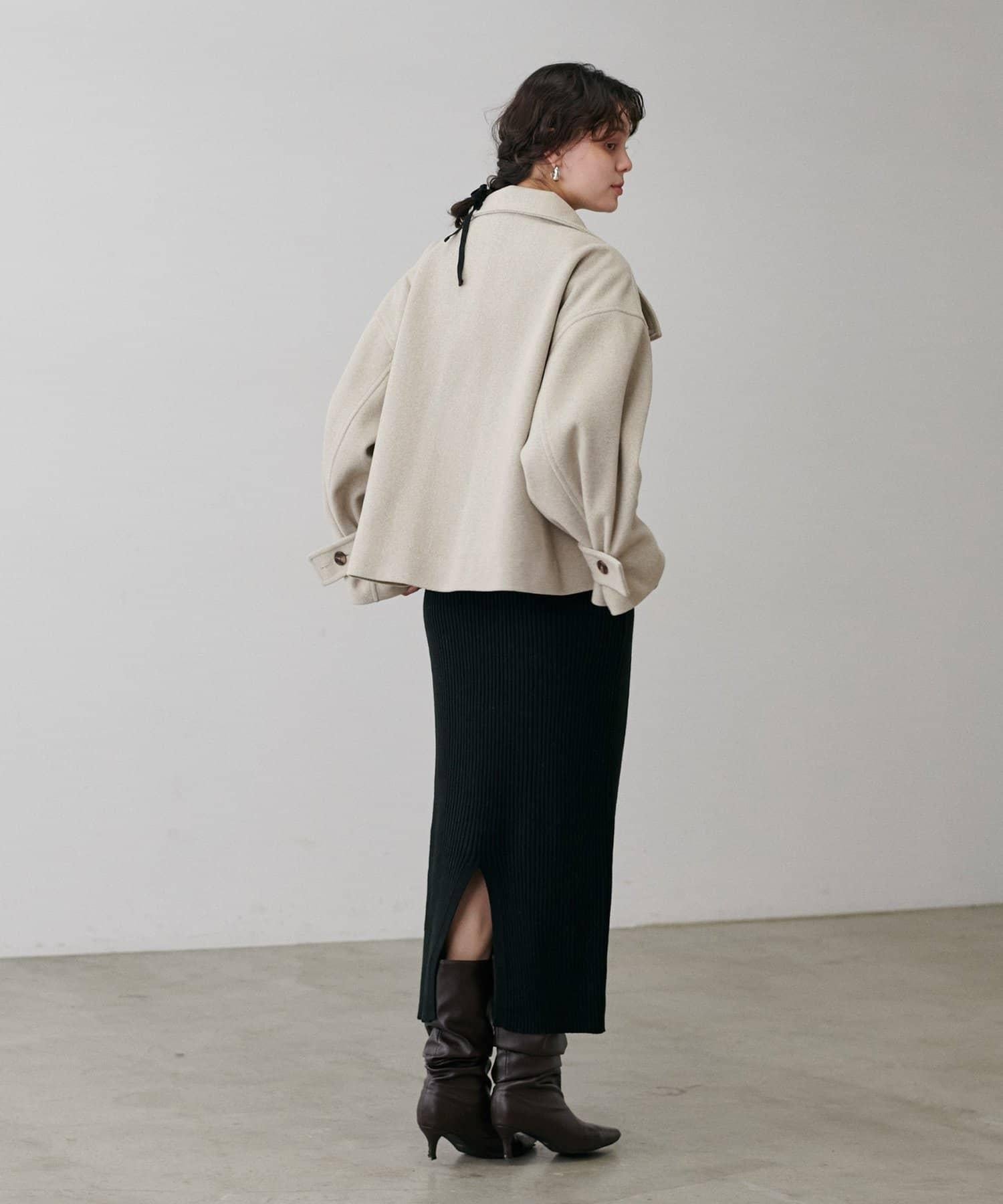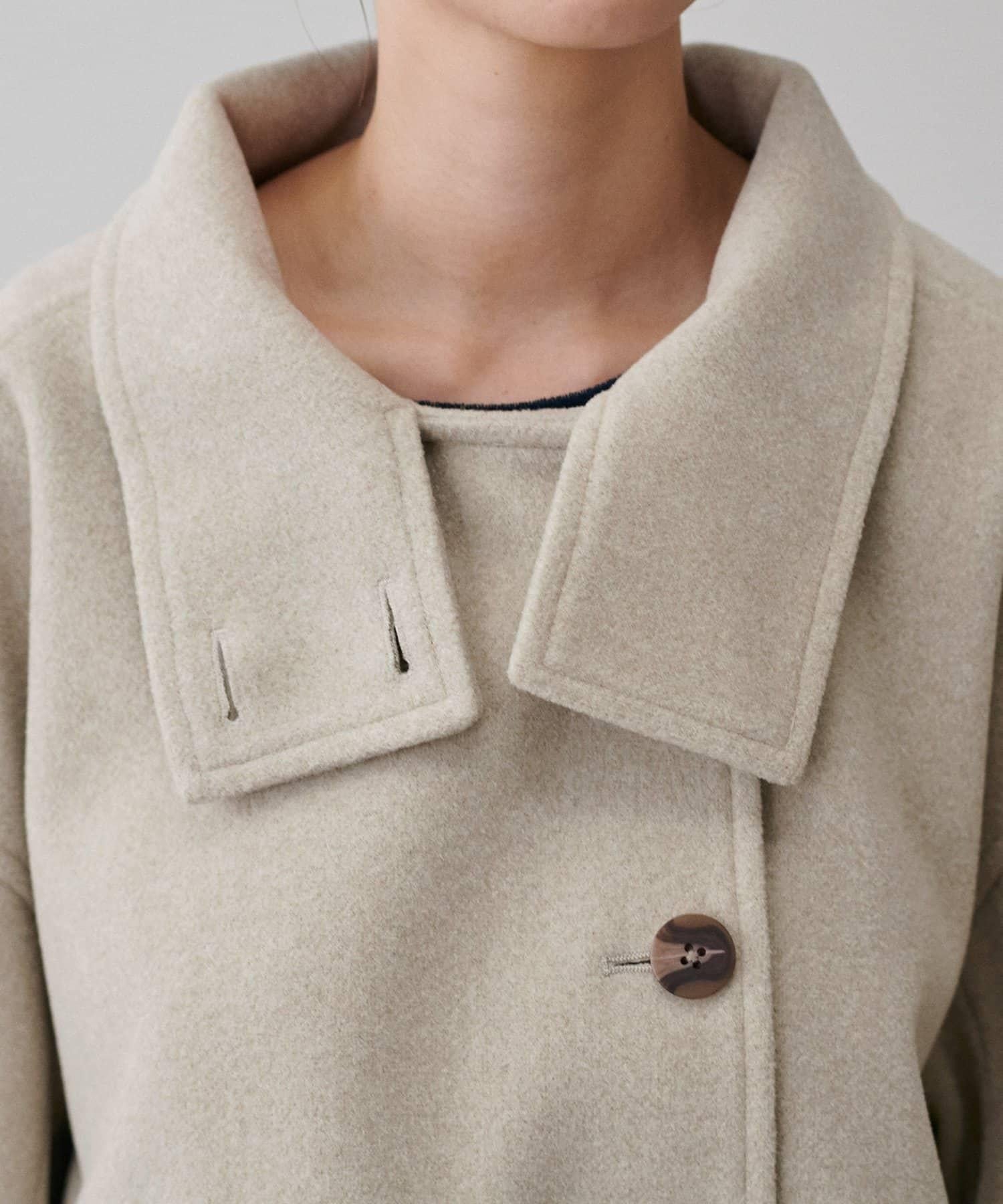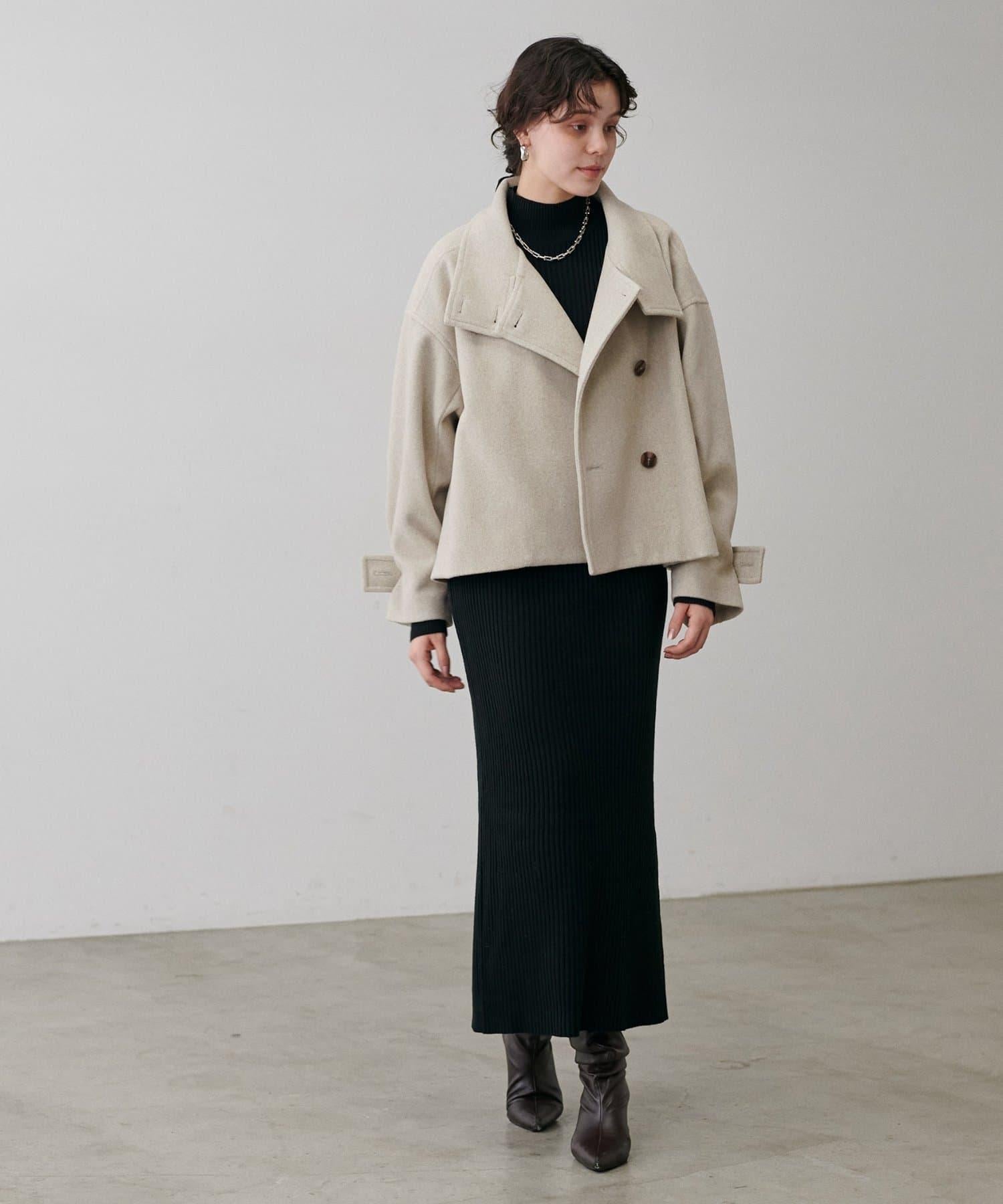 這款針織大衣採用柔軟輕盈的版型,衣領可有多種穿法。