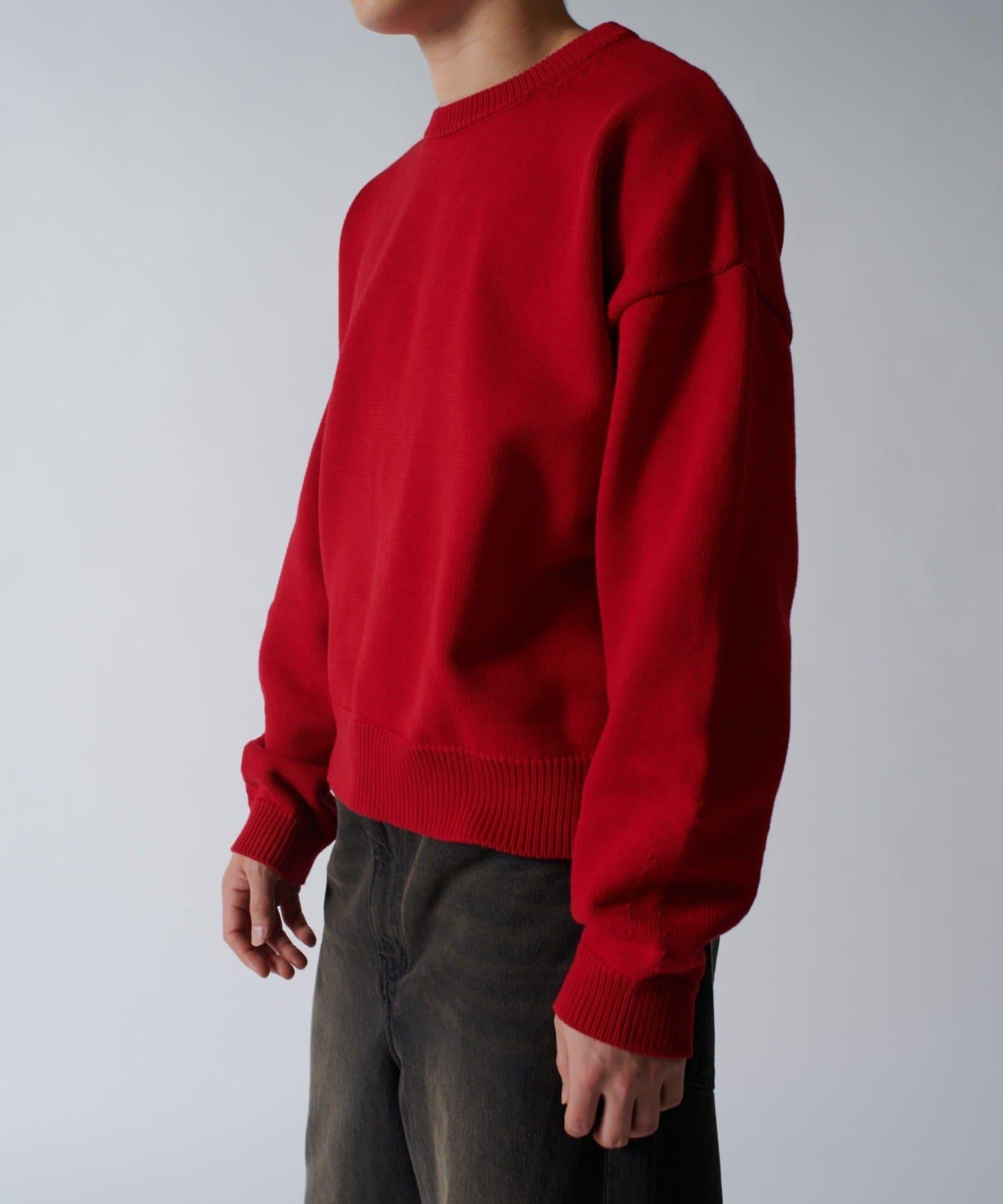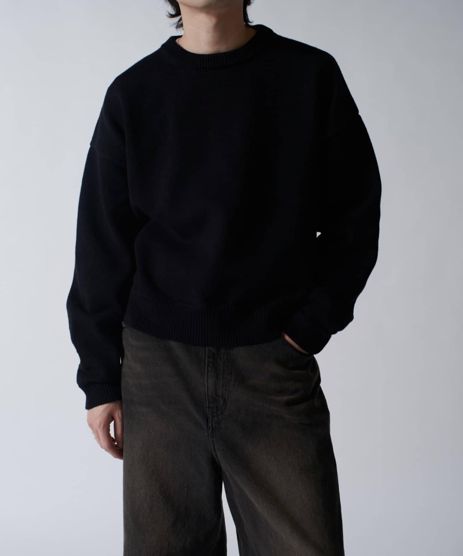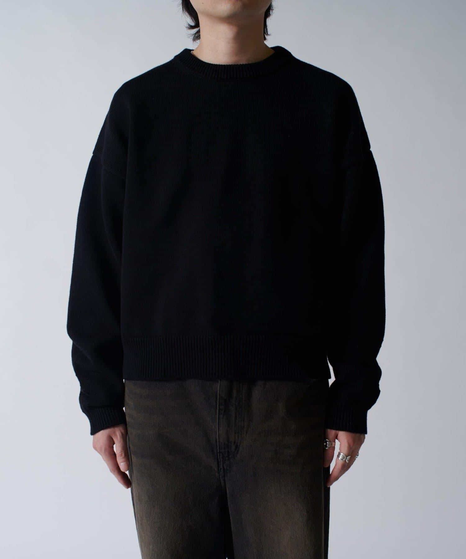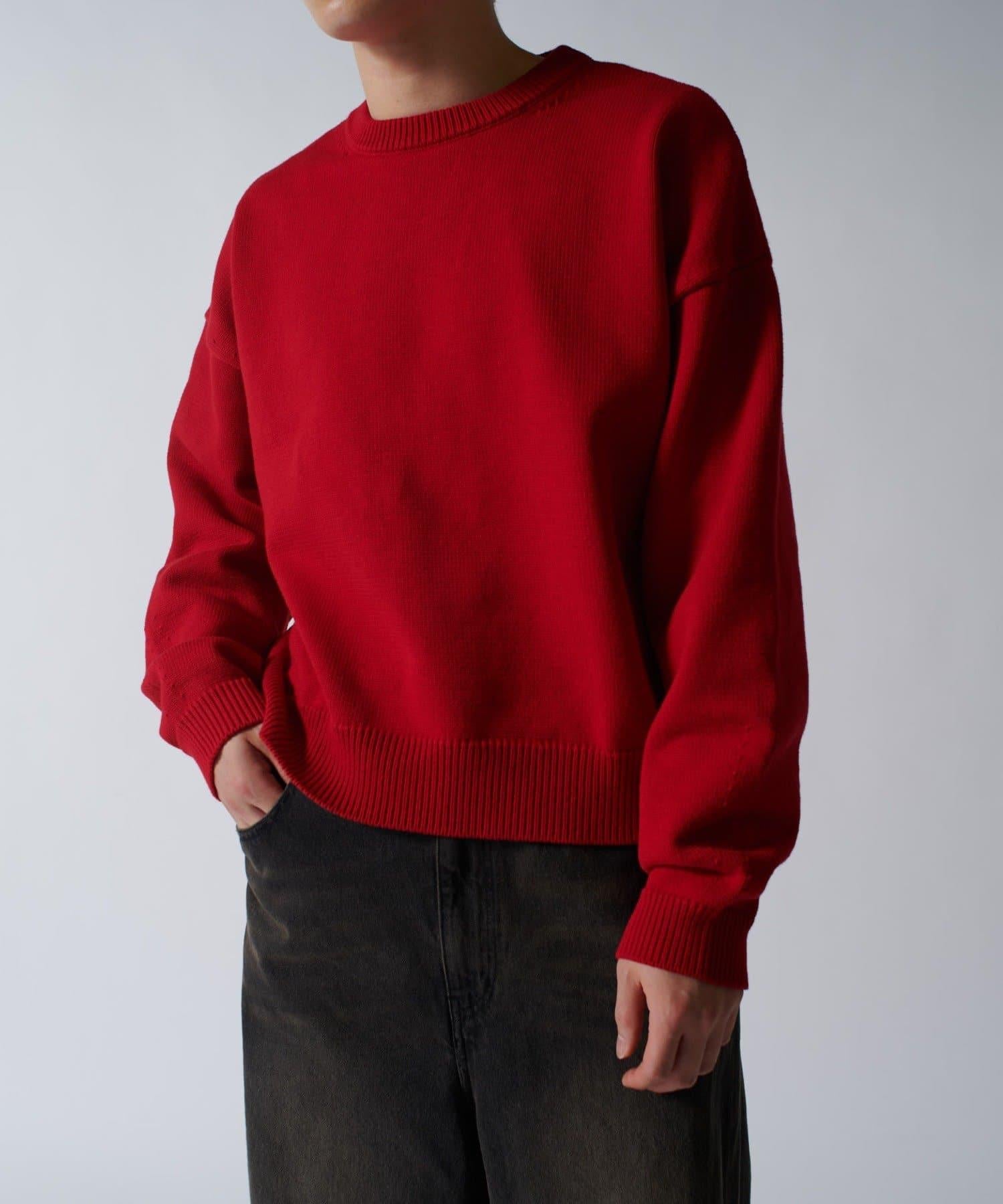 落肩規格的寬鬆輪廓棉質針織衫,但短款規格的尺寸感很好。