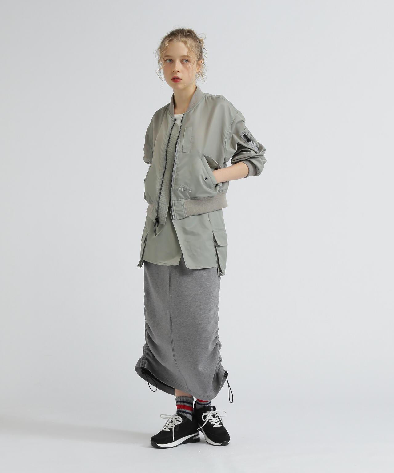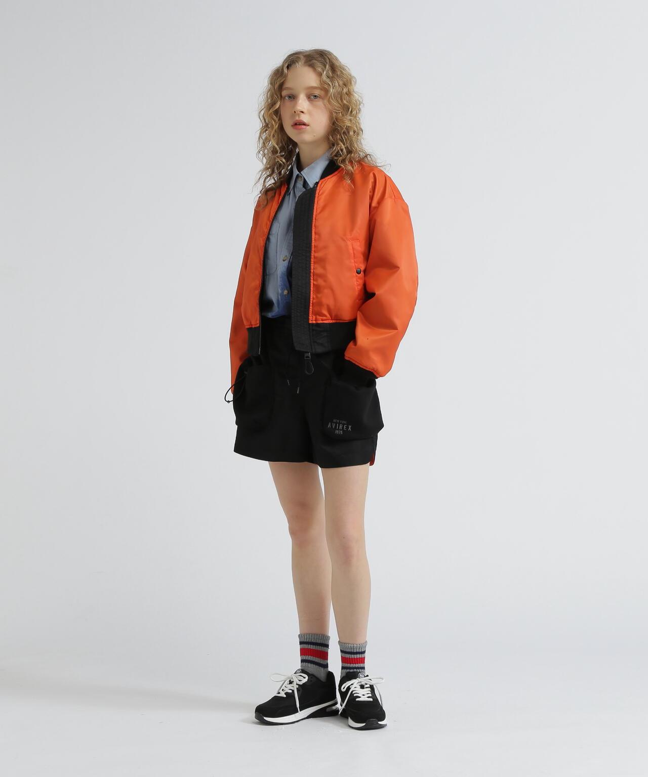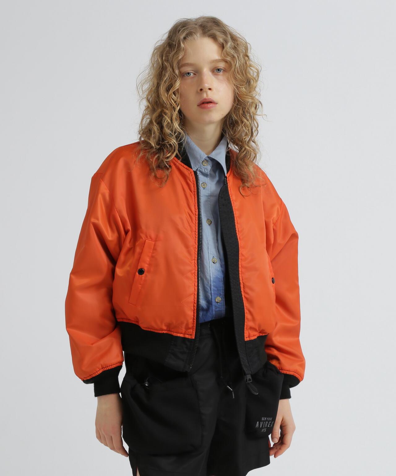 MA-1 長度較短,可以整齊地穿著,由於沒有襯墊,從初秋開始就可以穿著。可雙面穿著。同系列還有馬甲(貨號:7835257601)、上衣(貨號:7835231602)、裙子(貨號:7835216605)、短褲(貨號:7835213601)和長褲(貨號:7835210603)。AVIREX WOMAN] 該系列將純正軍裝的功能性和設計感融入女式休閒裝。作為一個具有個性和永恆性的女裝品牌,它為聰明、自由、好奇、高貴和活潑的成年職業女性提供女式休閒裝。