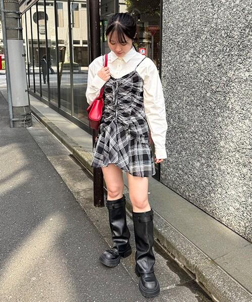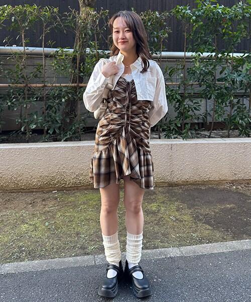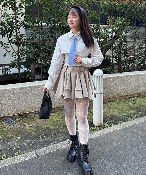半身裙的設計非常可愛,敢於從短襯衫中露出半身裙。