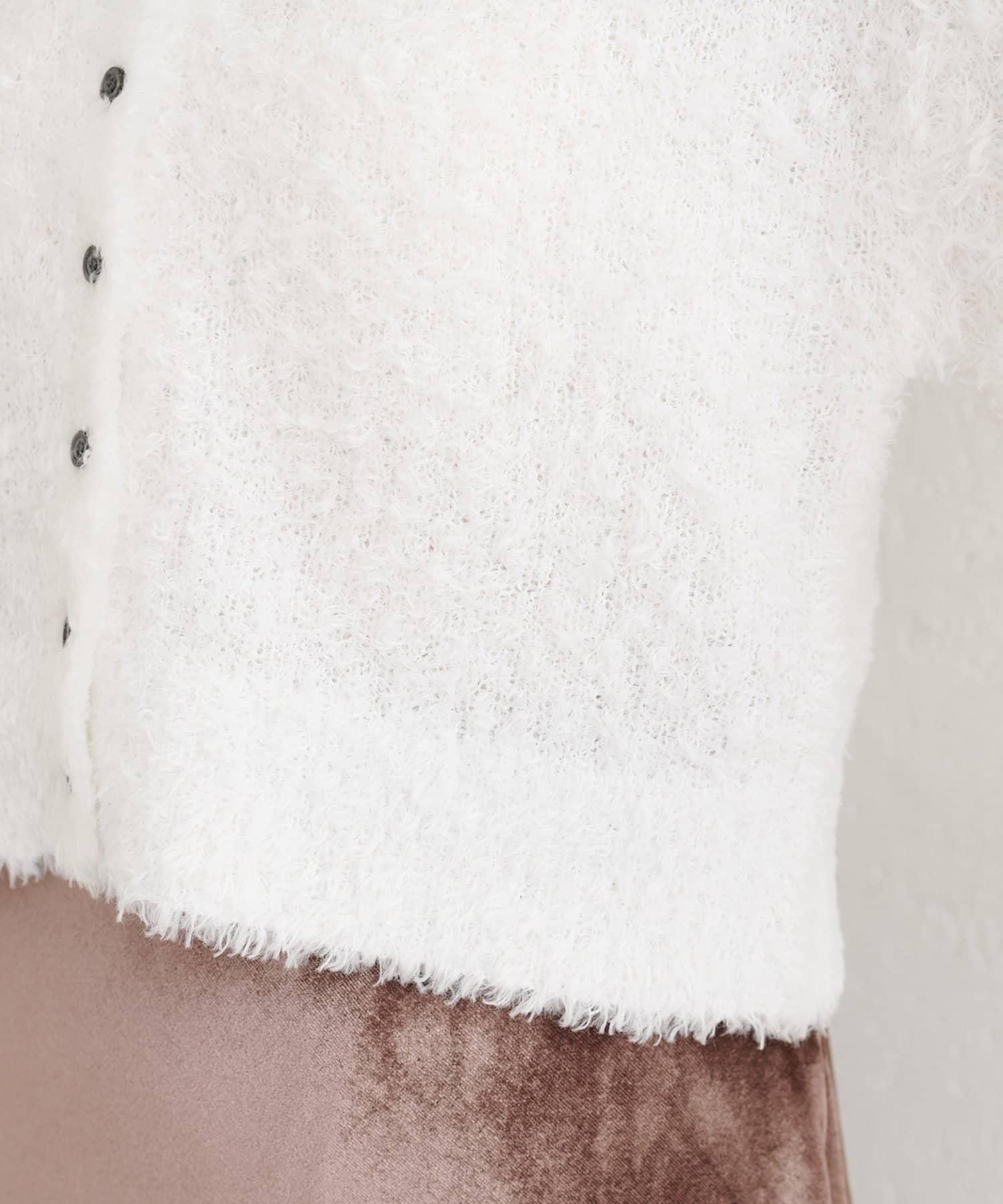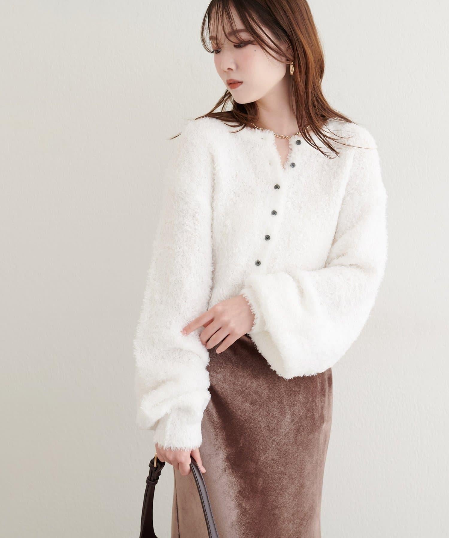 這款剪裁開襟羊毛衫質地蓬鬆,讓人一見傾心。