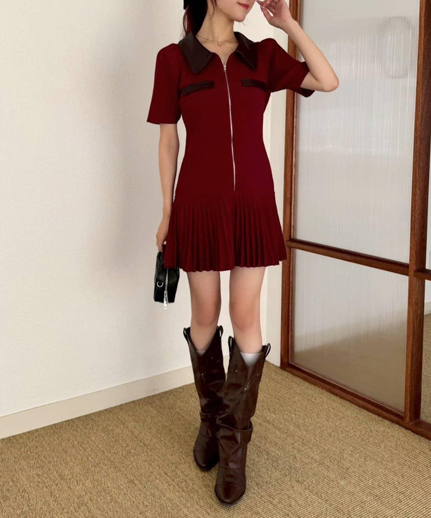 短袖針織迷你連衣裙