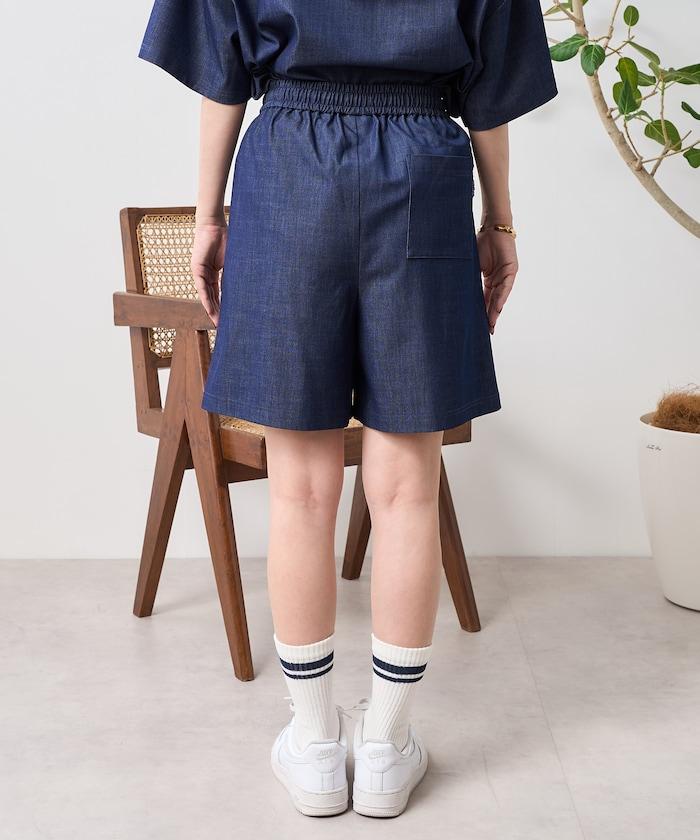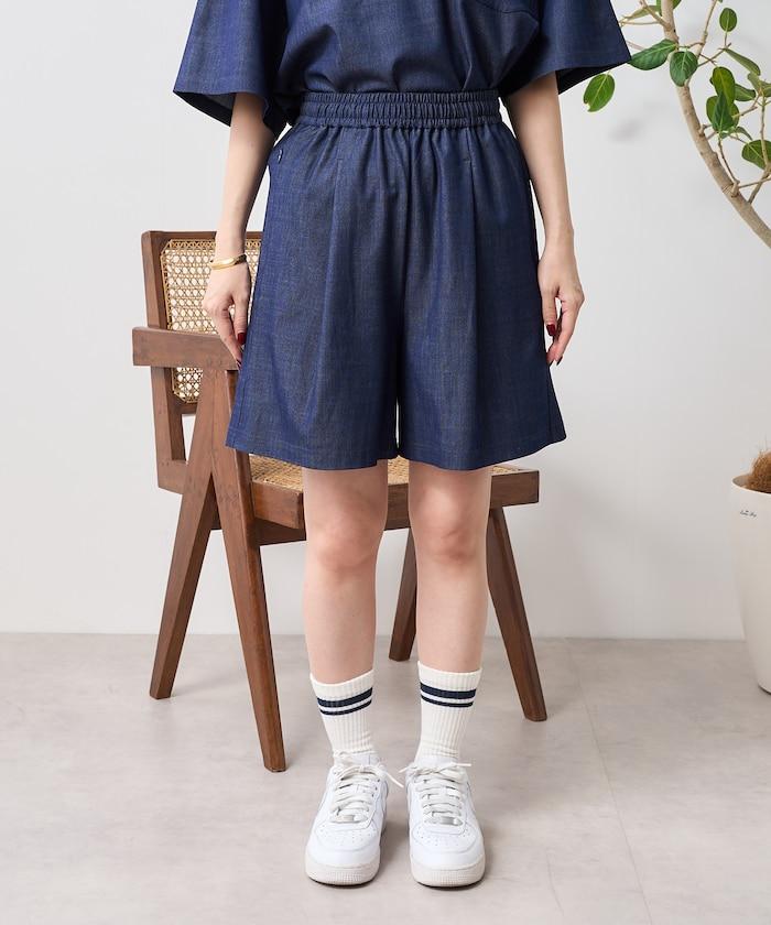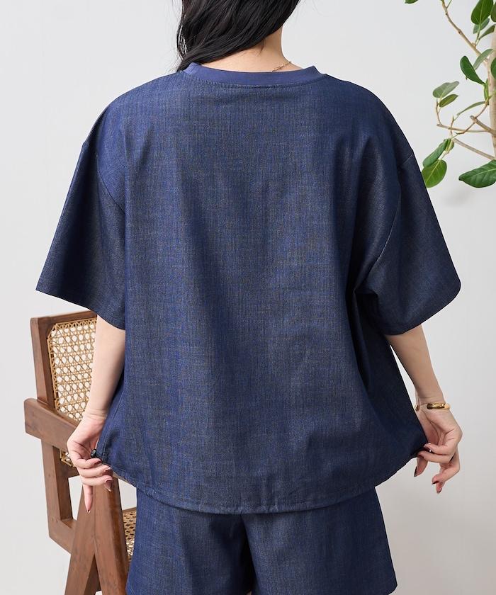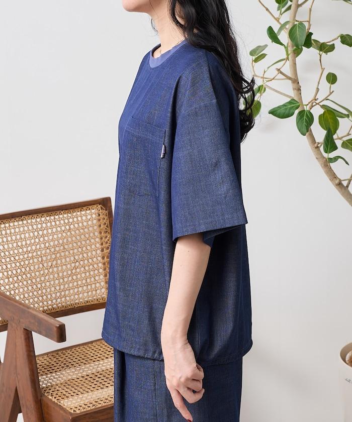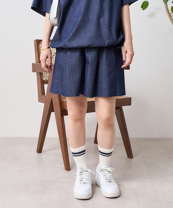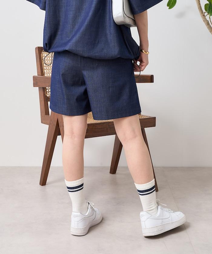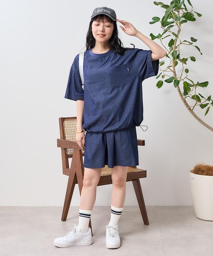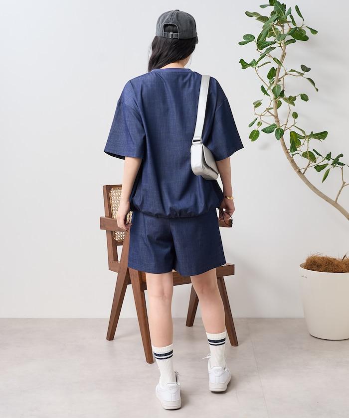 該套裝包括短袖剪裁上衣和短褲,非常適合休閒活動。