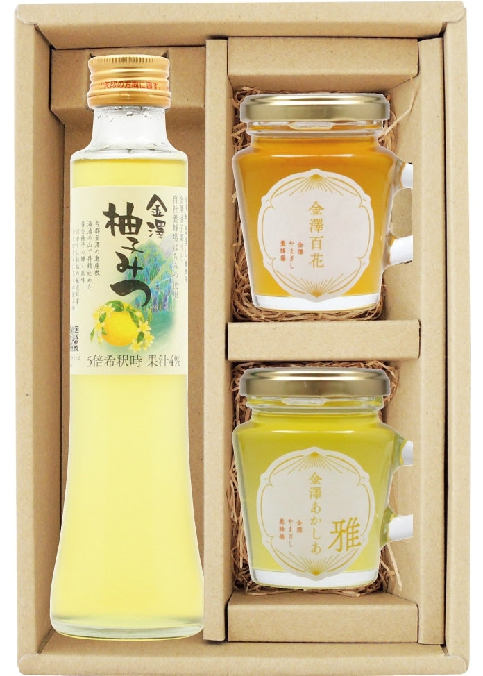 含量或固體含量及總量 金澤柚子蜜 200 毫升 x 1、金澤蜂蜜 hyakka 130 克 x 1、金澤蜂蜜 akashia masa 130 克 x 1 。