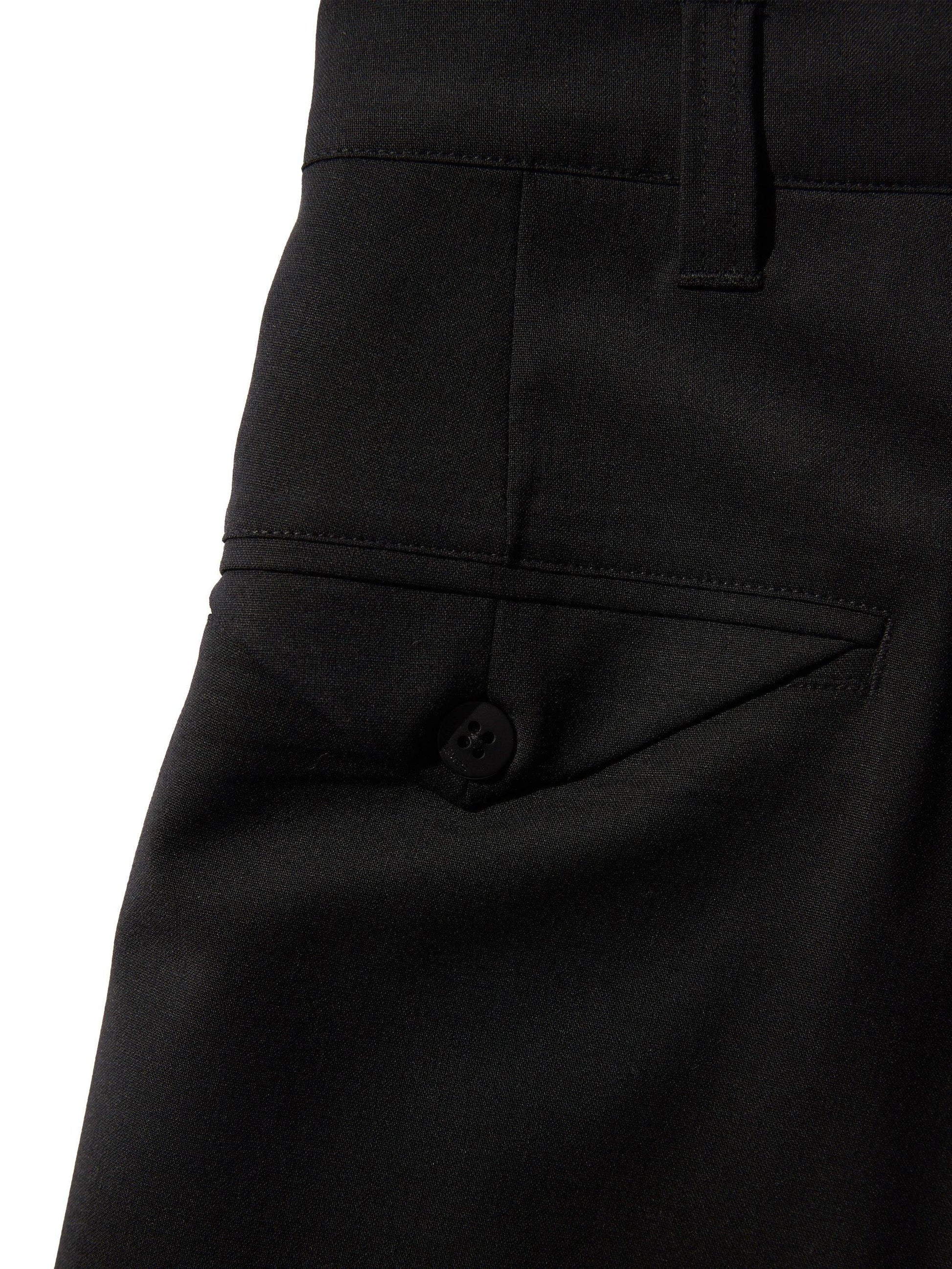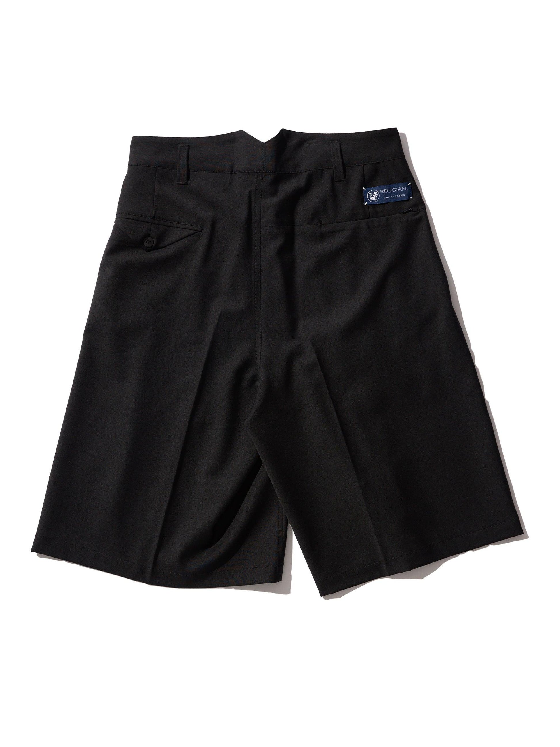 採用意大利北部毛紡織品產地比耶拉的 Reggiani 公司的織物製成。天然纖維羊毛面料具有彈性。這款寬大的短褲採用高腰設計,但空間寬敞,長度在膝蓋以下。