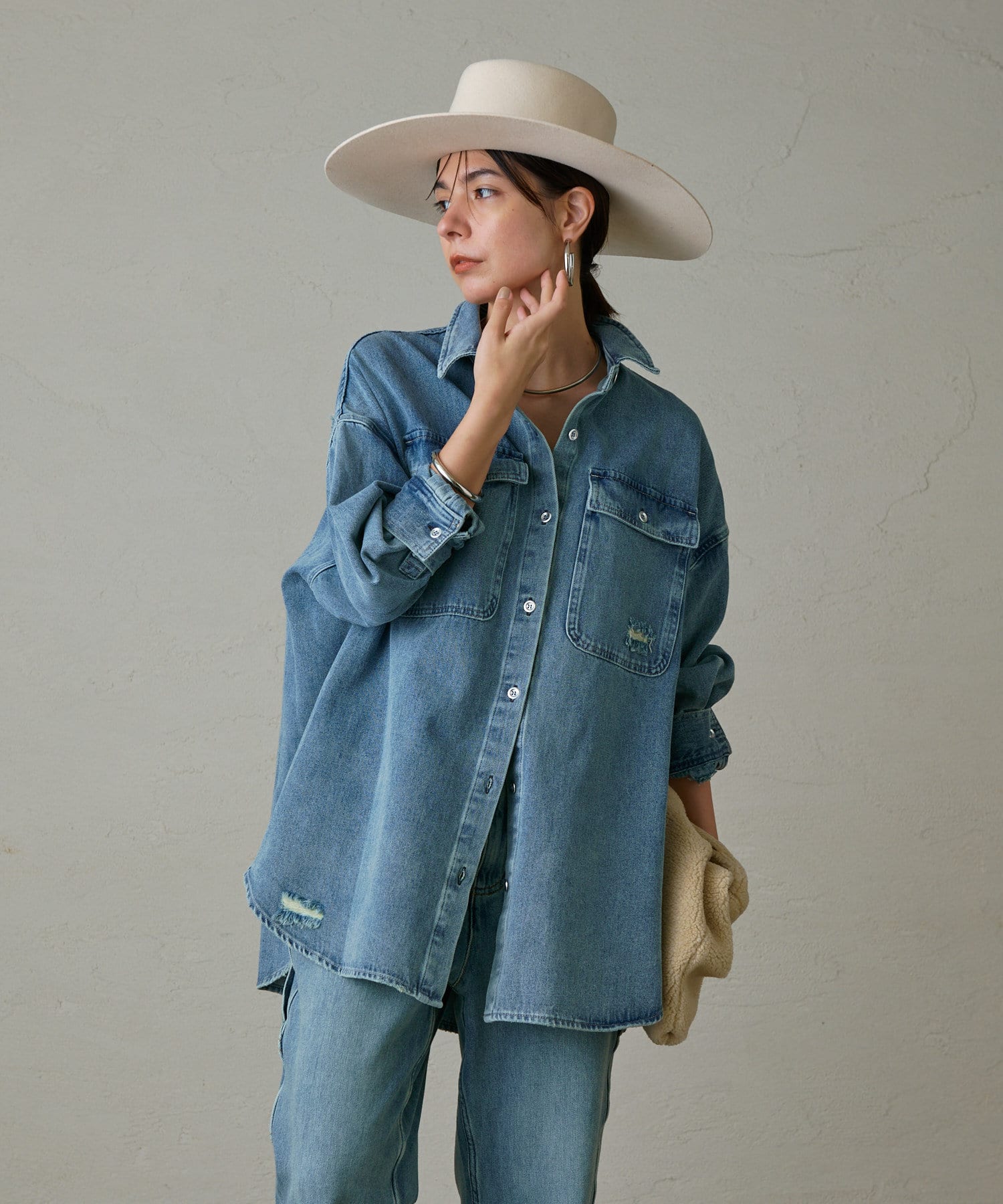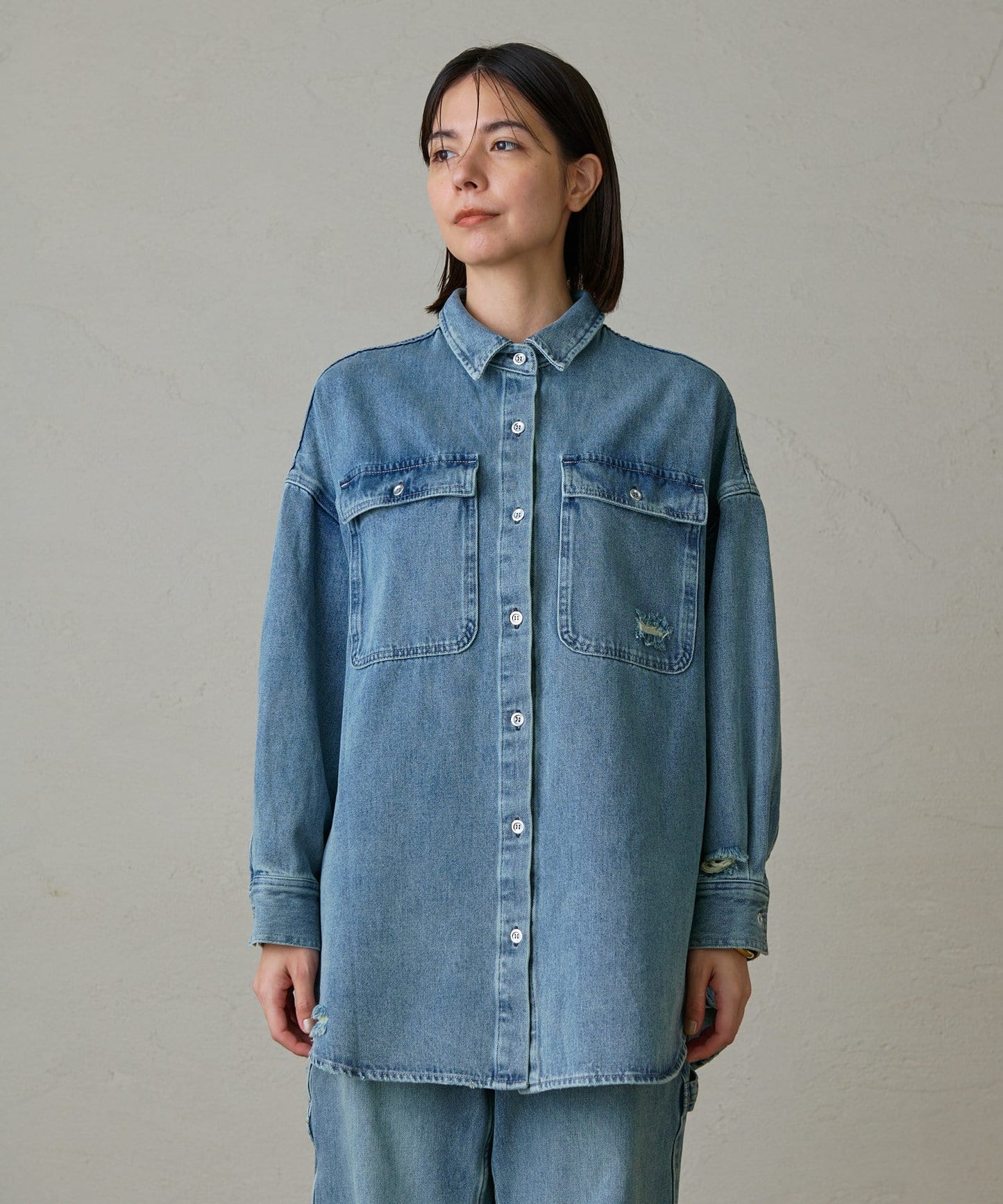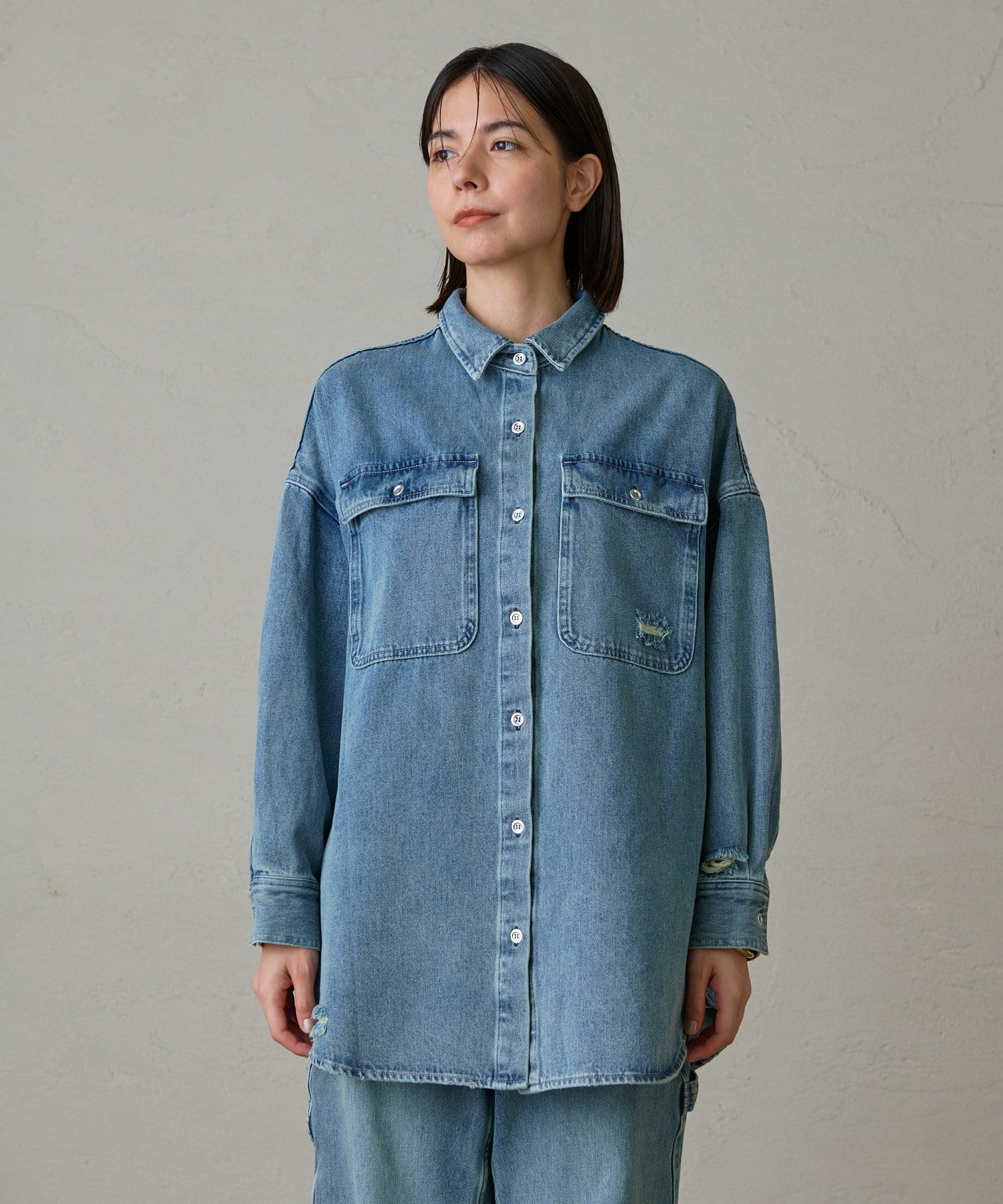 破洞牛仔襯衫