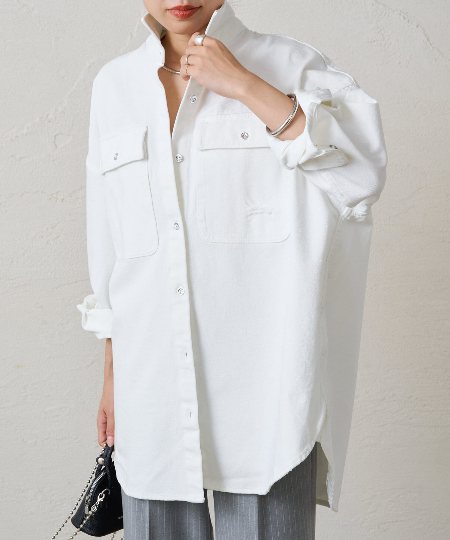 襯衫採用超修身剪裁和破損處理,乾爽大方。