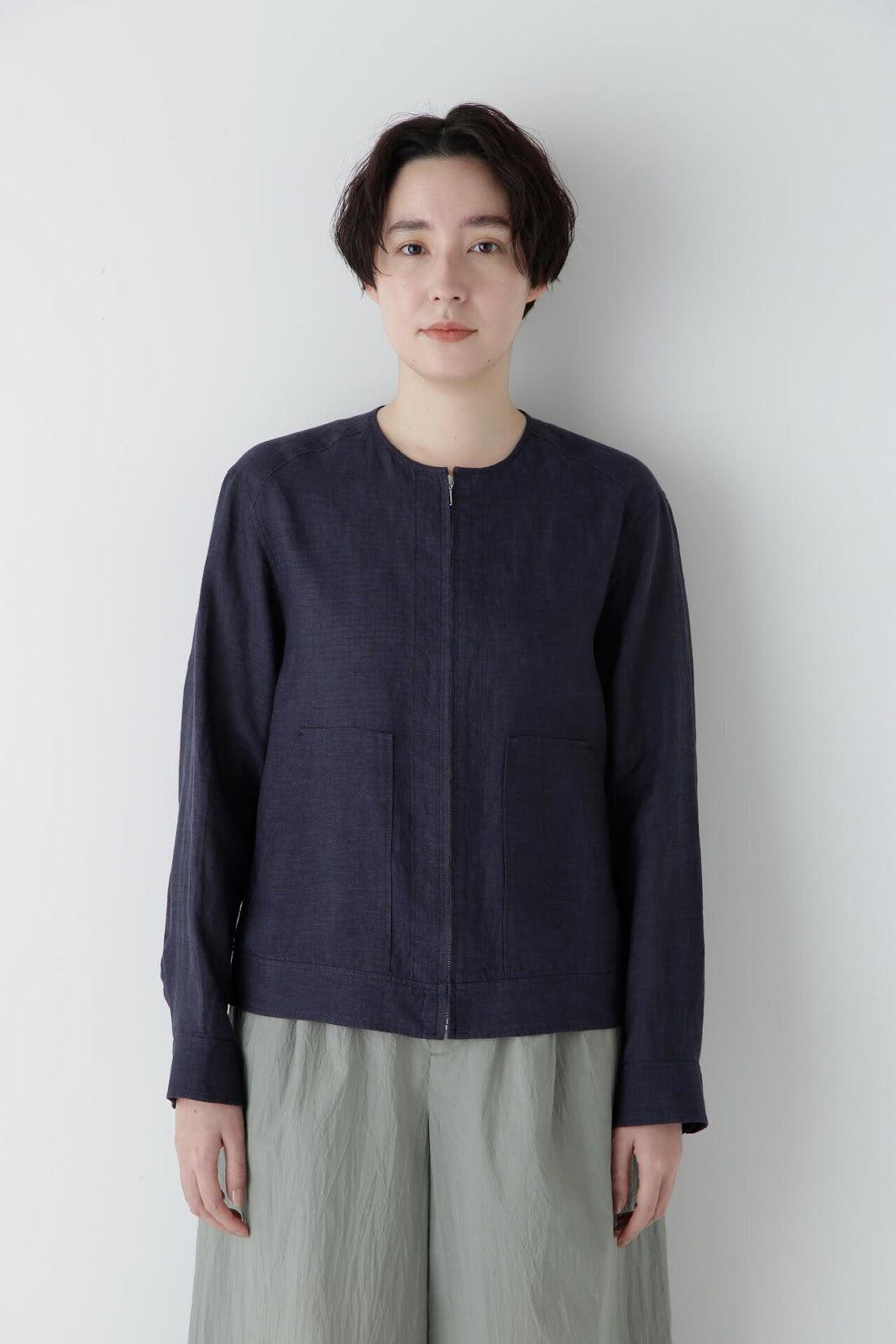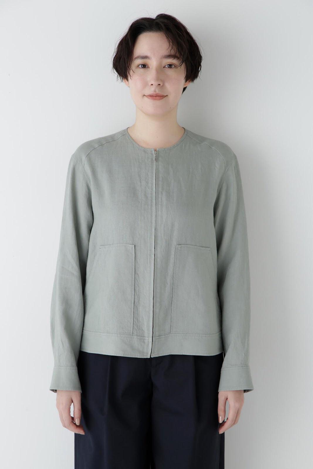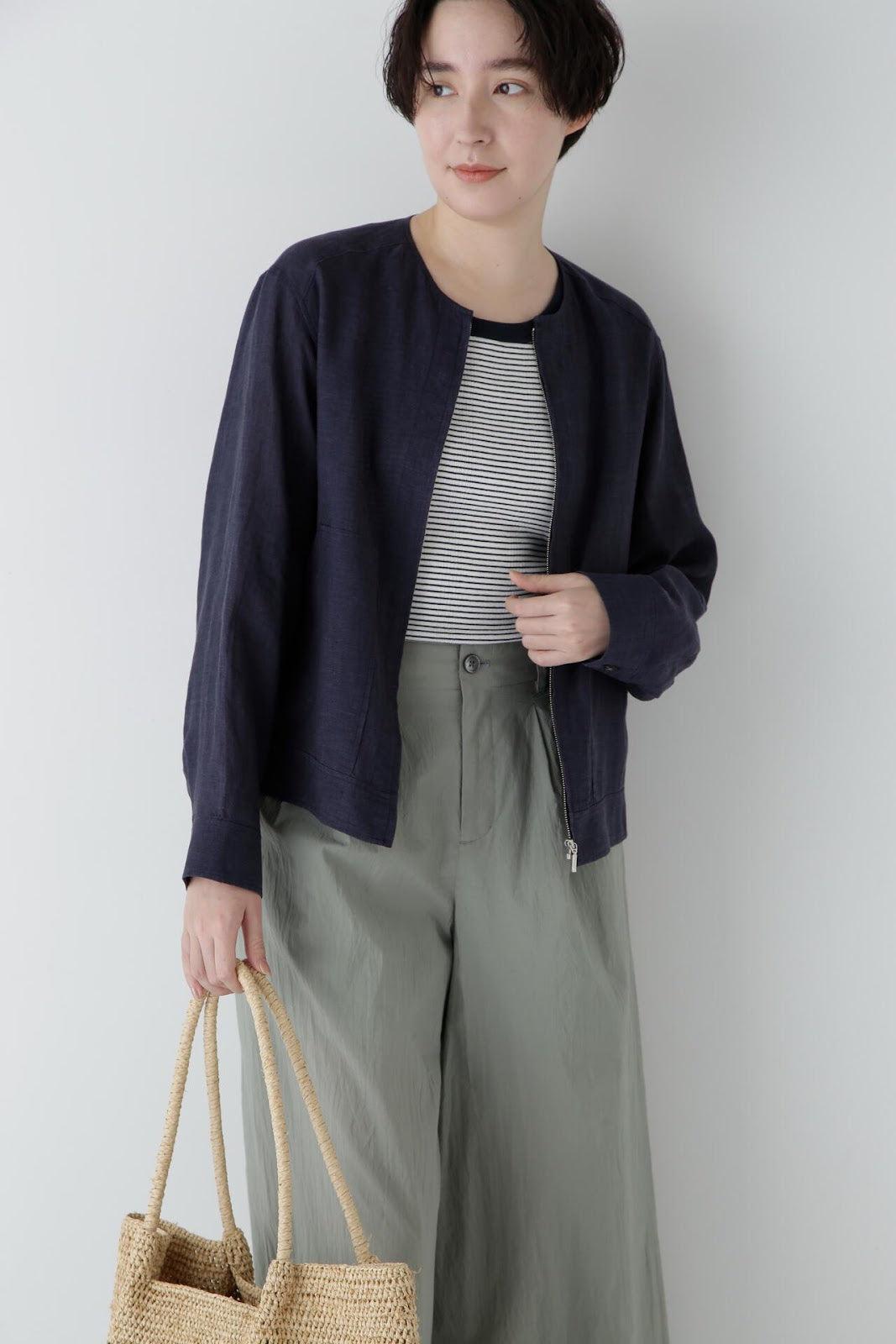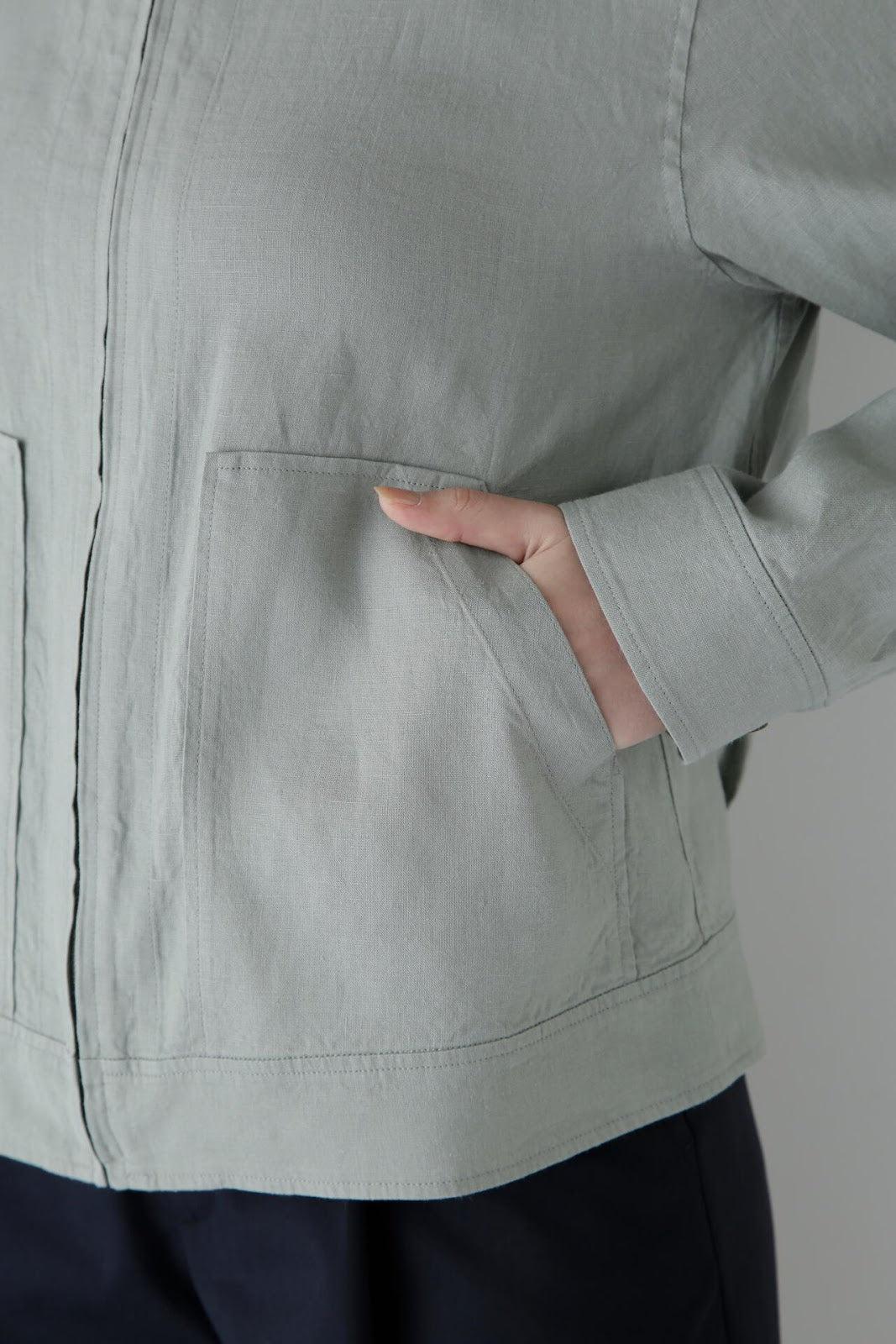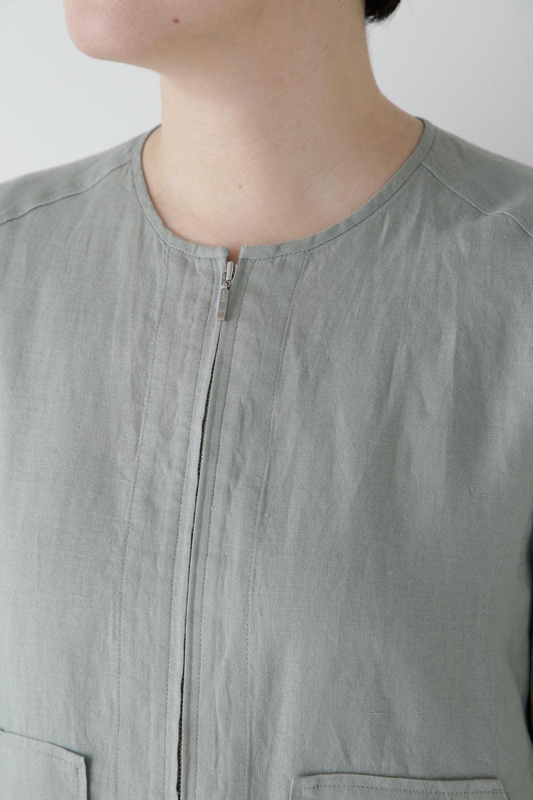 成人襯衫式亞麻布罩衫 [設計特色] 這款無領輕便拉鍊襯衫式罩衫穿著方便,具有水洗亞麻布的涼爽舒適感。前襟的貼袋和可調節紐扣袖口是這款襯衫的亮點。這款襯衫採用標準亞麻面料製成,具有優雅的光澤,產自法國北部諾曼底地區。推薦座標:利用其天然質感,這款罩衫是在裁剪縫製等外衣上搭配的絕佳單品。在炎熱的天氣裡,它還可以用作遮陽傘和空調罩。