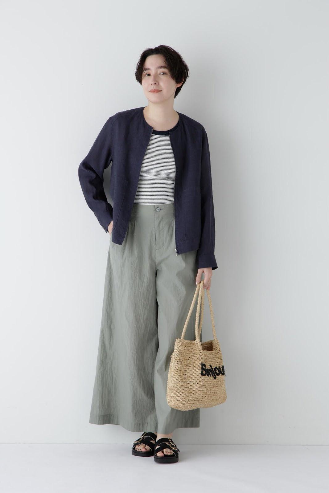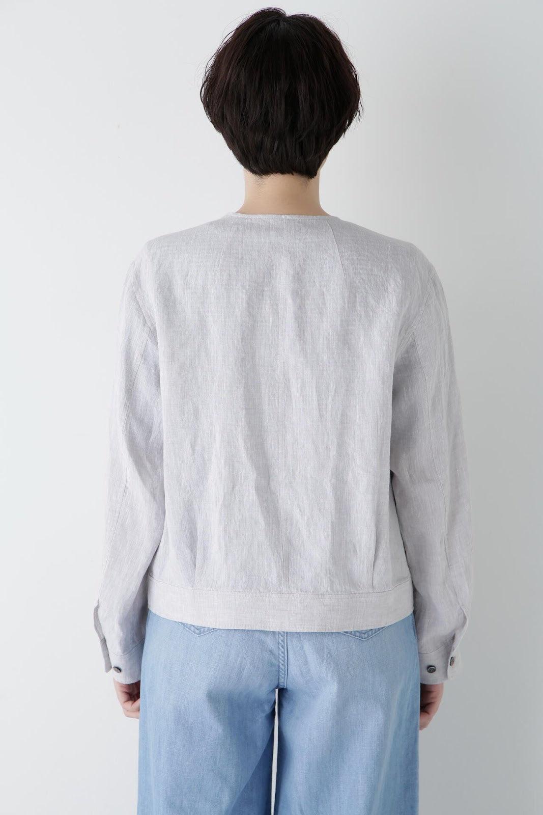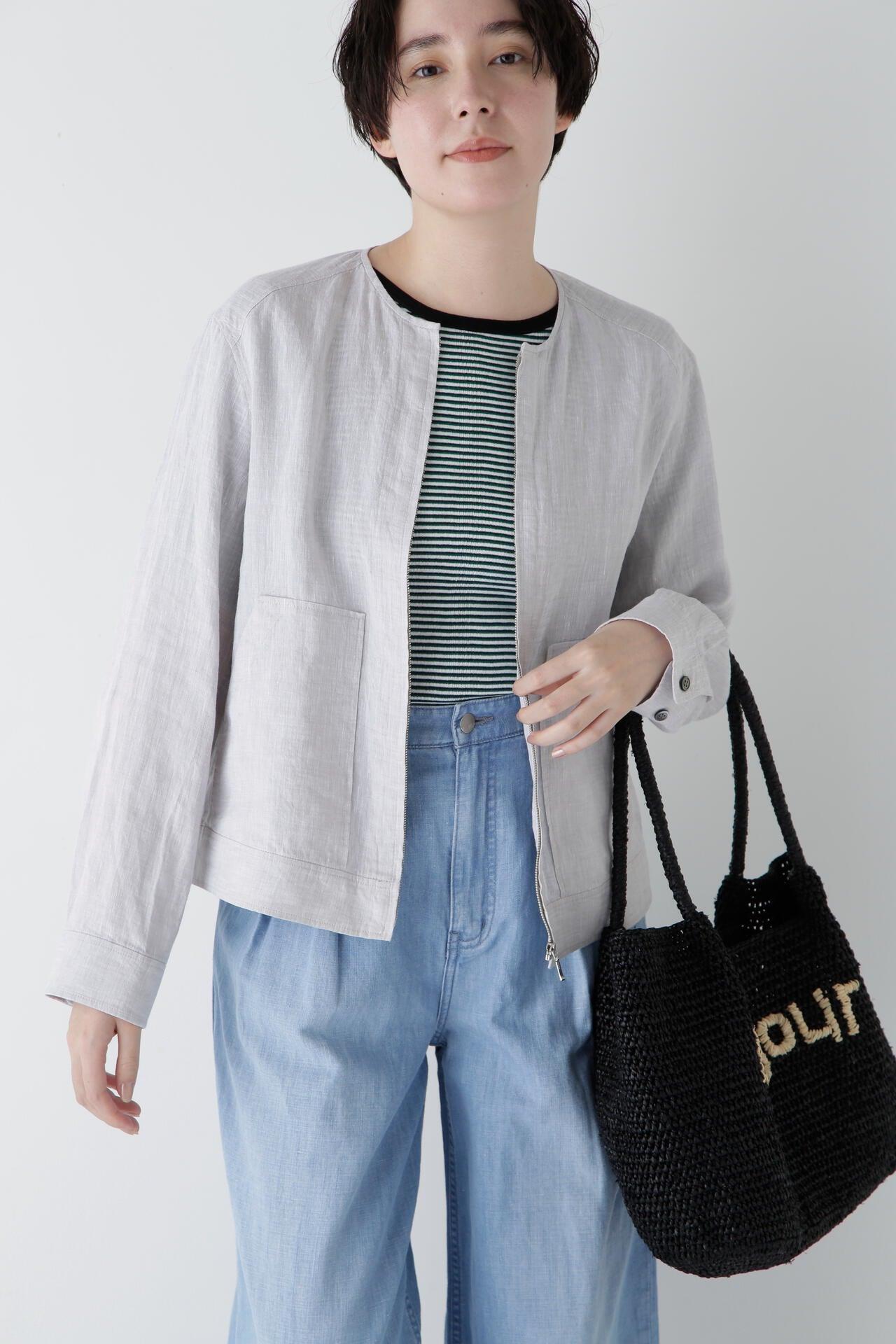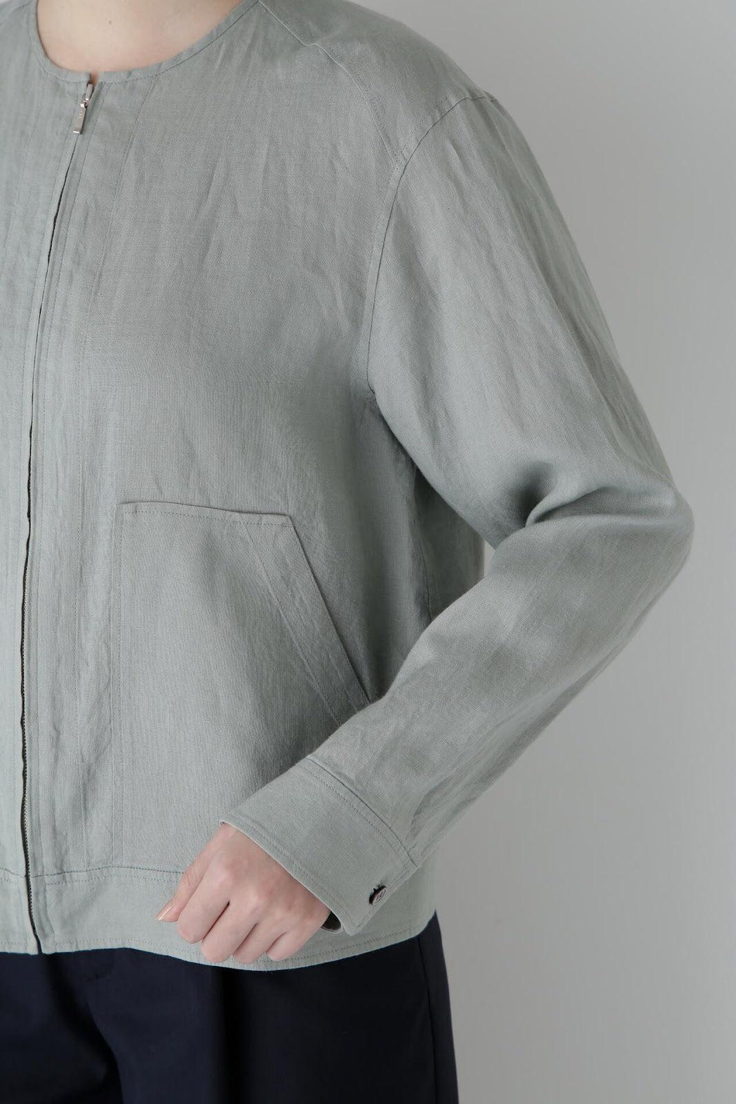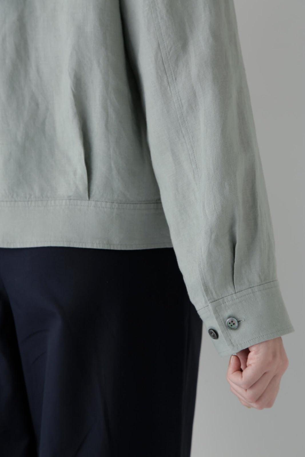 成人襯衫式亞麻布罩衫 [設計特色] 這款無領輕便拉鍊襯衫式罩衫穿著方便,具有水洗亞麻布的涼爽舒適感。前襟的貼袋和可調節紐扣袖口是這款襯衫的亮點。這款襯衫採用標準亞麻面料製成,具有優雅的光澤,產自法國北部諾曼底地區。推薦座標:利用其天然質感,這款罩衫是在裁剪縫製等外衣上搭配的絕佳單品。在炎熱的天氣裡,它還可以用作遮陽傘和空調罩。