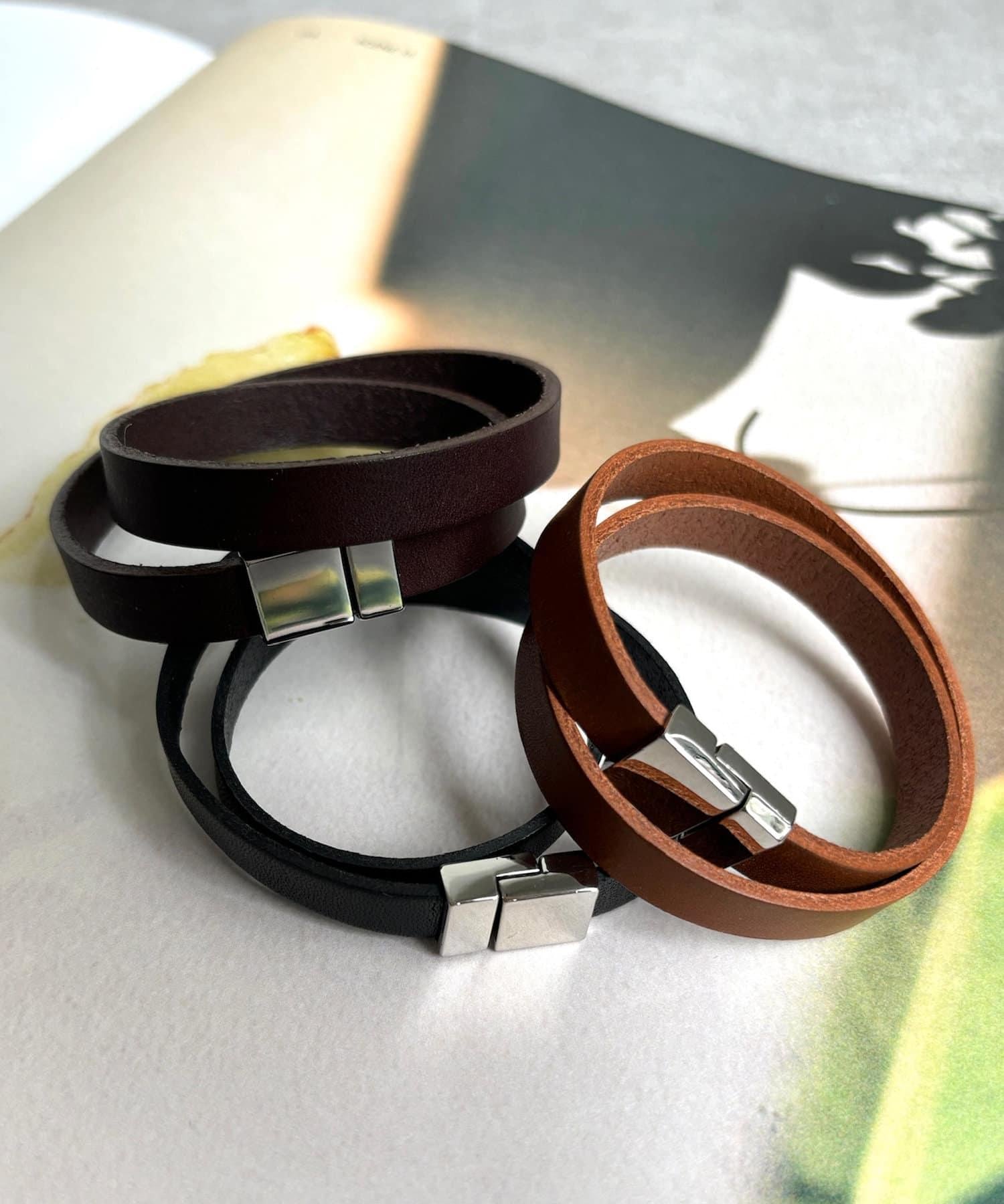 疊戴是時尚!帶磁性搭扣的皮革手鍊