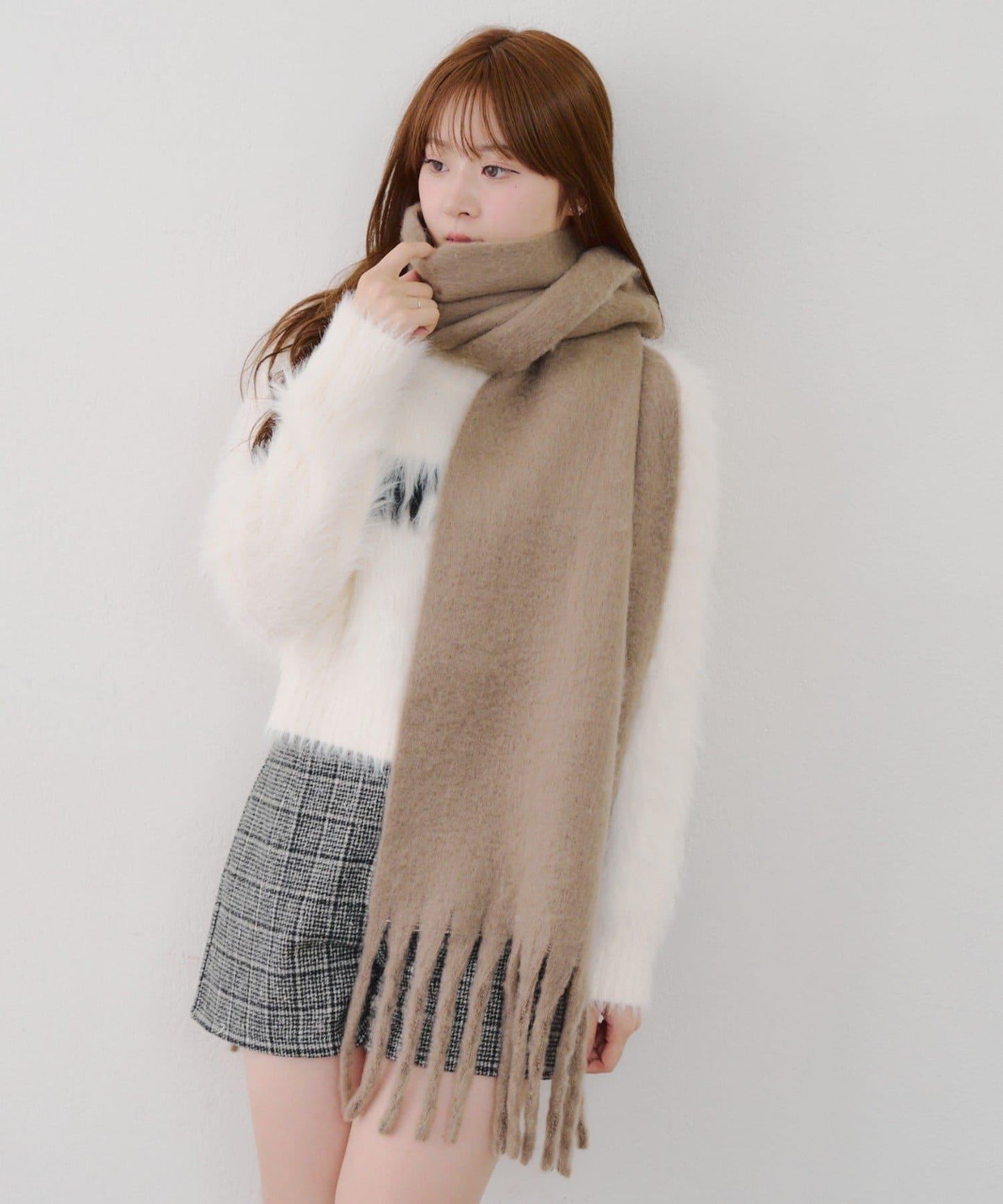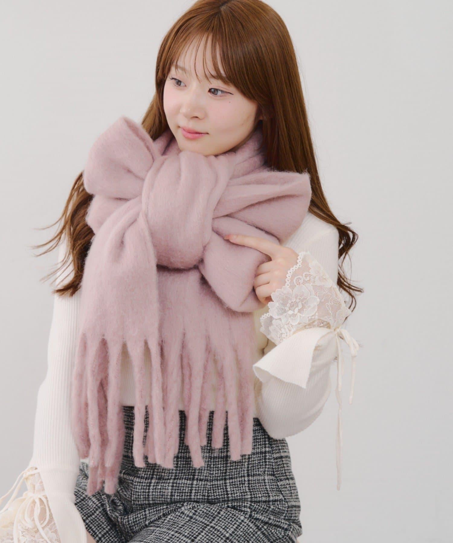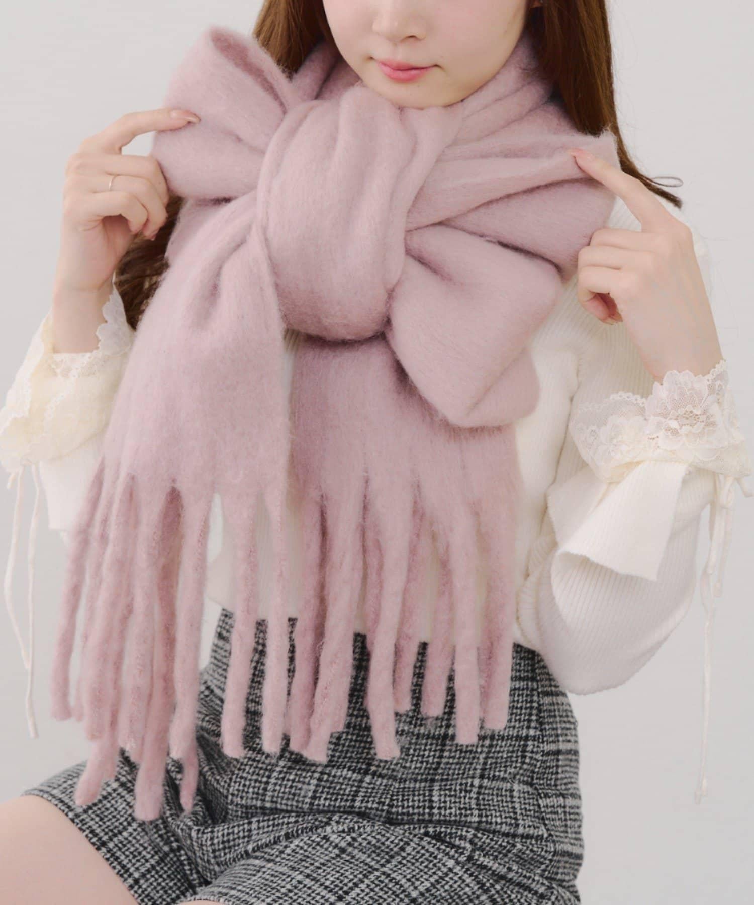 圍巾的長度可以讓您享受絲帶結等可愛的編織。