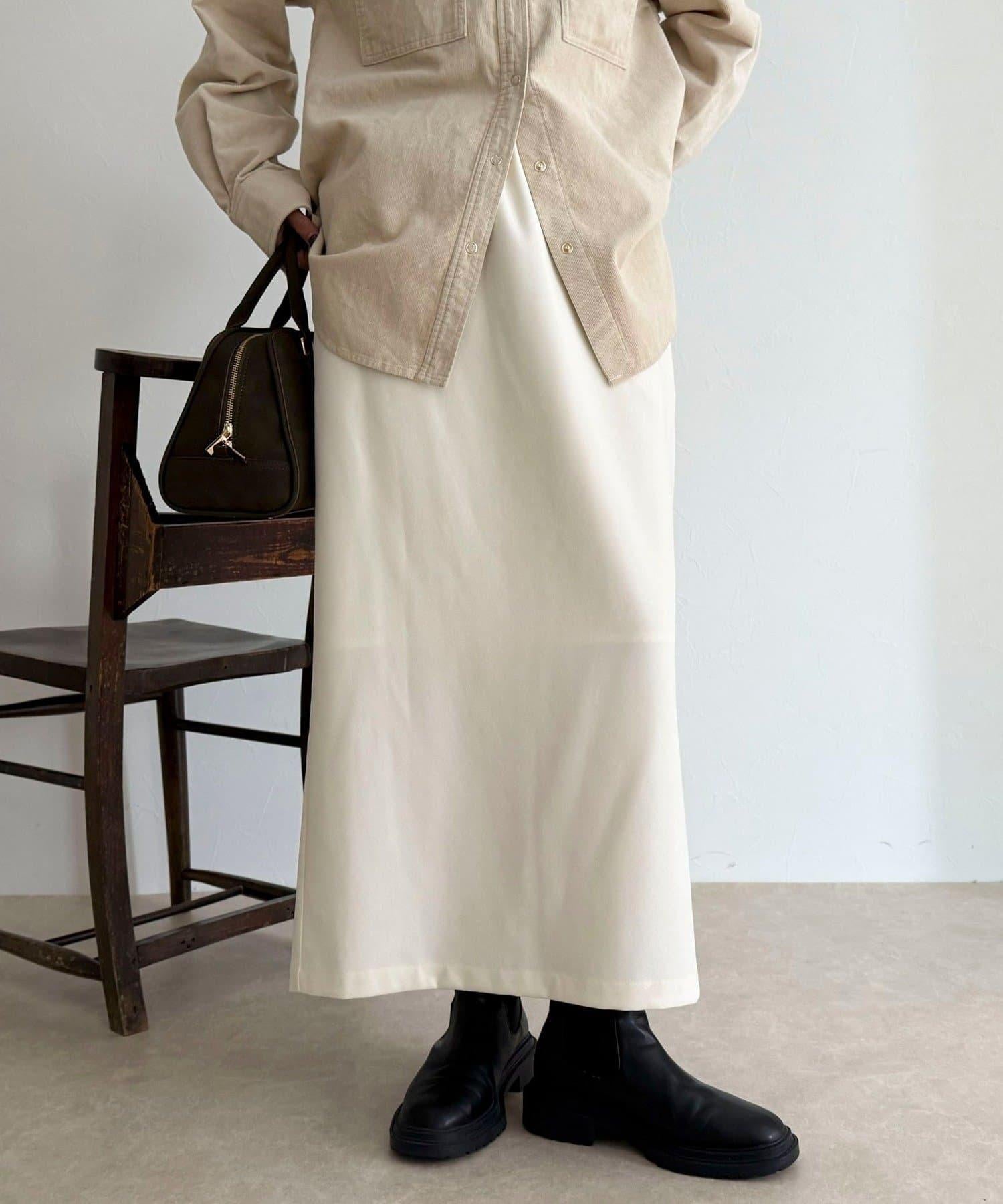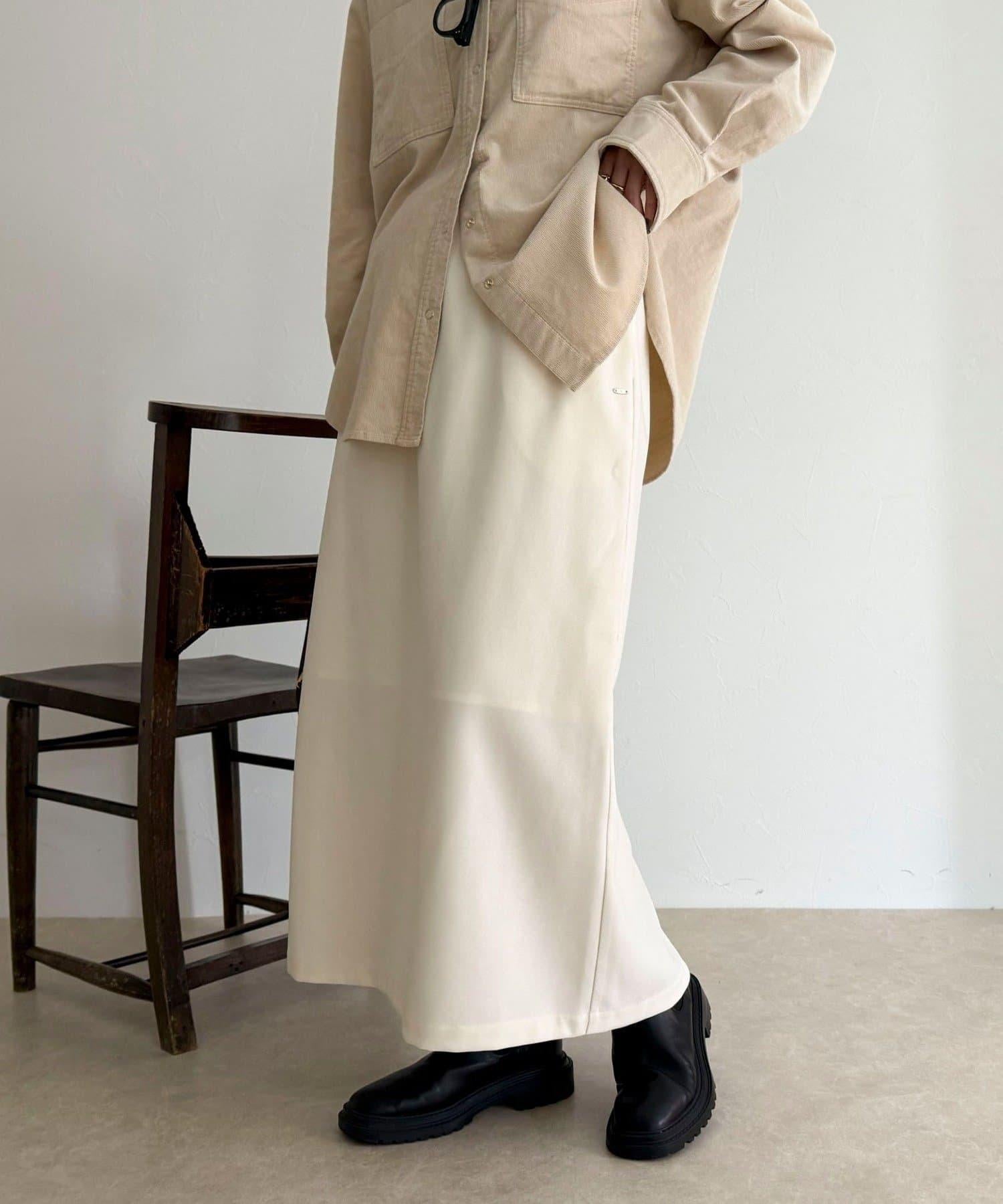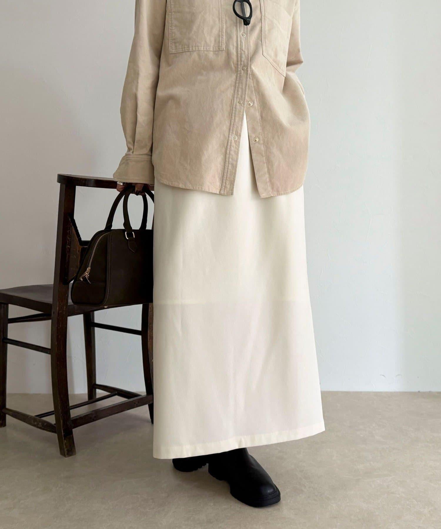 這款 I 字裙採用具有磨毛感的斜紋面料製成。