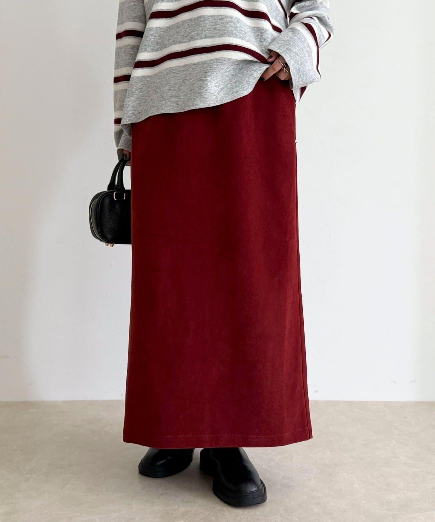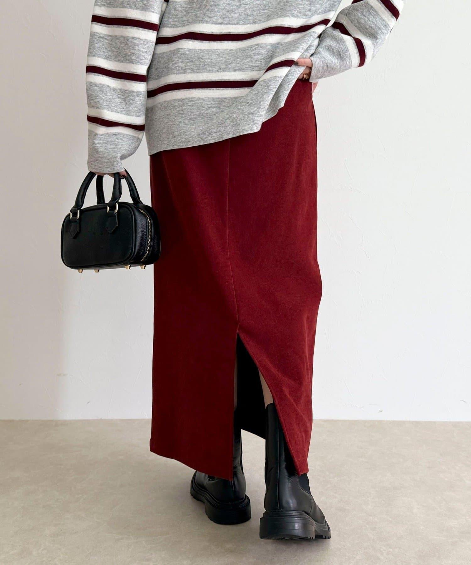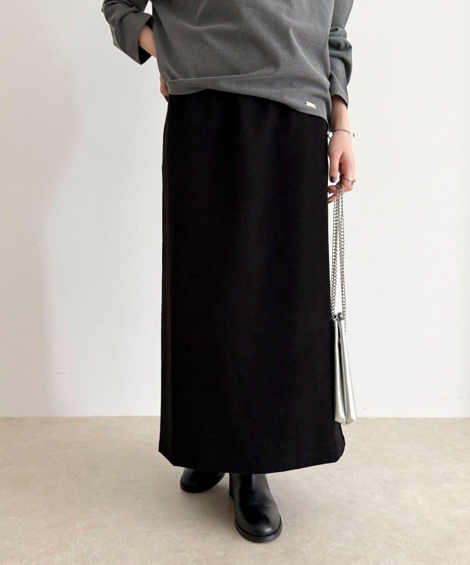 這款 I 字裙採用具有磨毛感的斜紋面料製成。