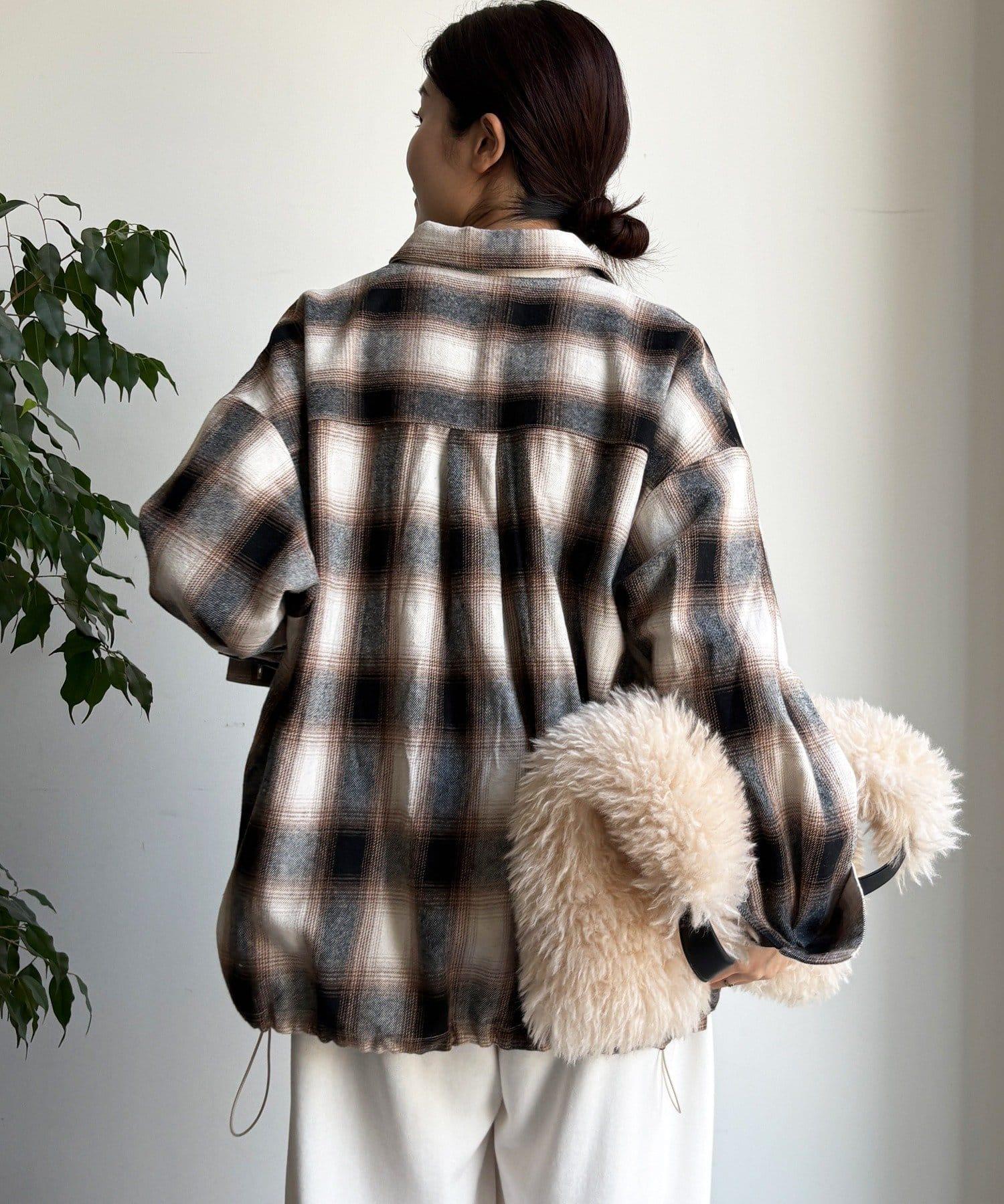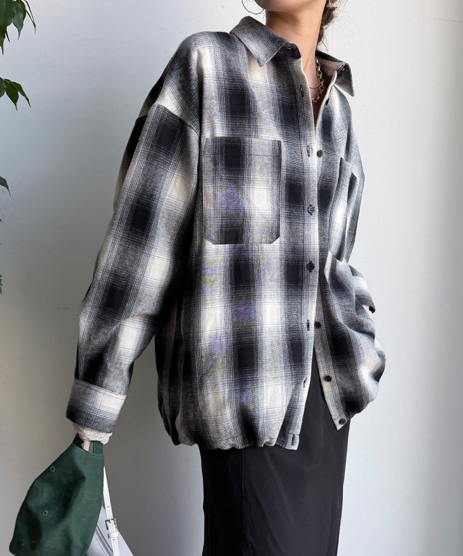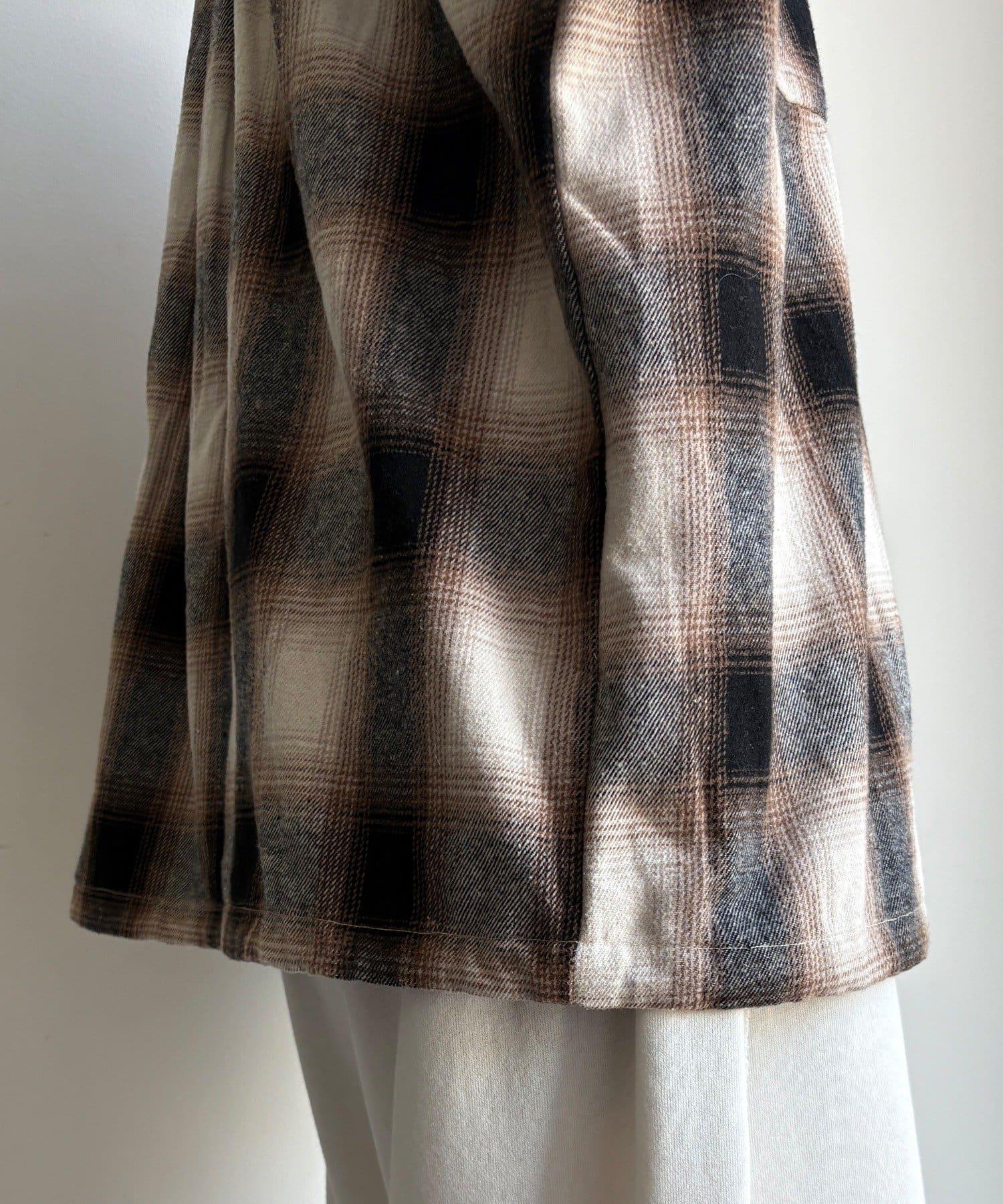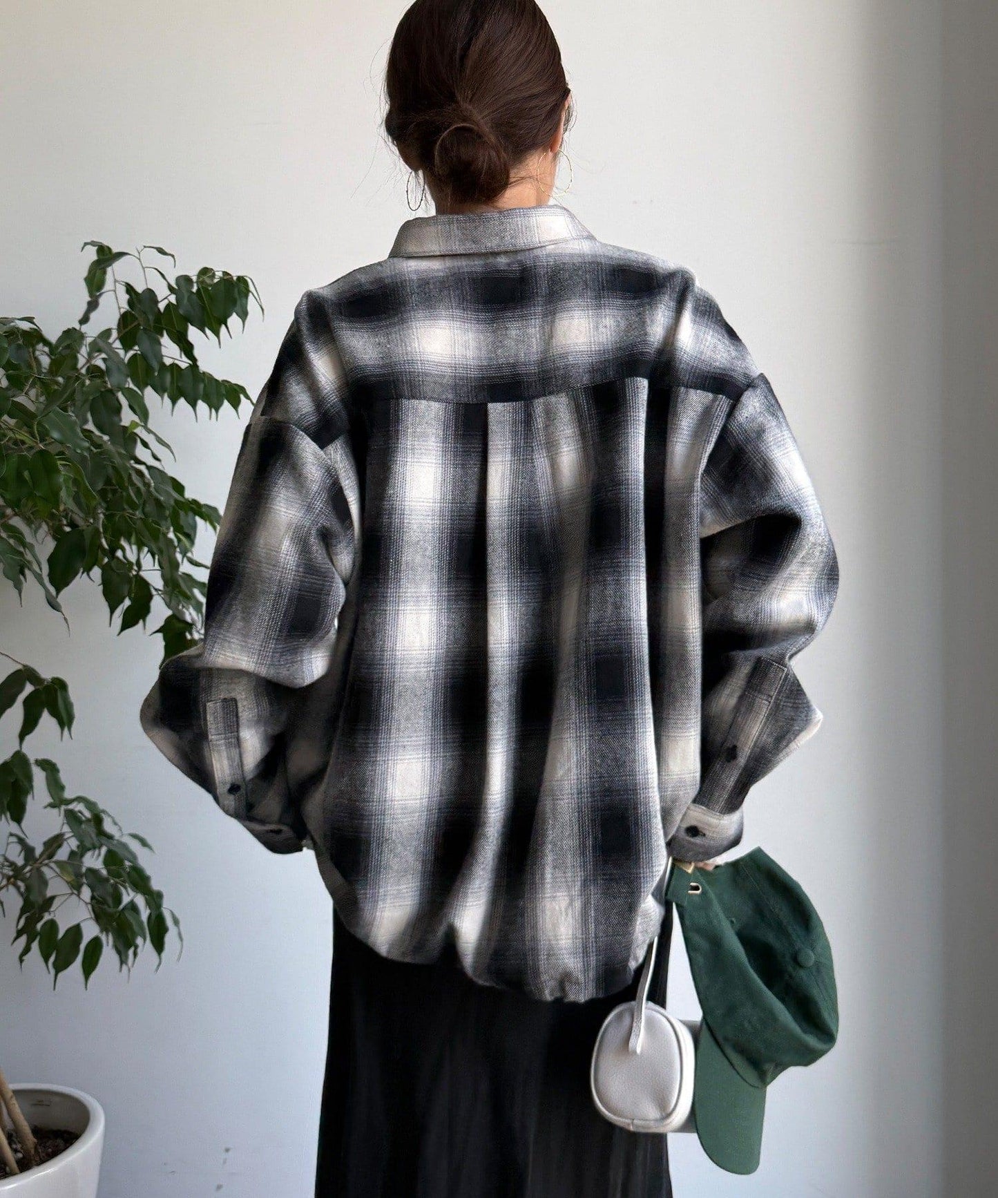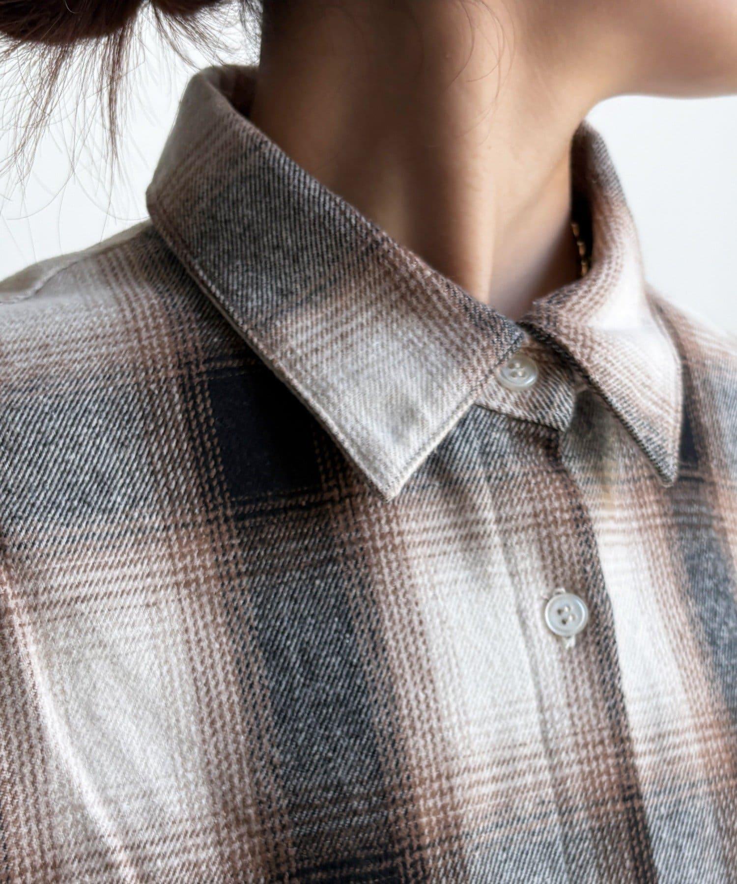 這款襯衫的格紋圖案色彩柔和,極具吸引力,下襬採用 DOUDOU 風格的紡錘形設計。