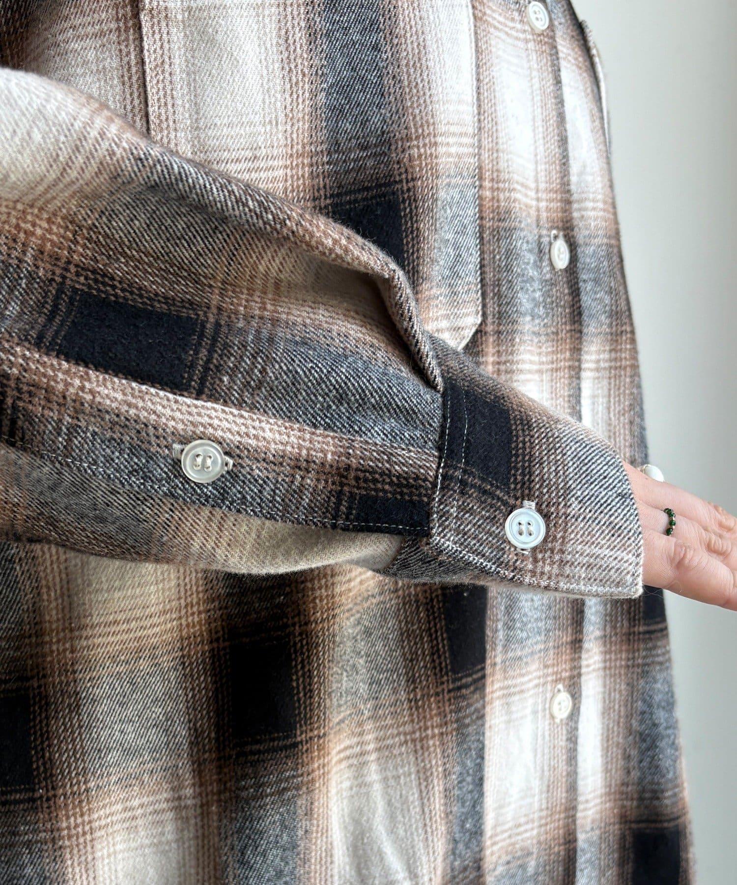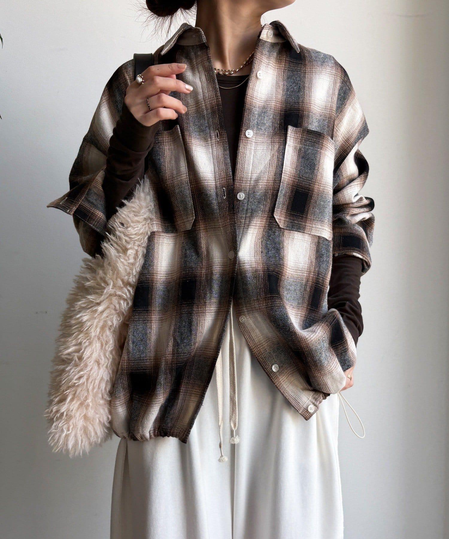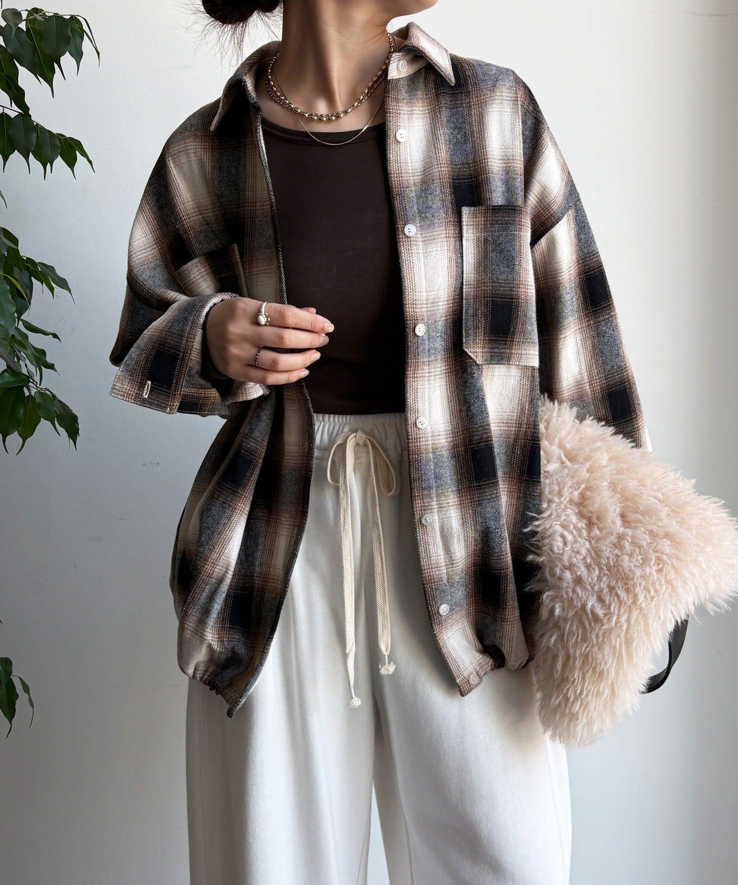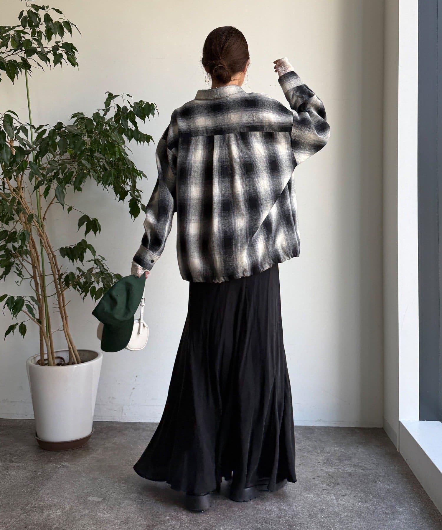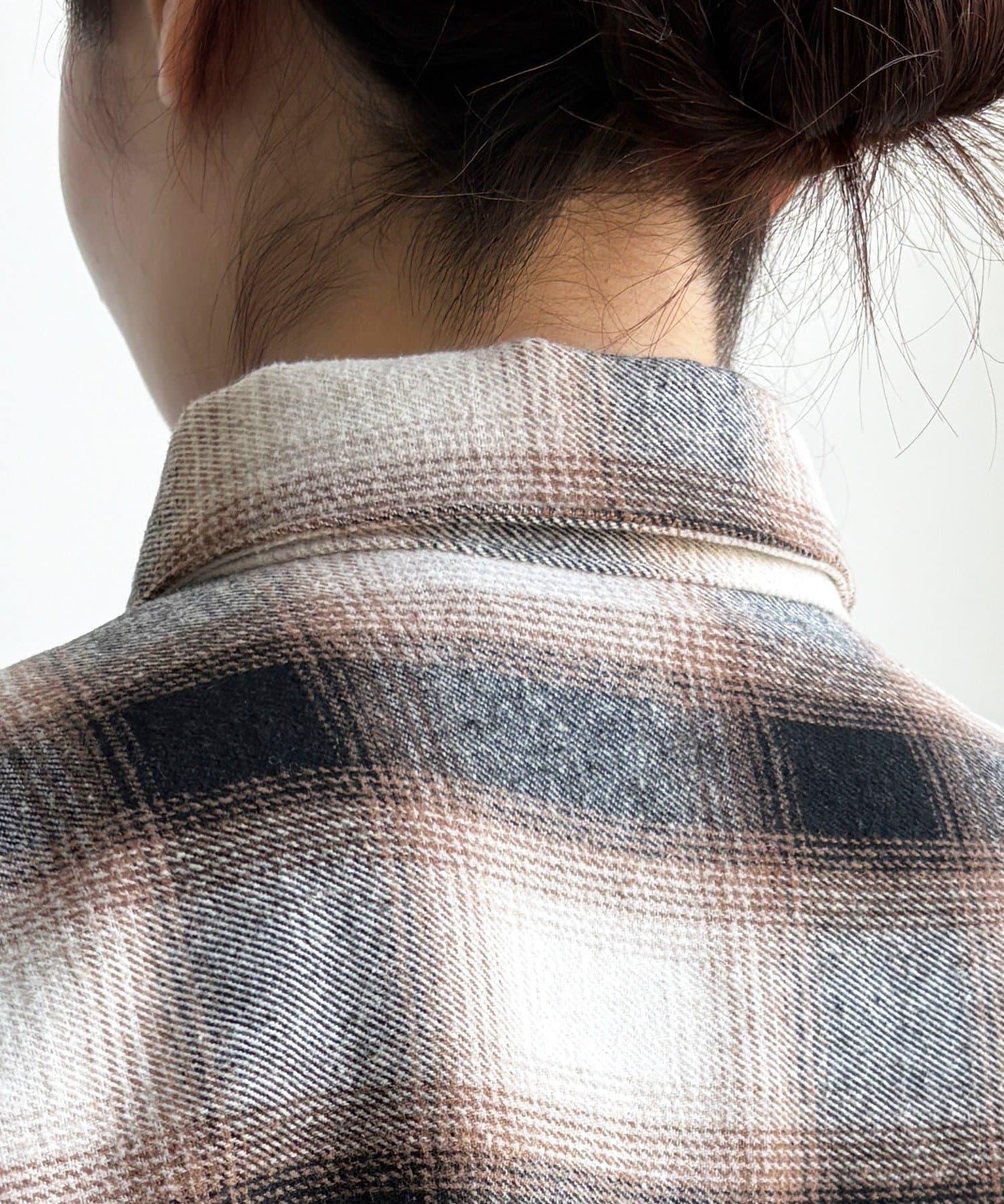 這款襯衫的格紋圖案色彩柔和,極具吸引力,下襬採用 DOUDOU 風格的紡錘形設計。