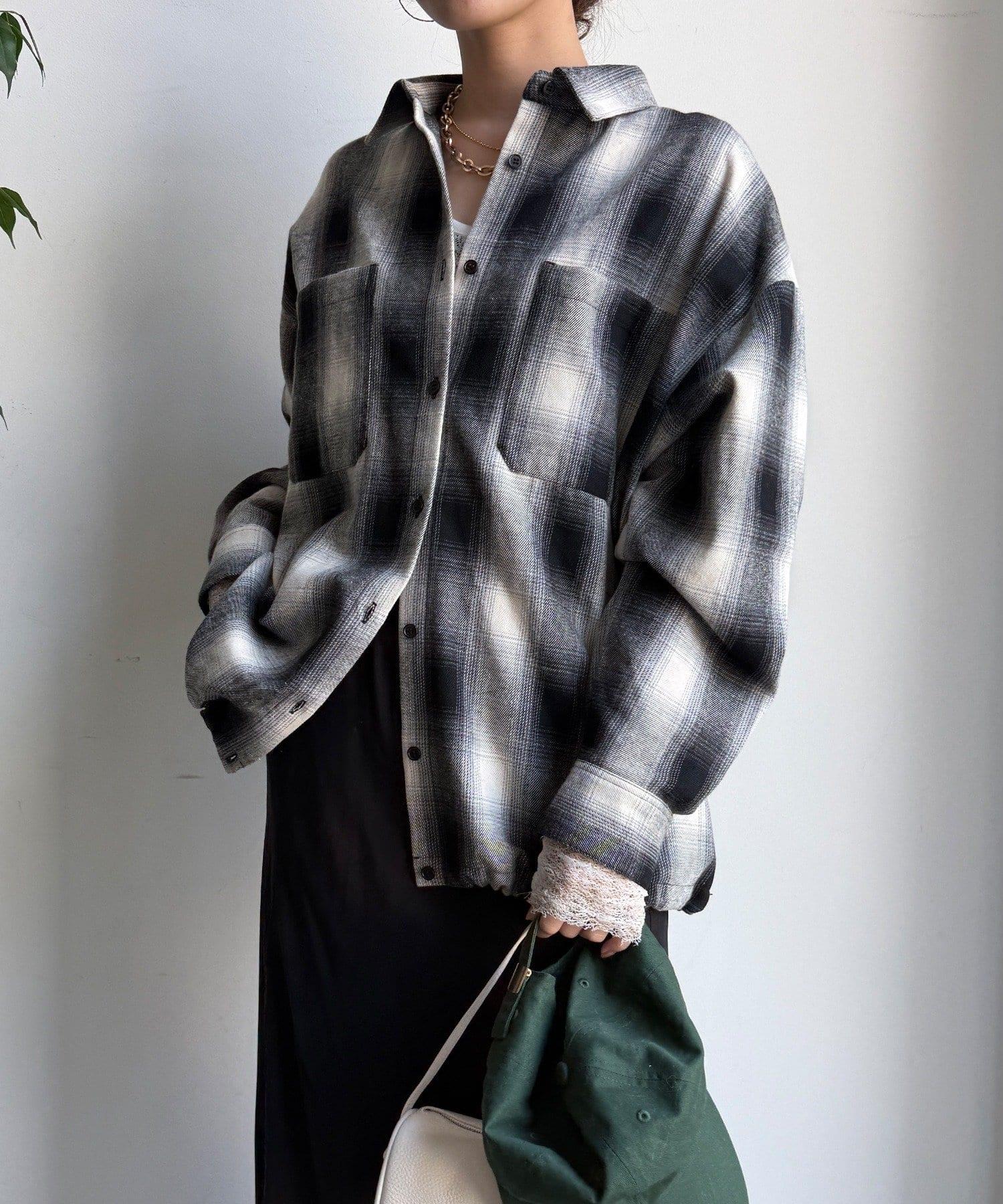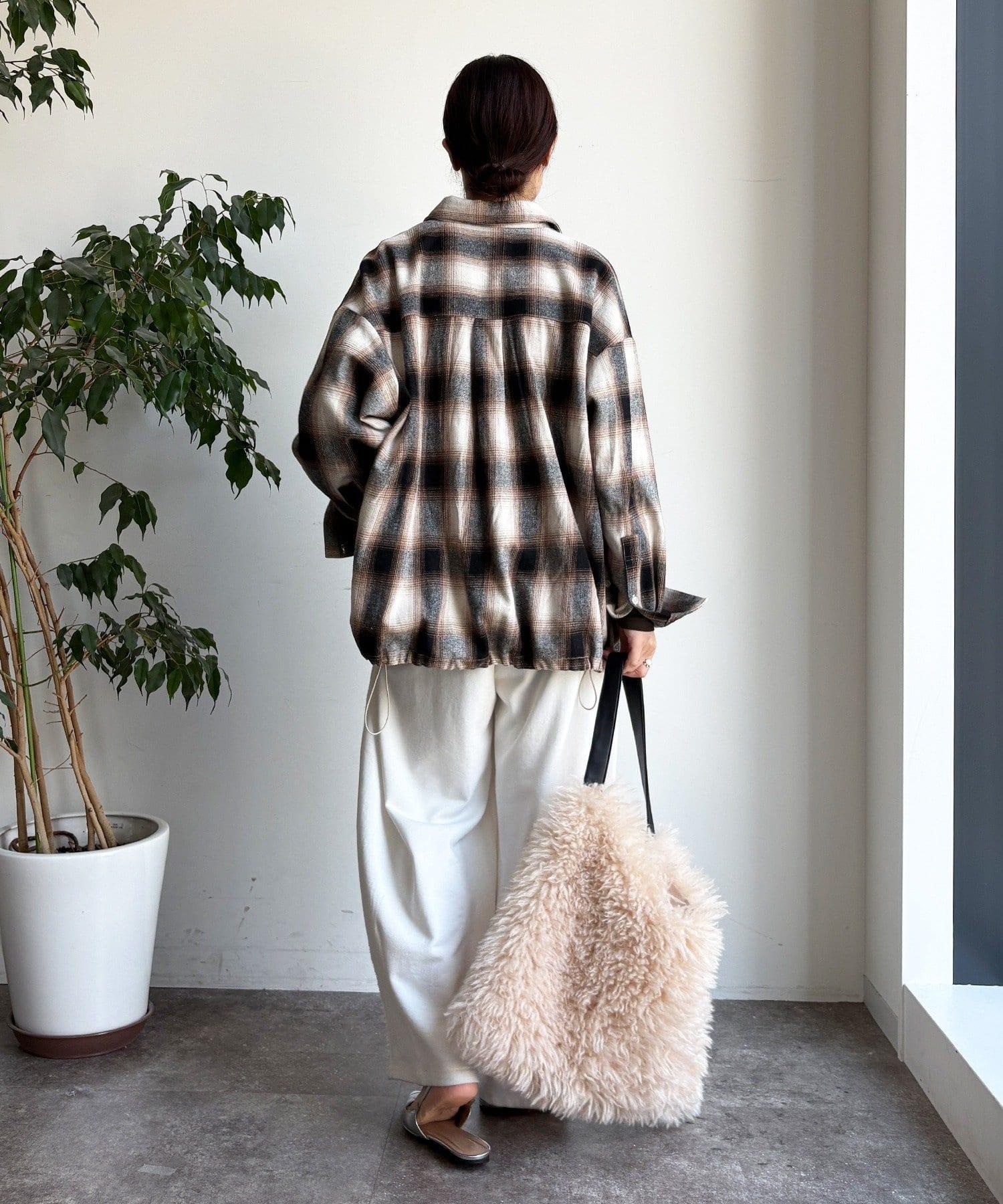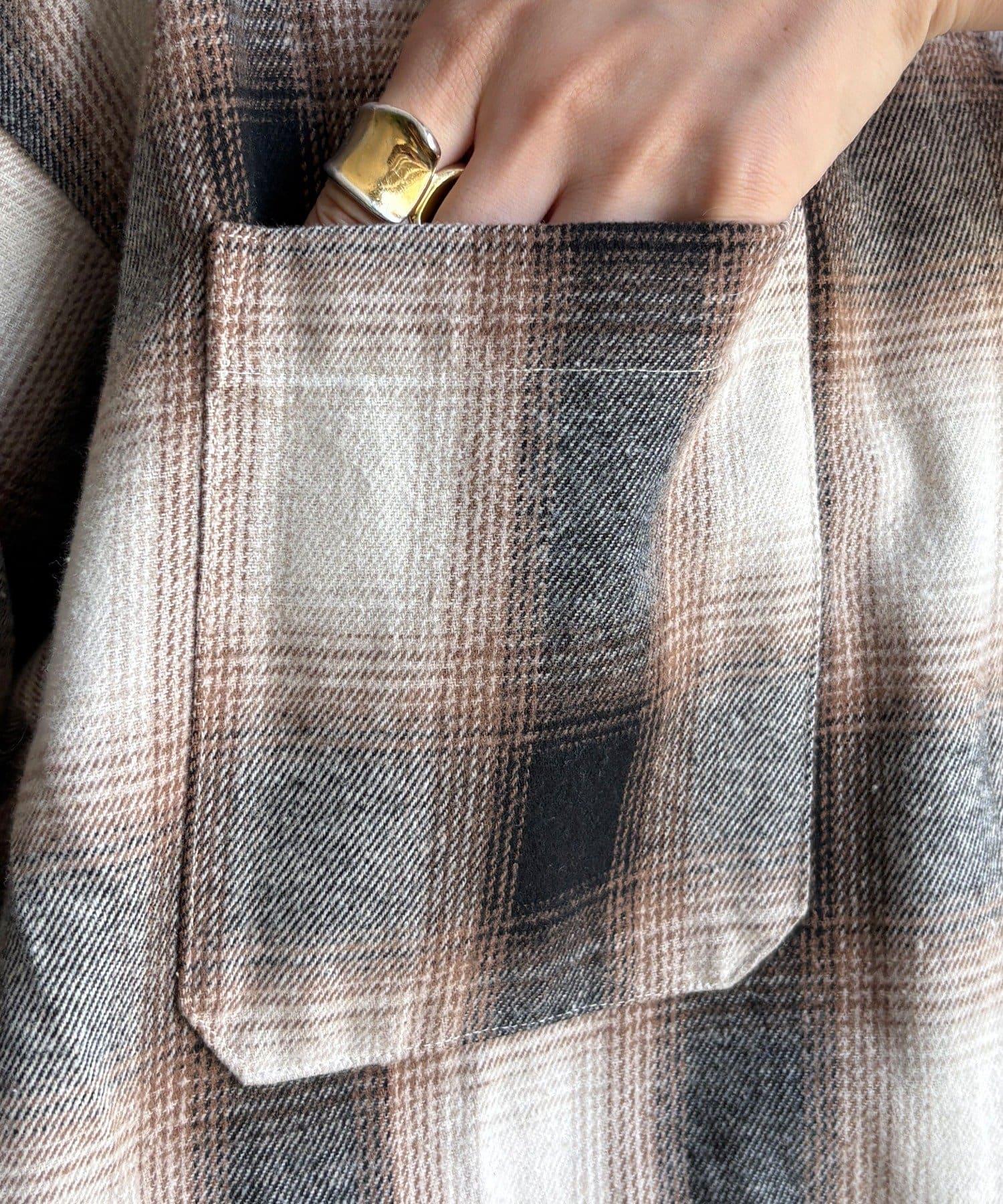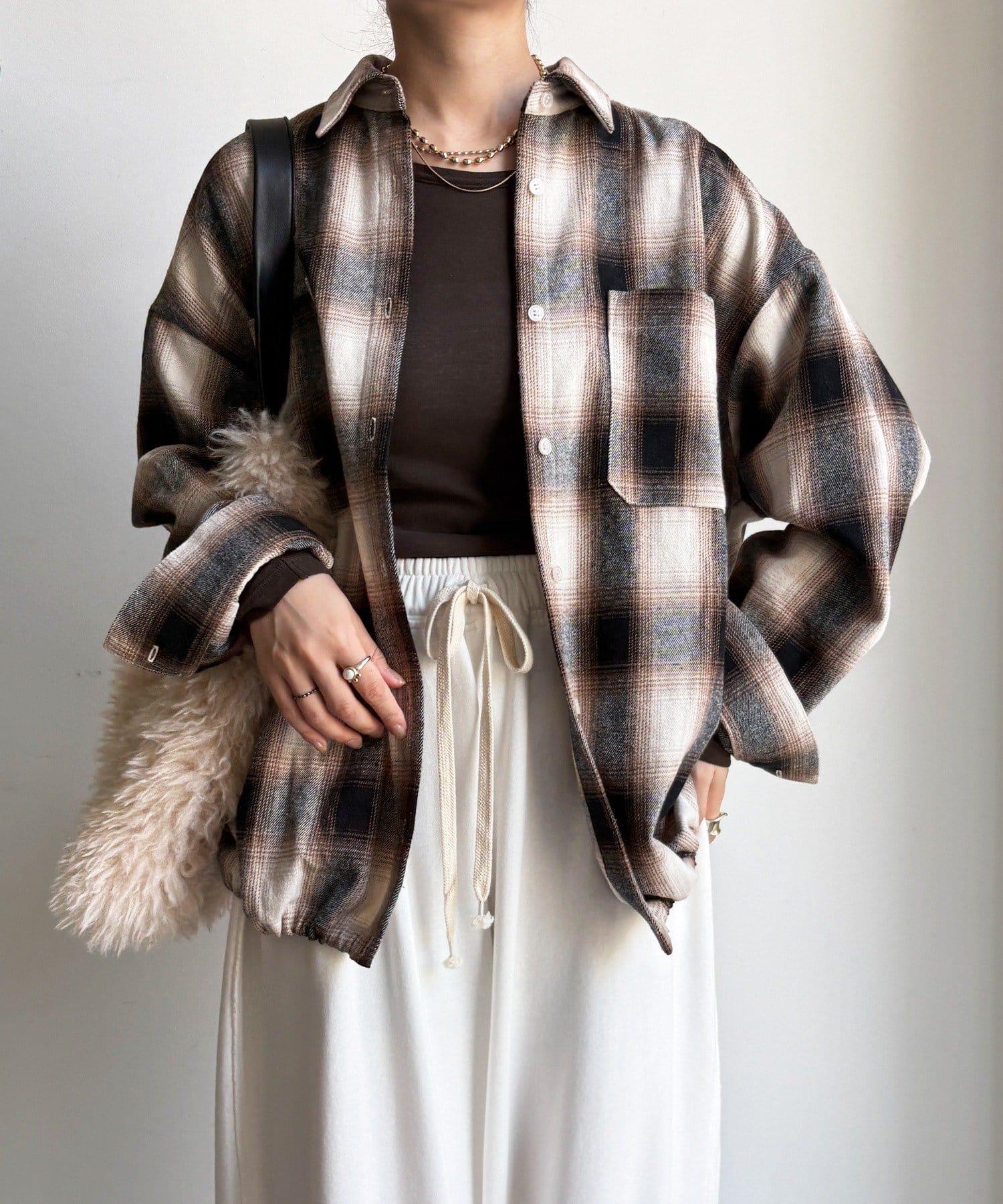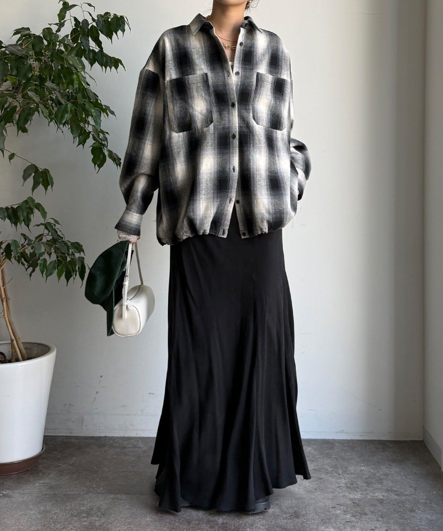這款襯衫的格紋圖案色彩柔和,極具吸引力,下襬採用 DOUDOU 風格的紡錘形設計。