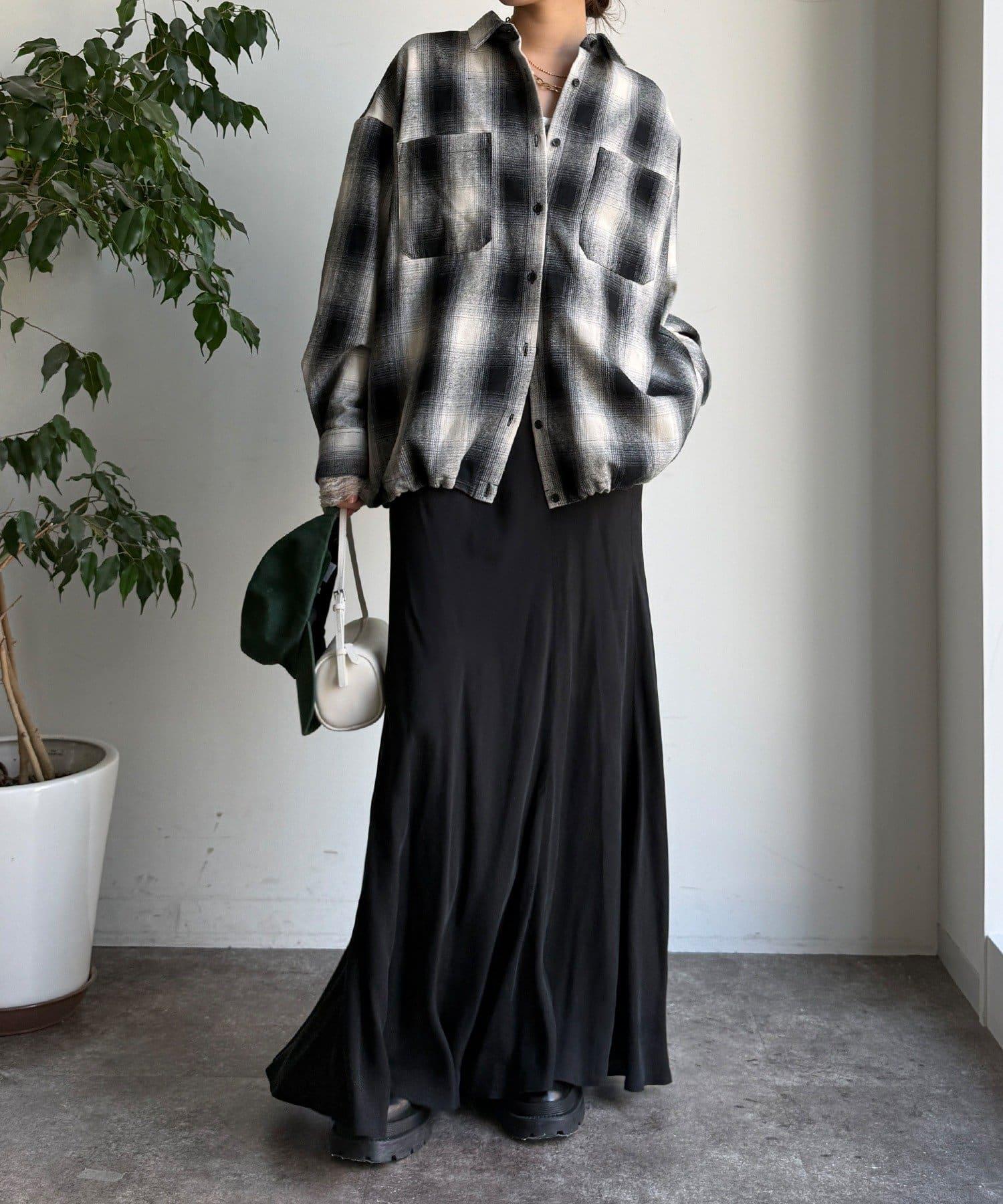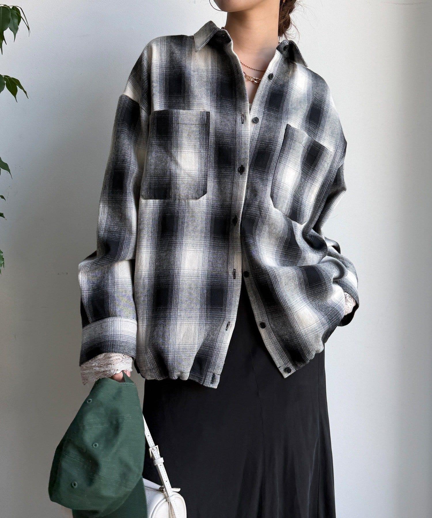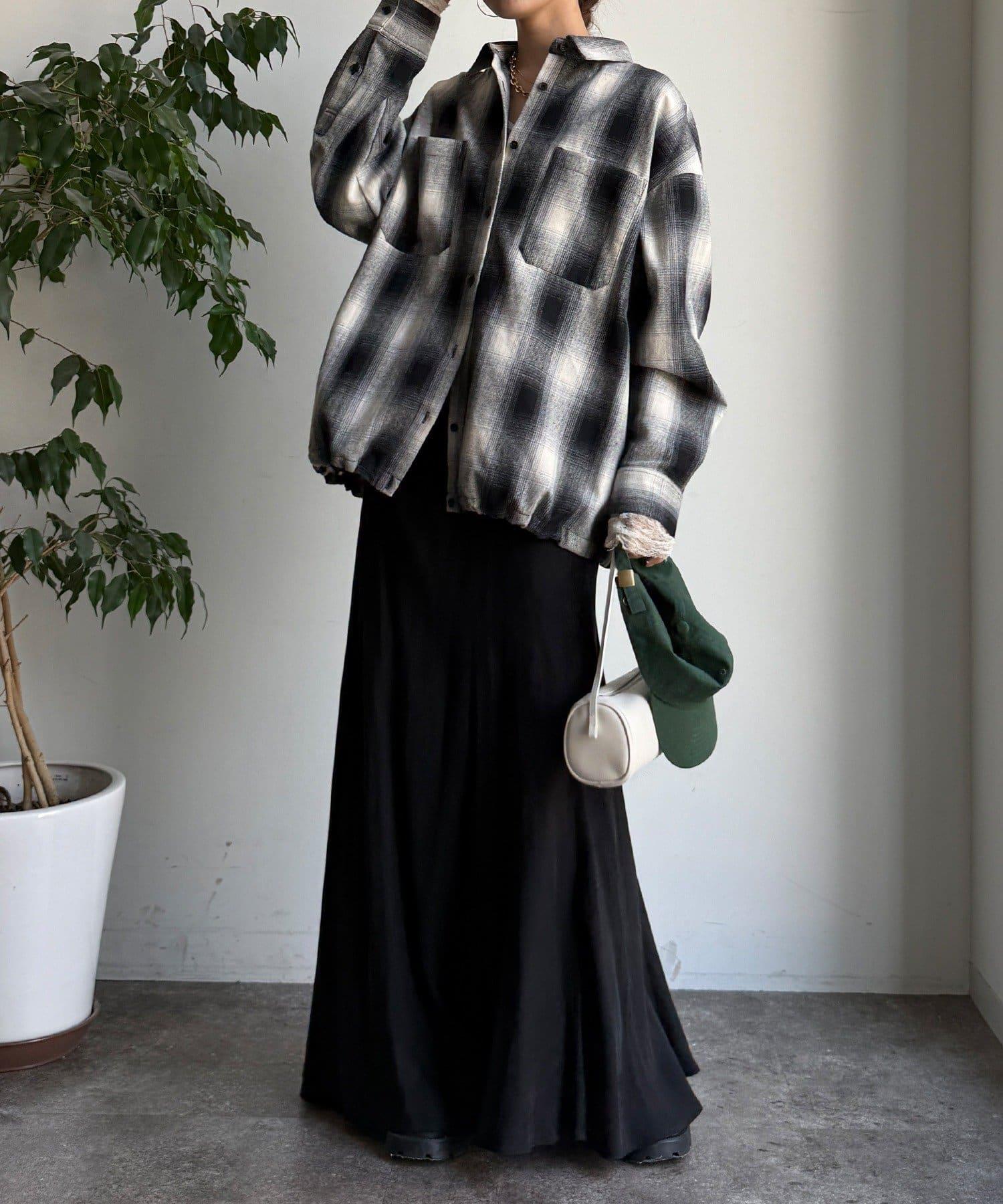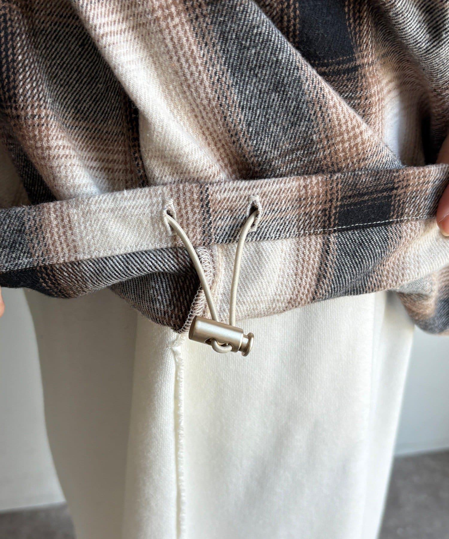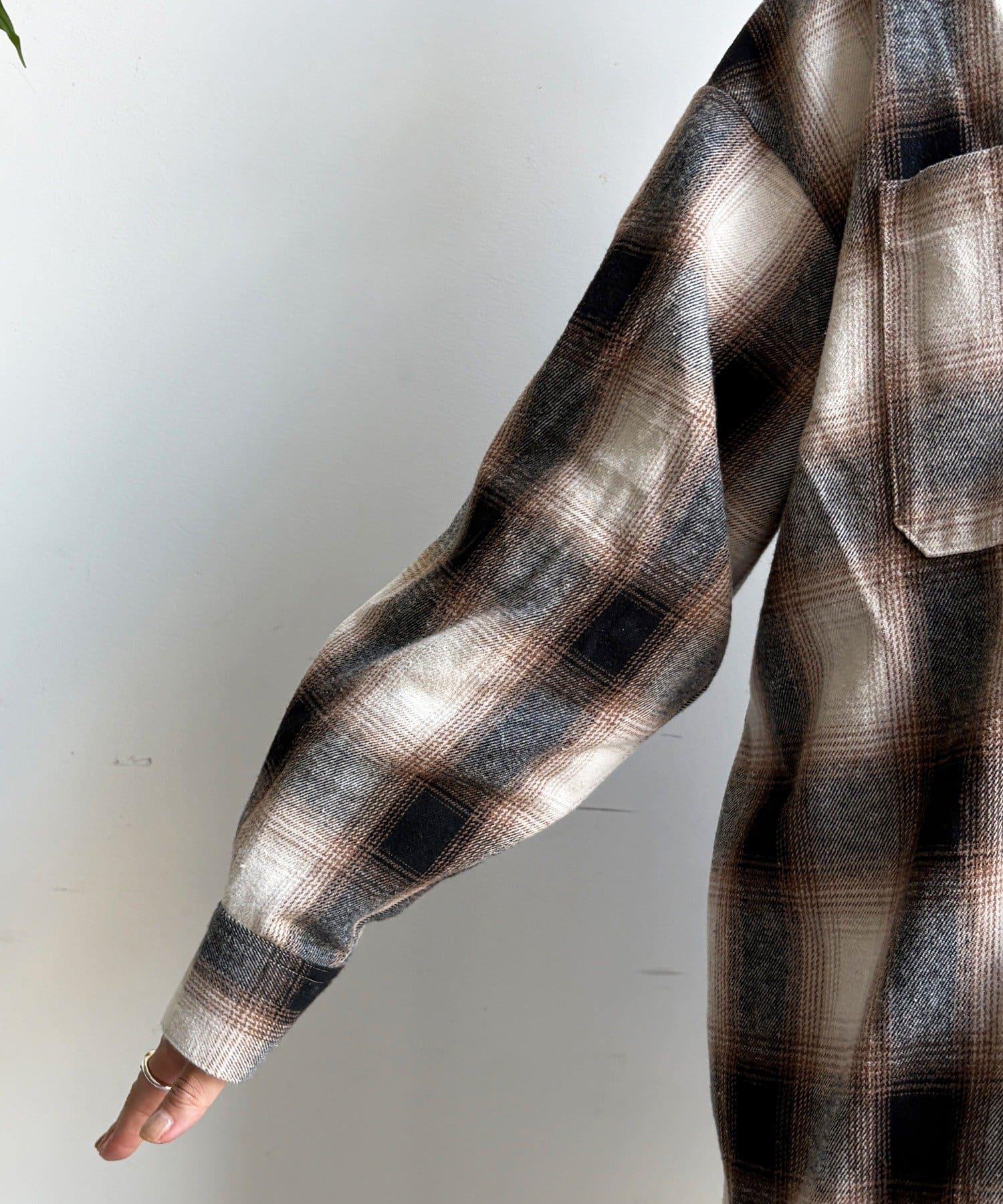 這款襯衫的格紋圖案色彩柔和,極具吸引力,下襬採用 DOUDOU 風格的紡錘形設計。