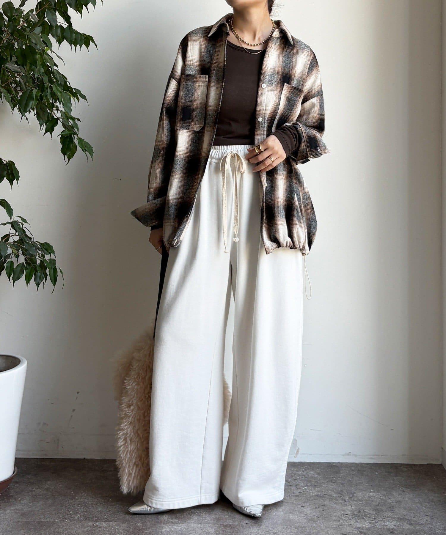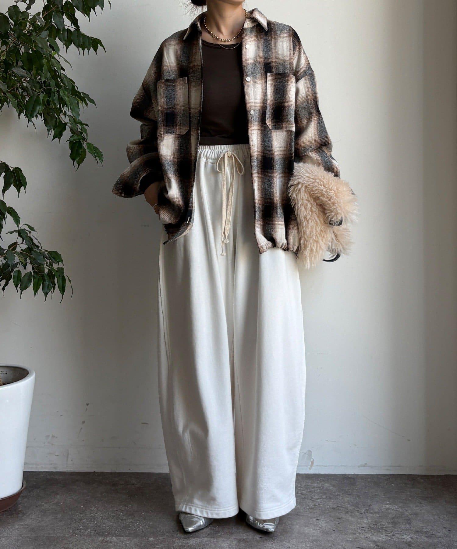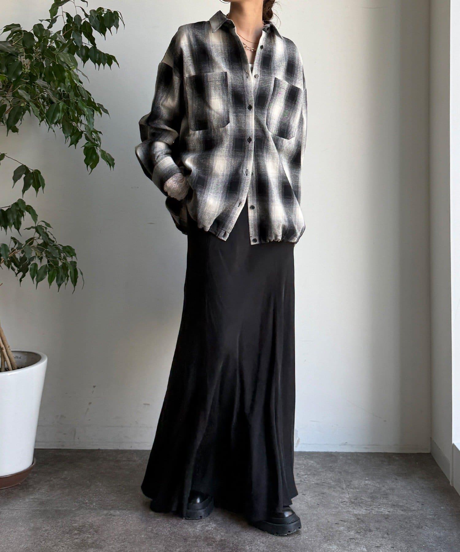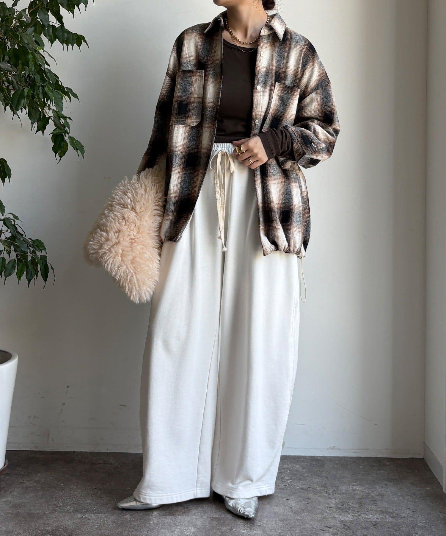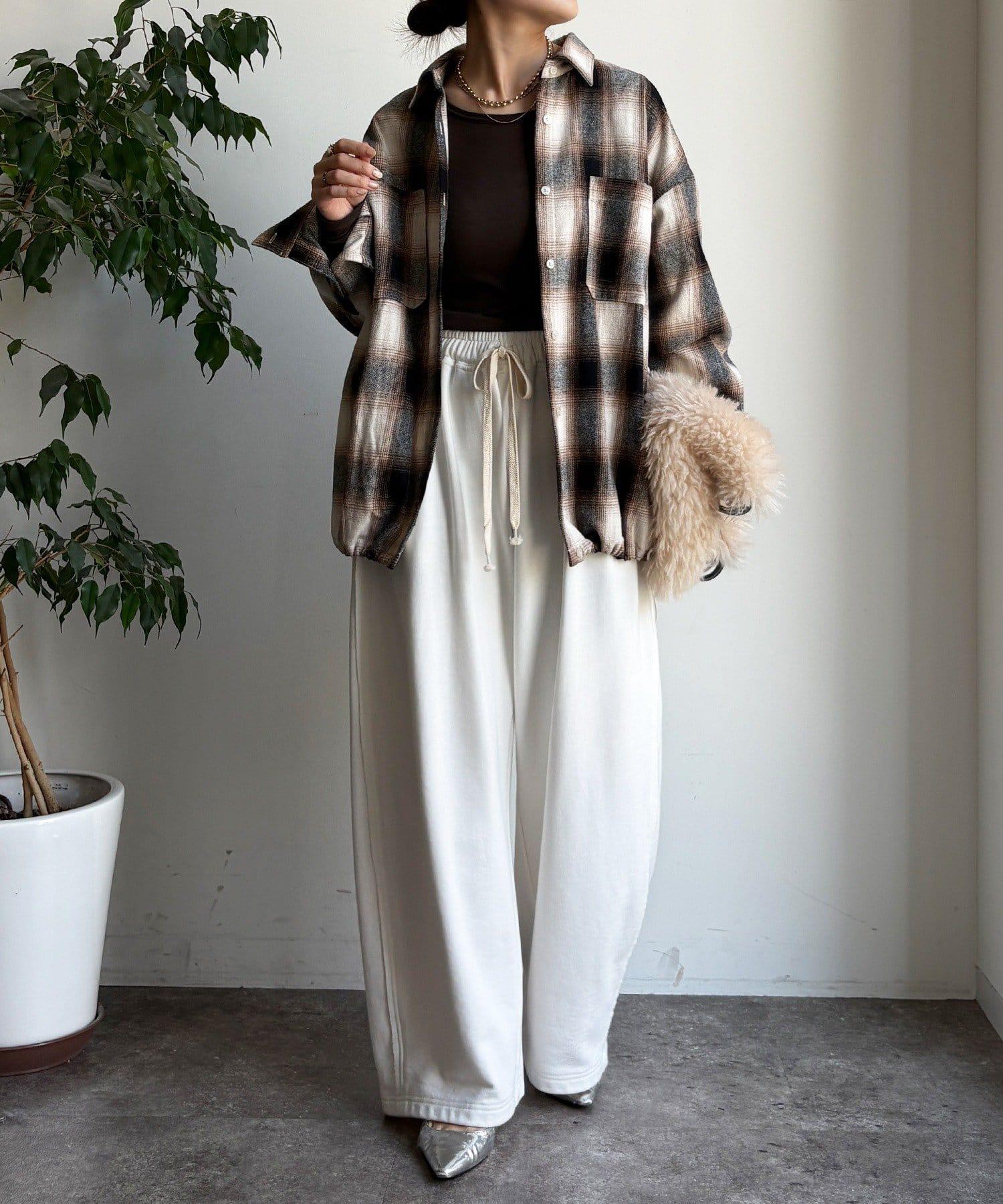 這款襯衫的格紋圖案色彩柔和,極具吸引力,下襬採用 DOUDOU 風格的紡錘形設計。