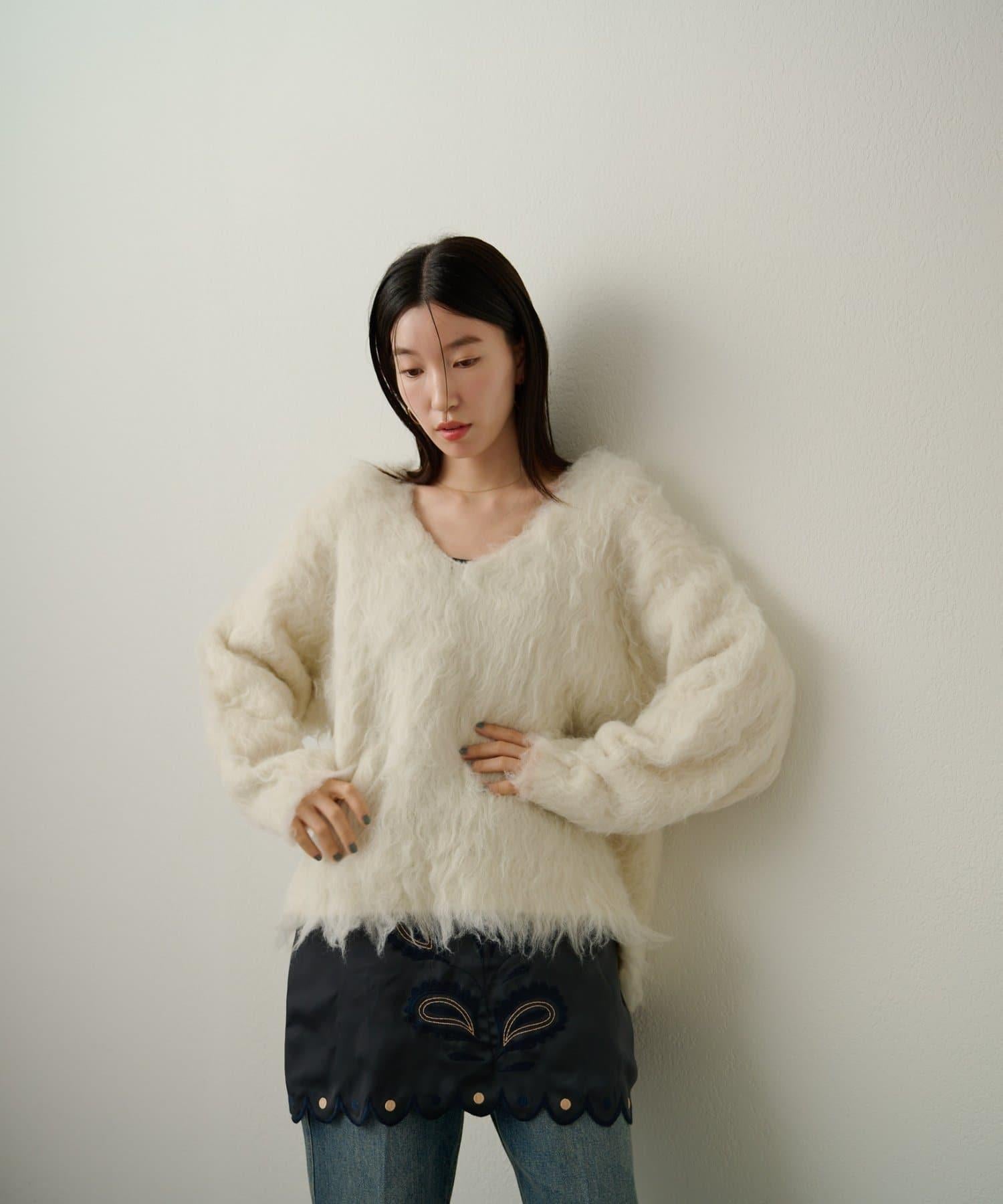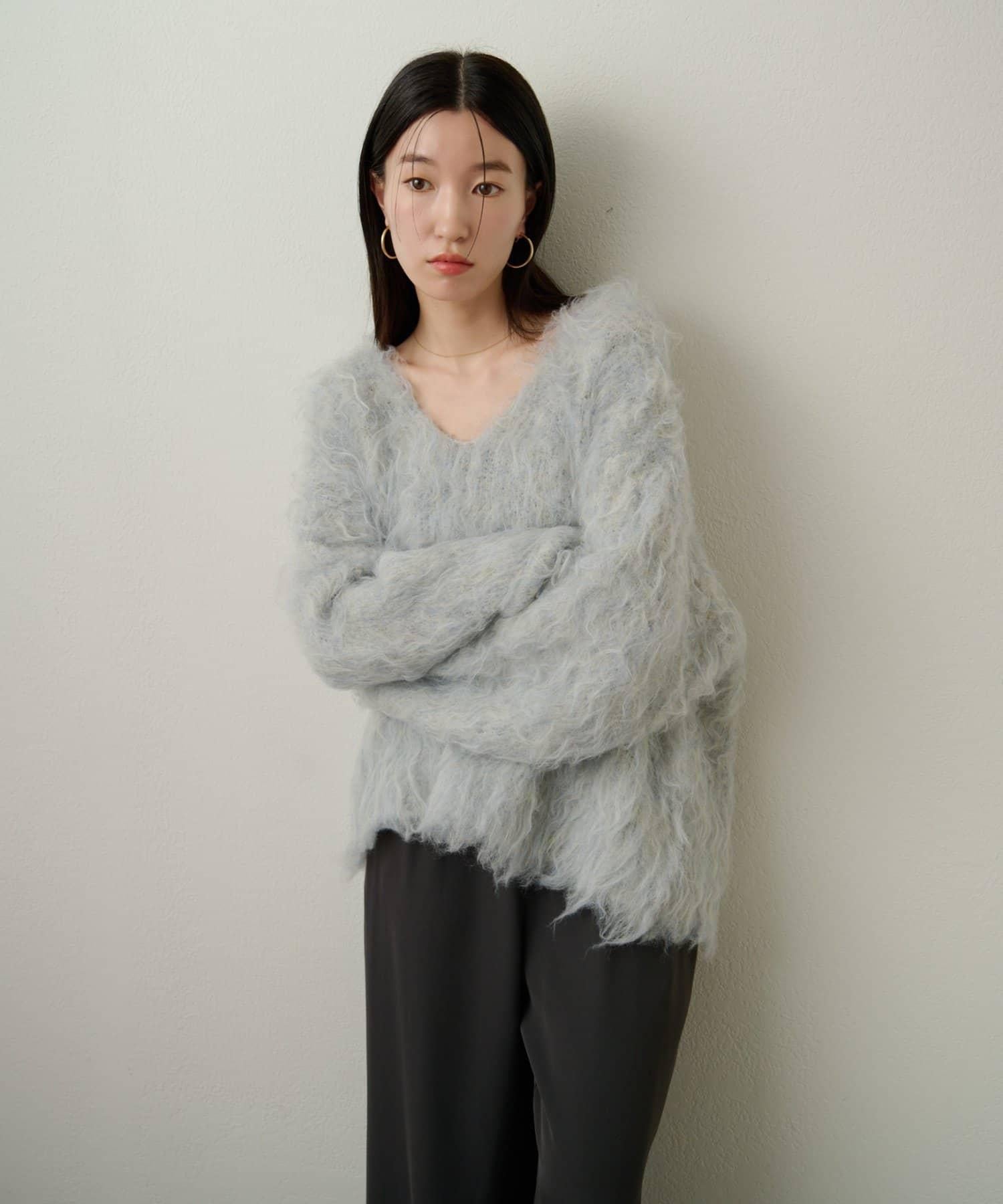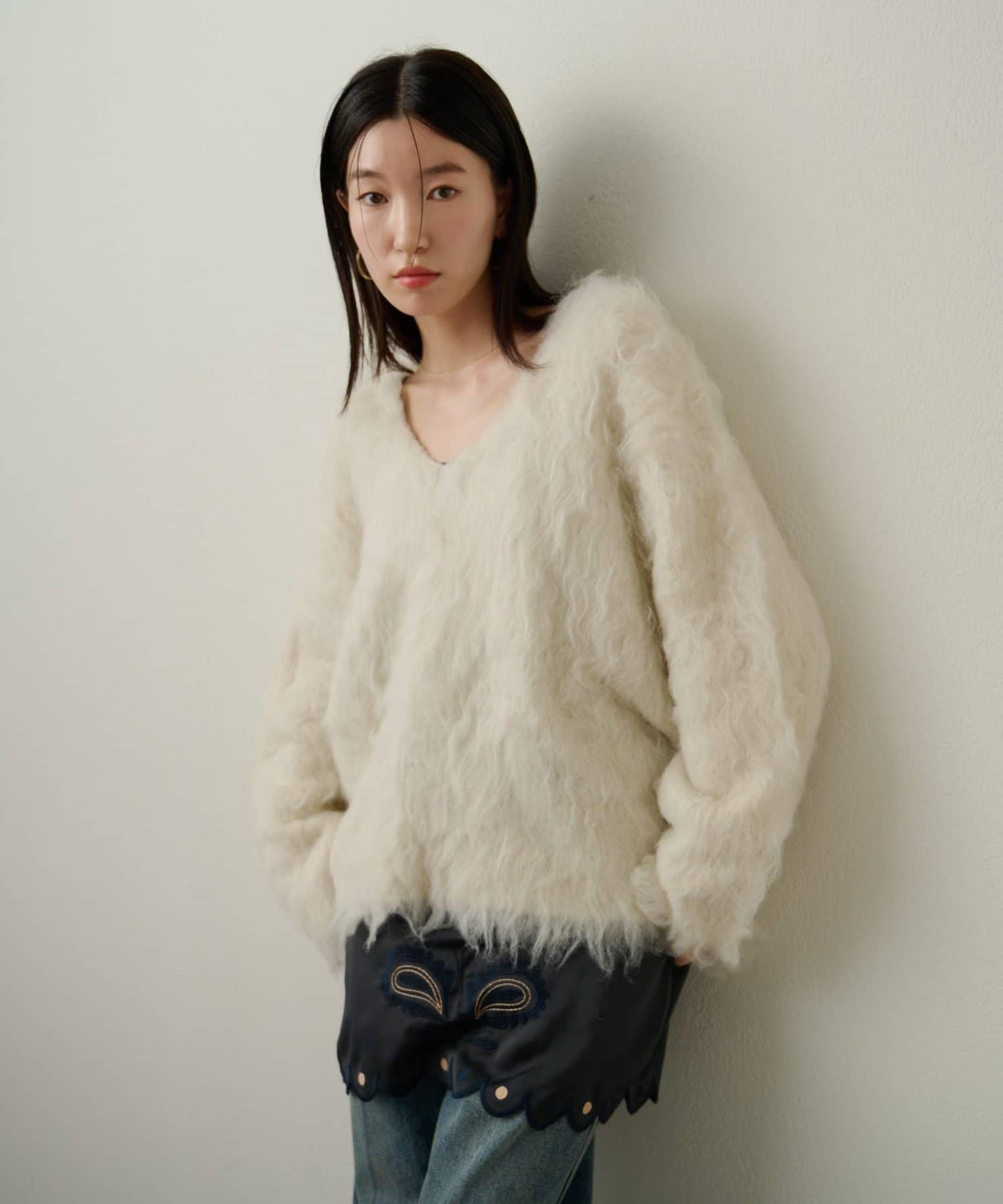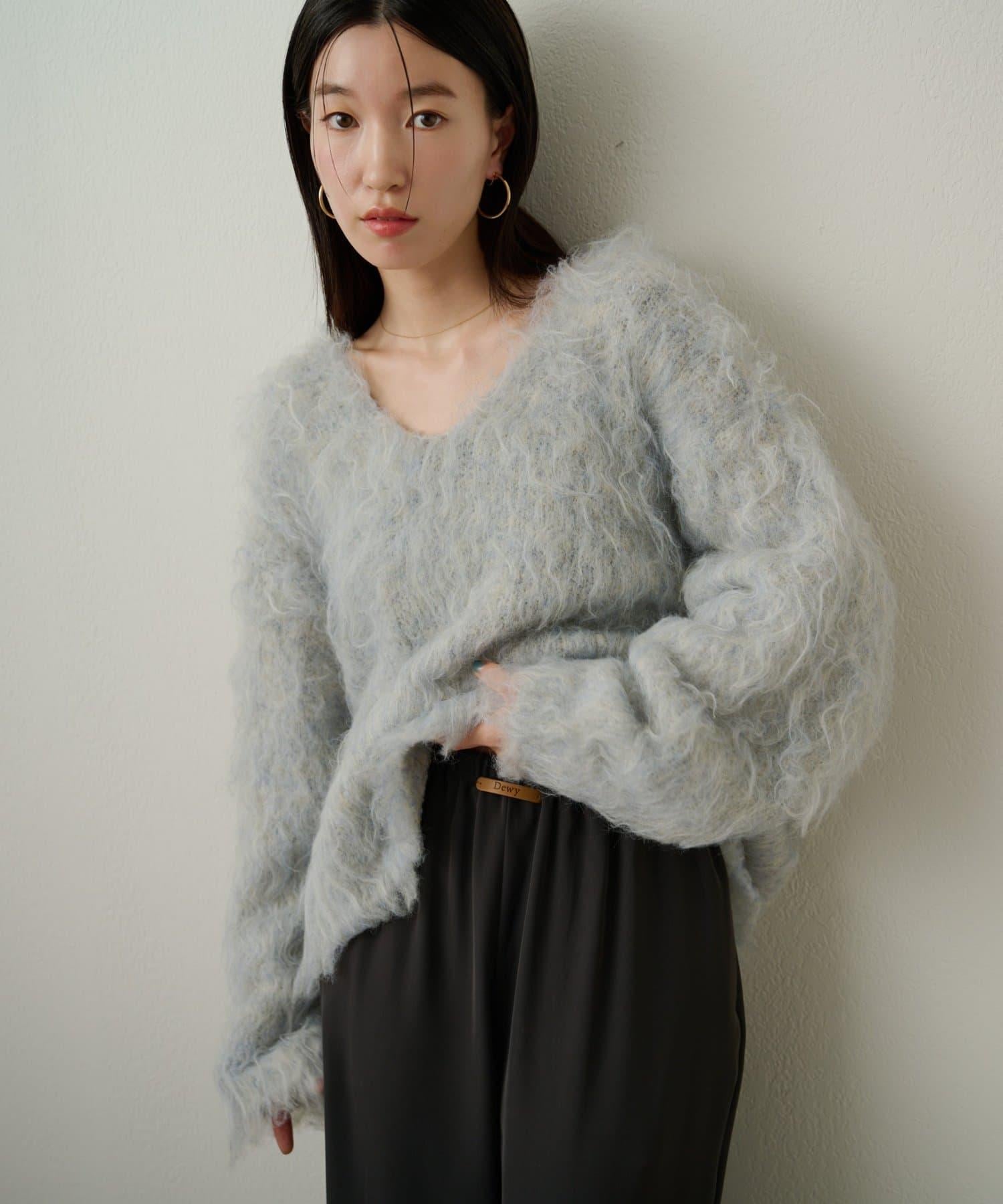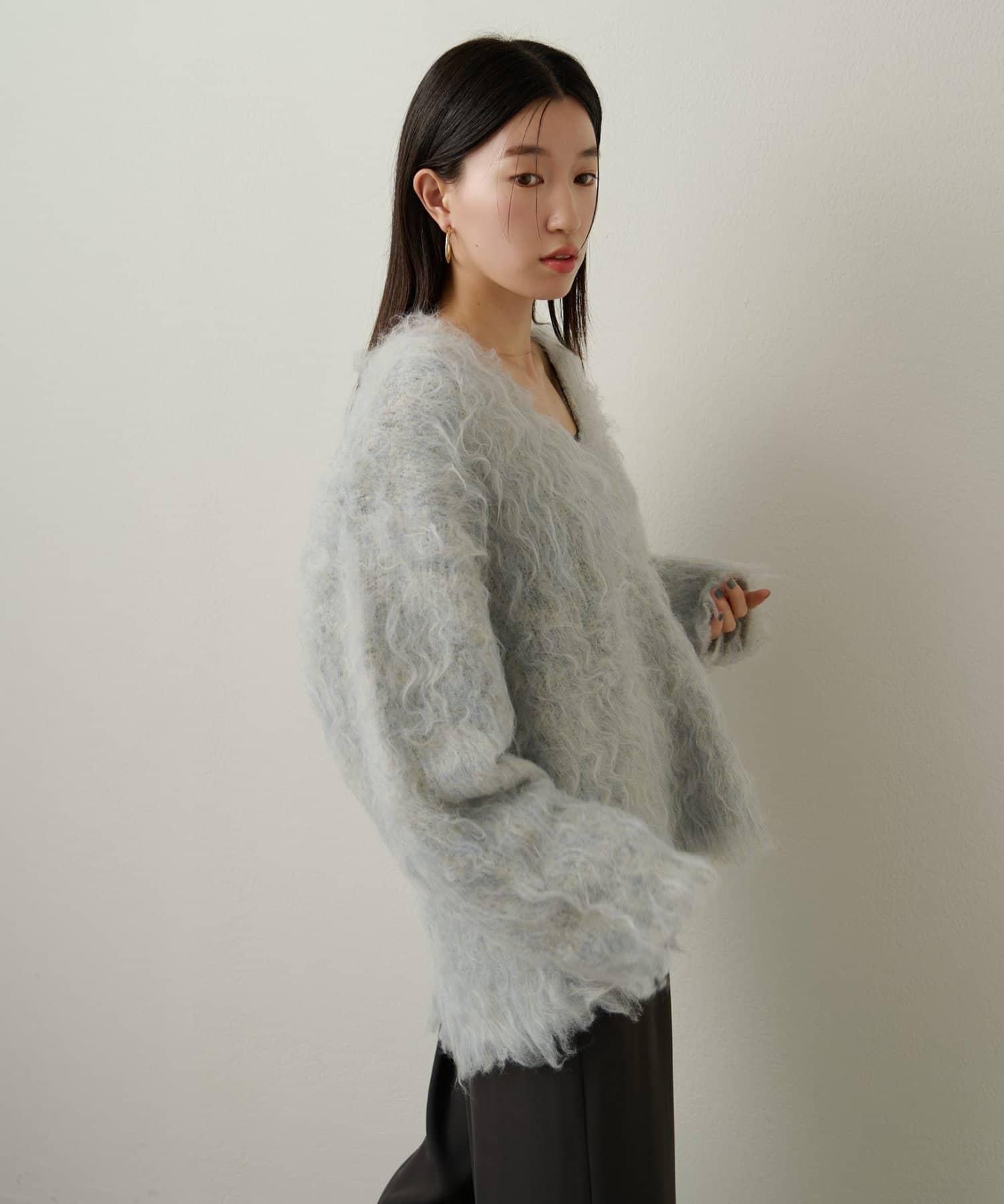 凸起的 V 形針織套頭衫,面料蓬鬆宜人。