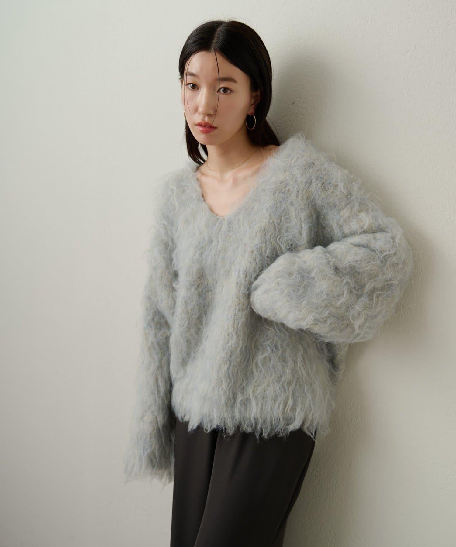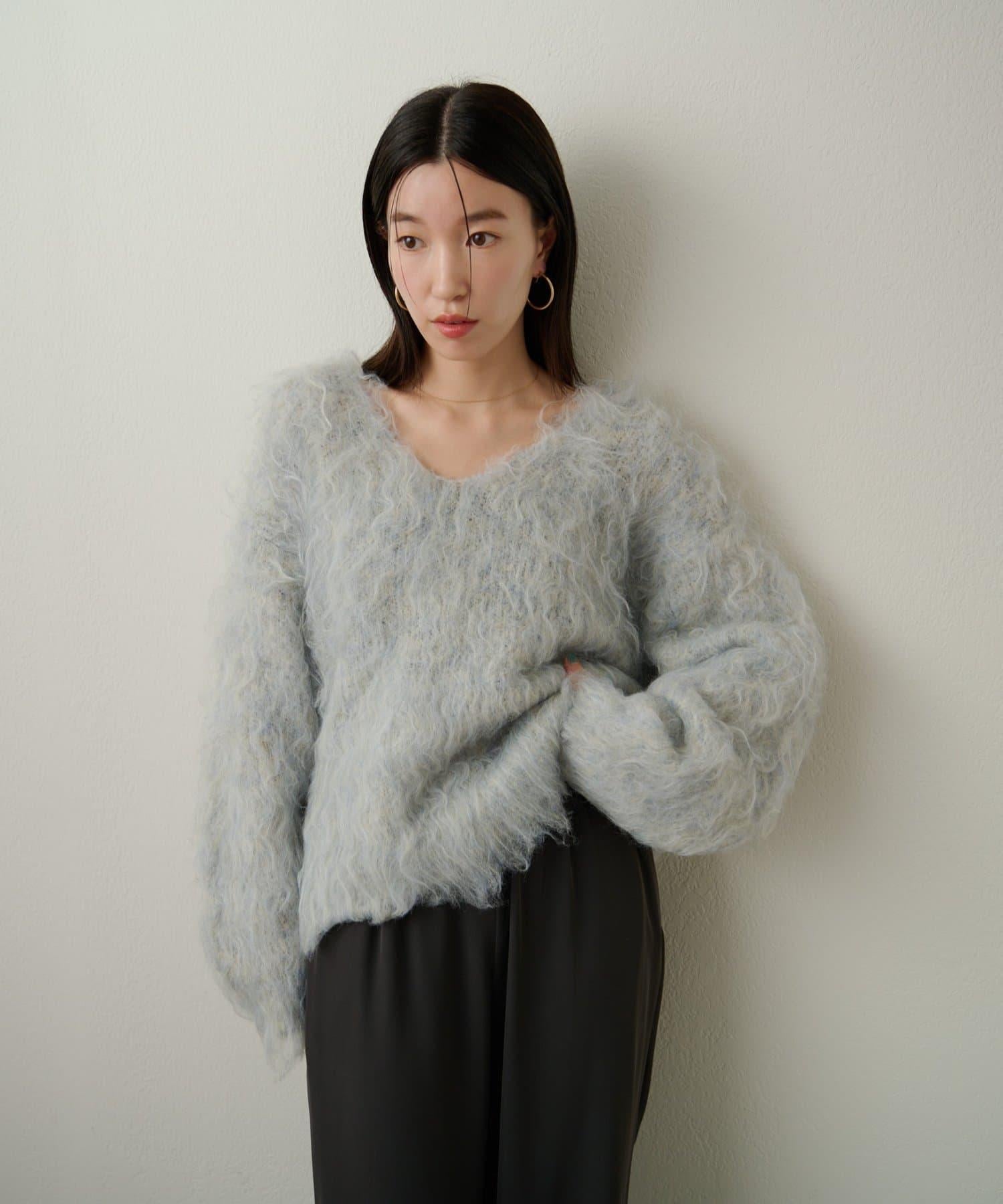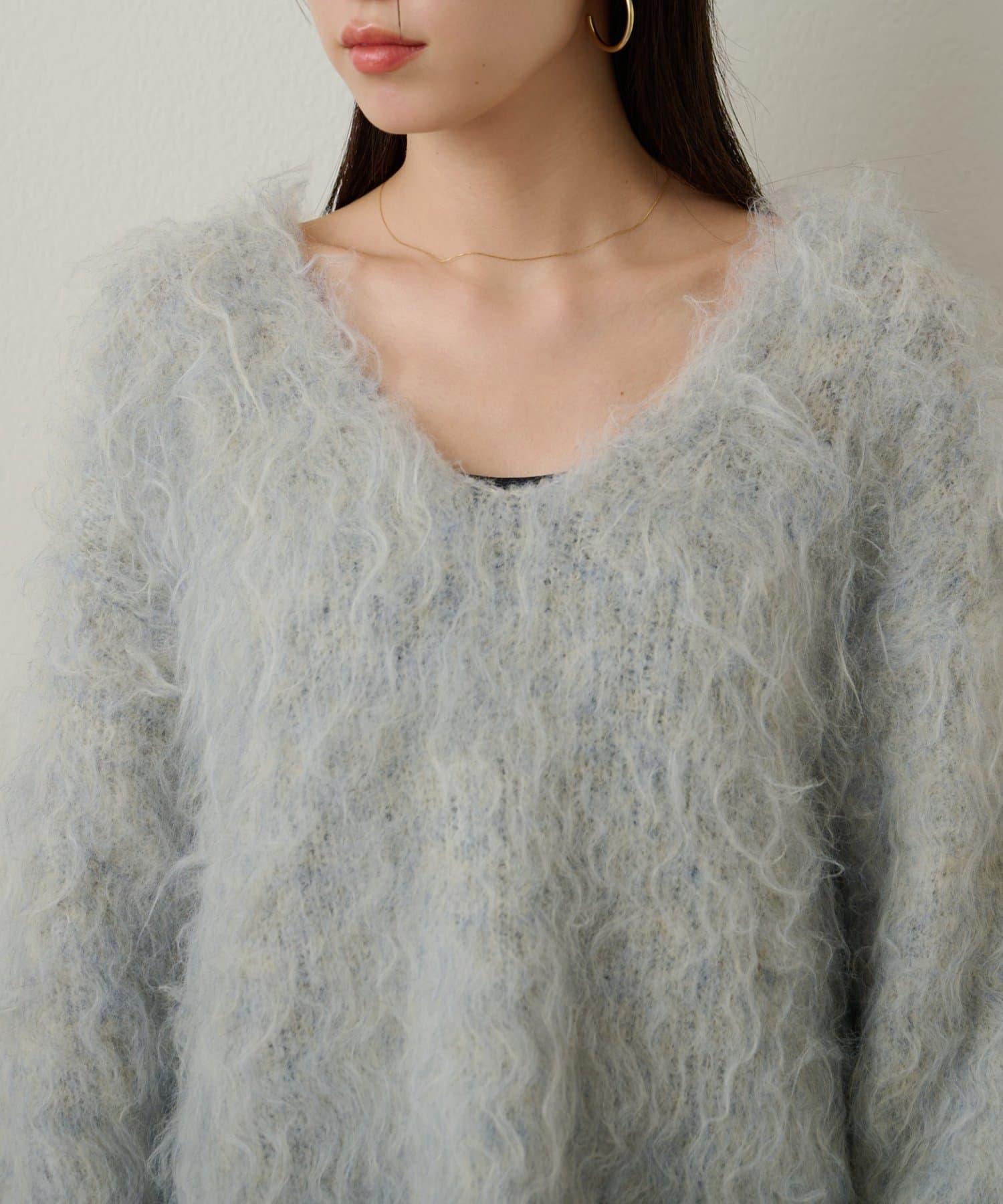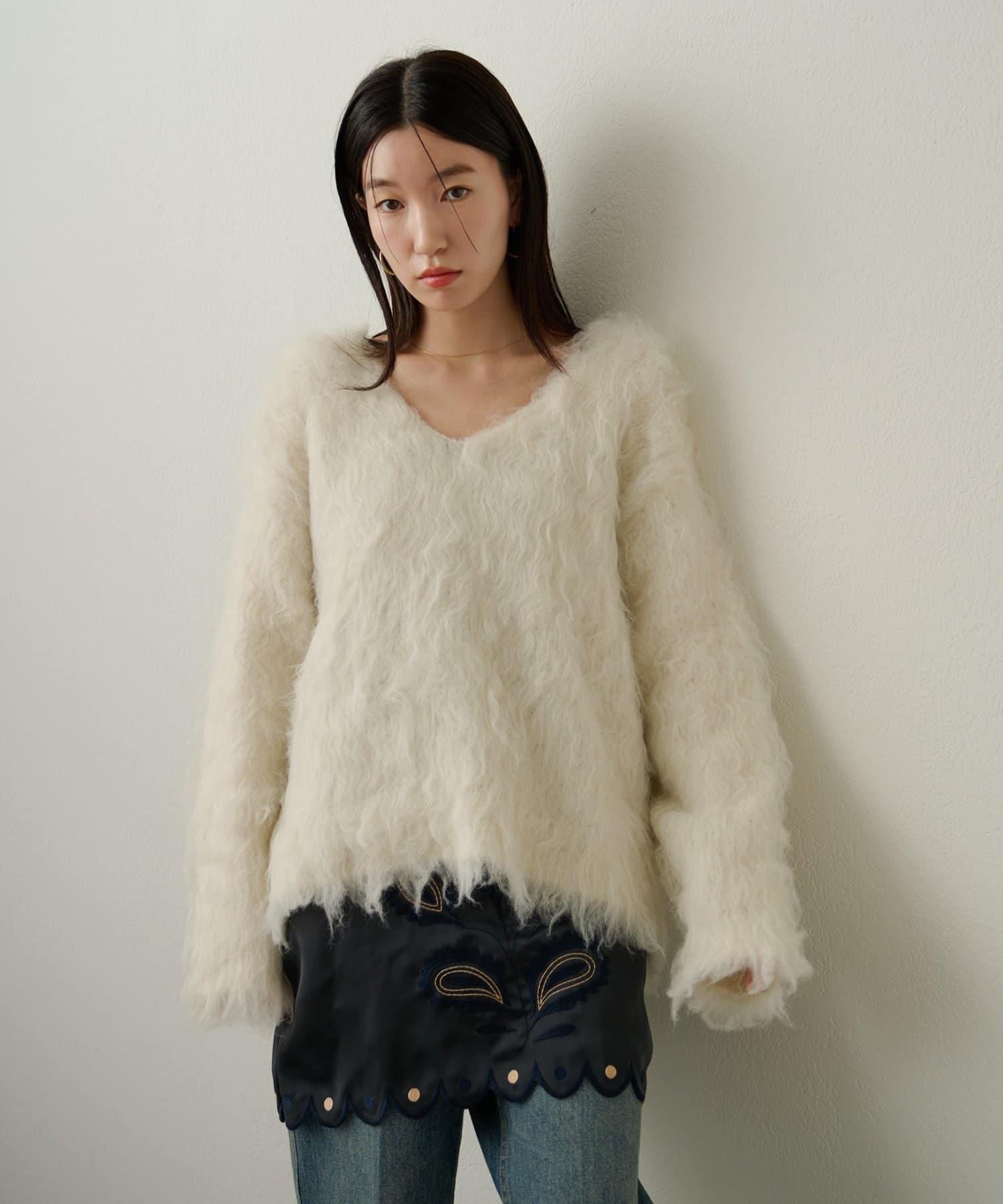 凸起的 V 形針織套頭衫,面料蓬鬆宜人。