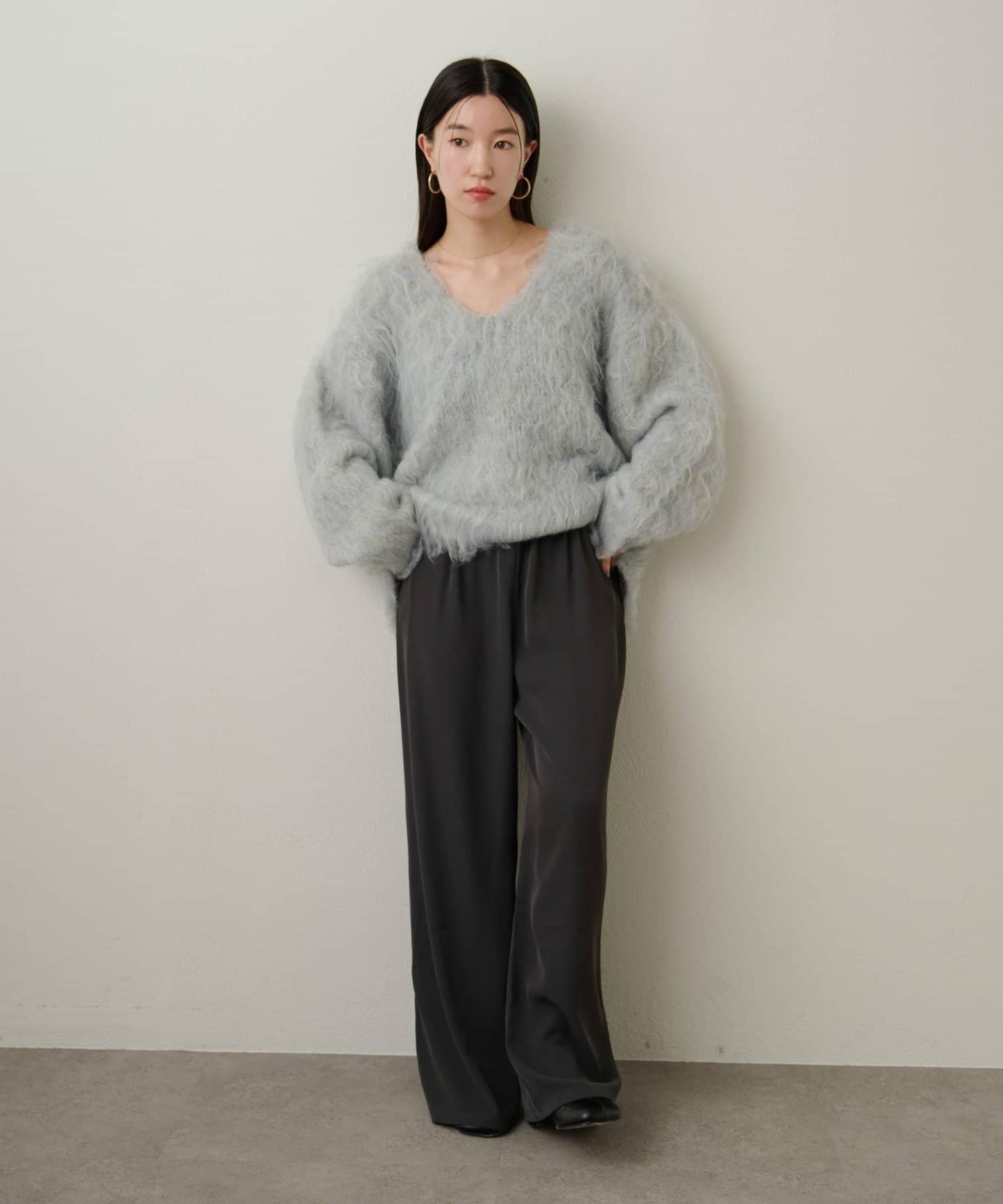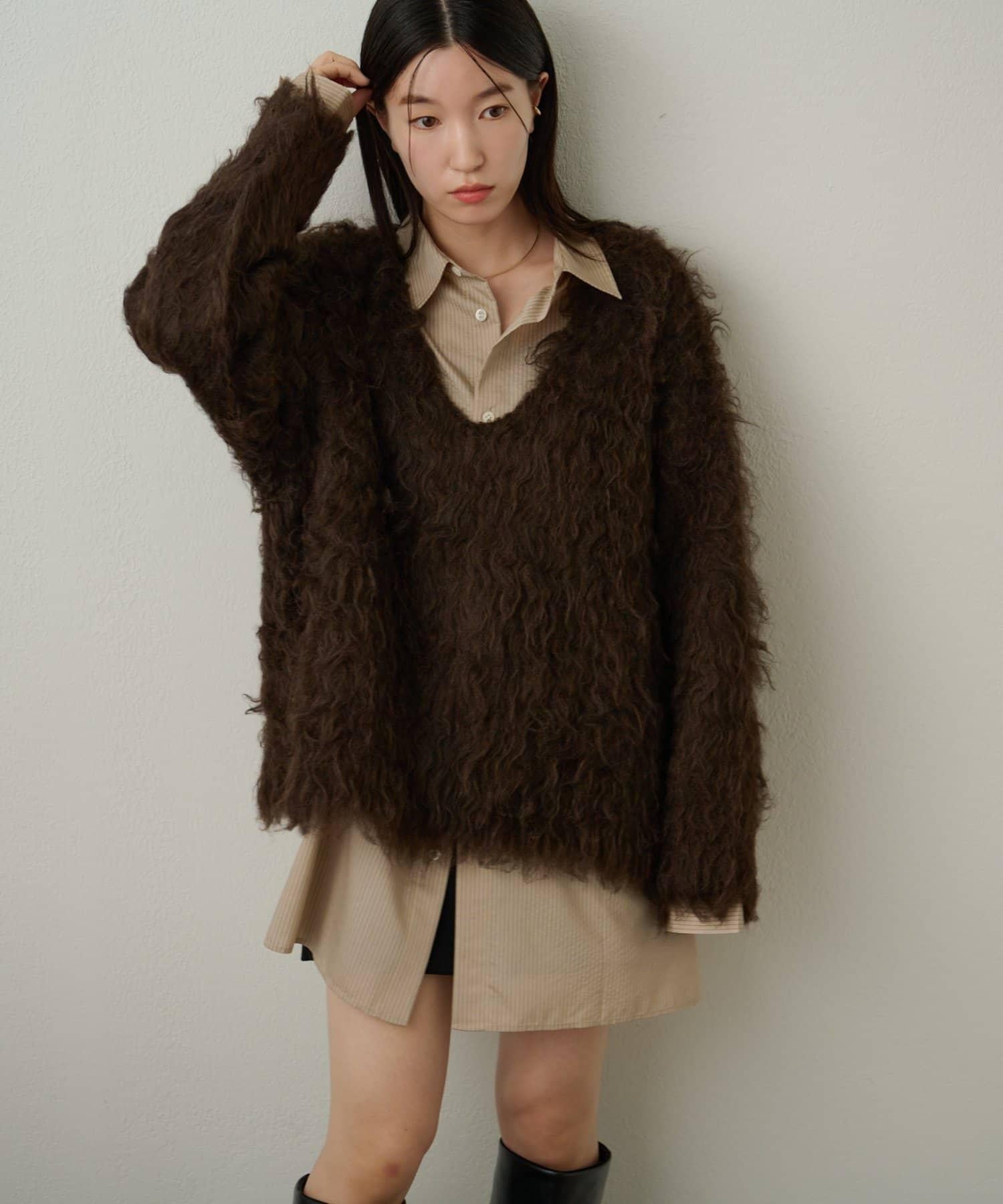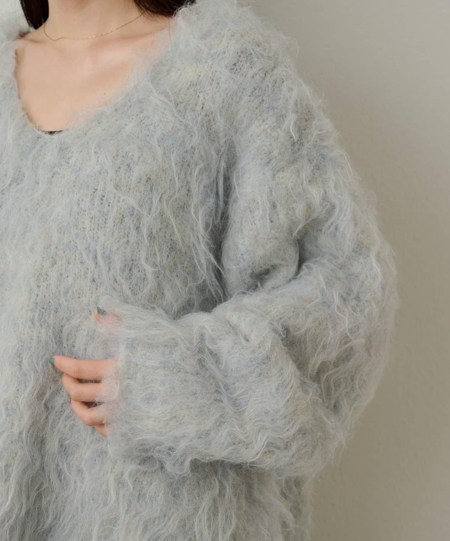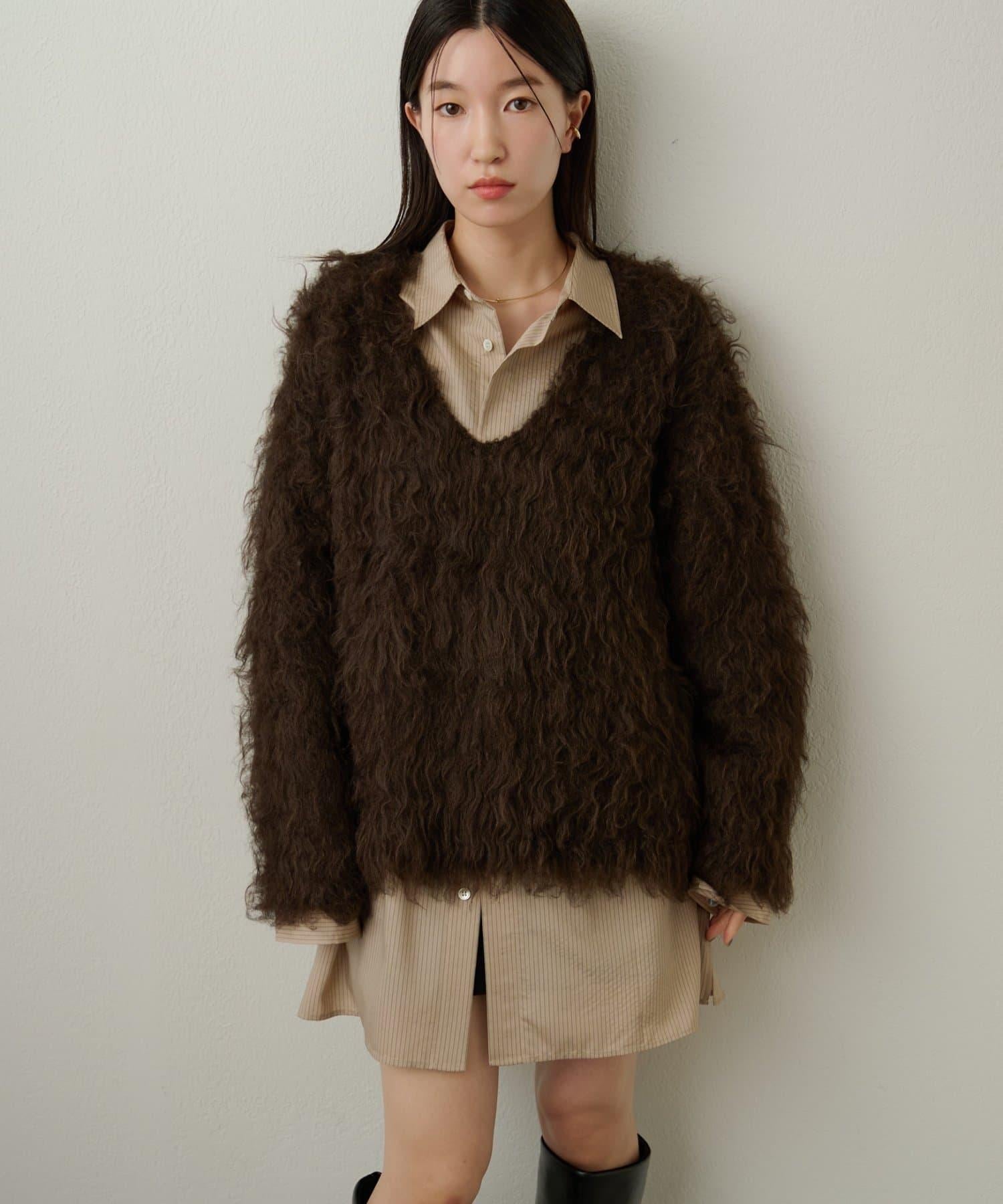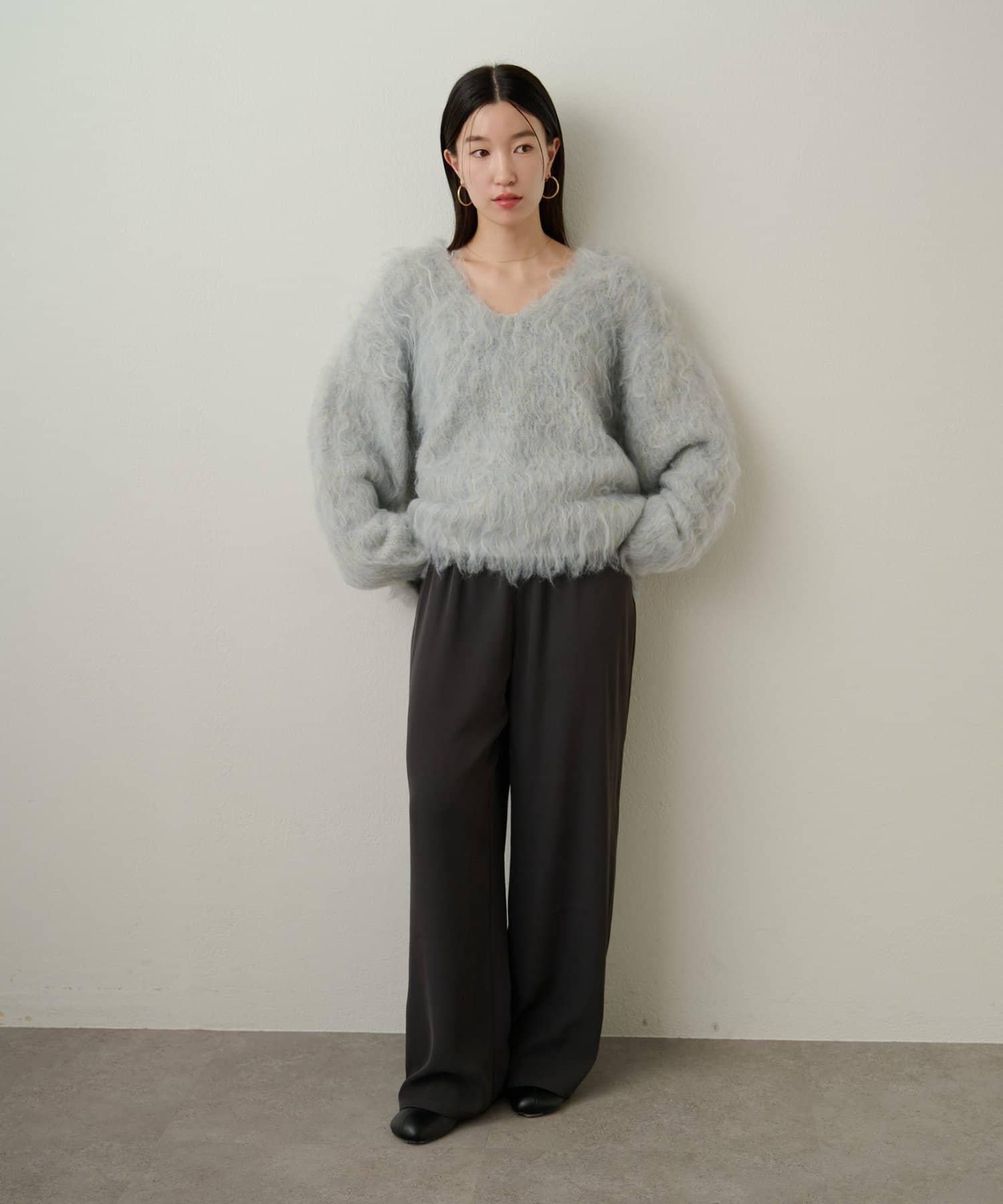 凸起的 V 形針織套頭衫,面料蓬鬆宜人。