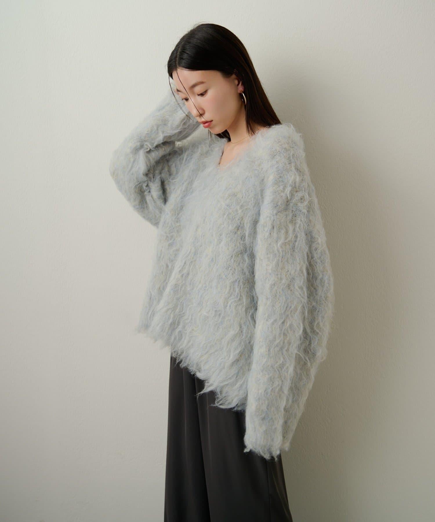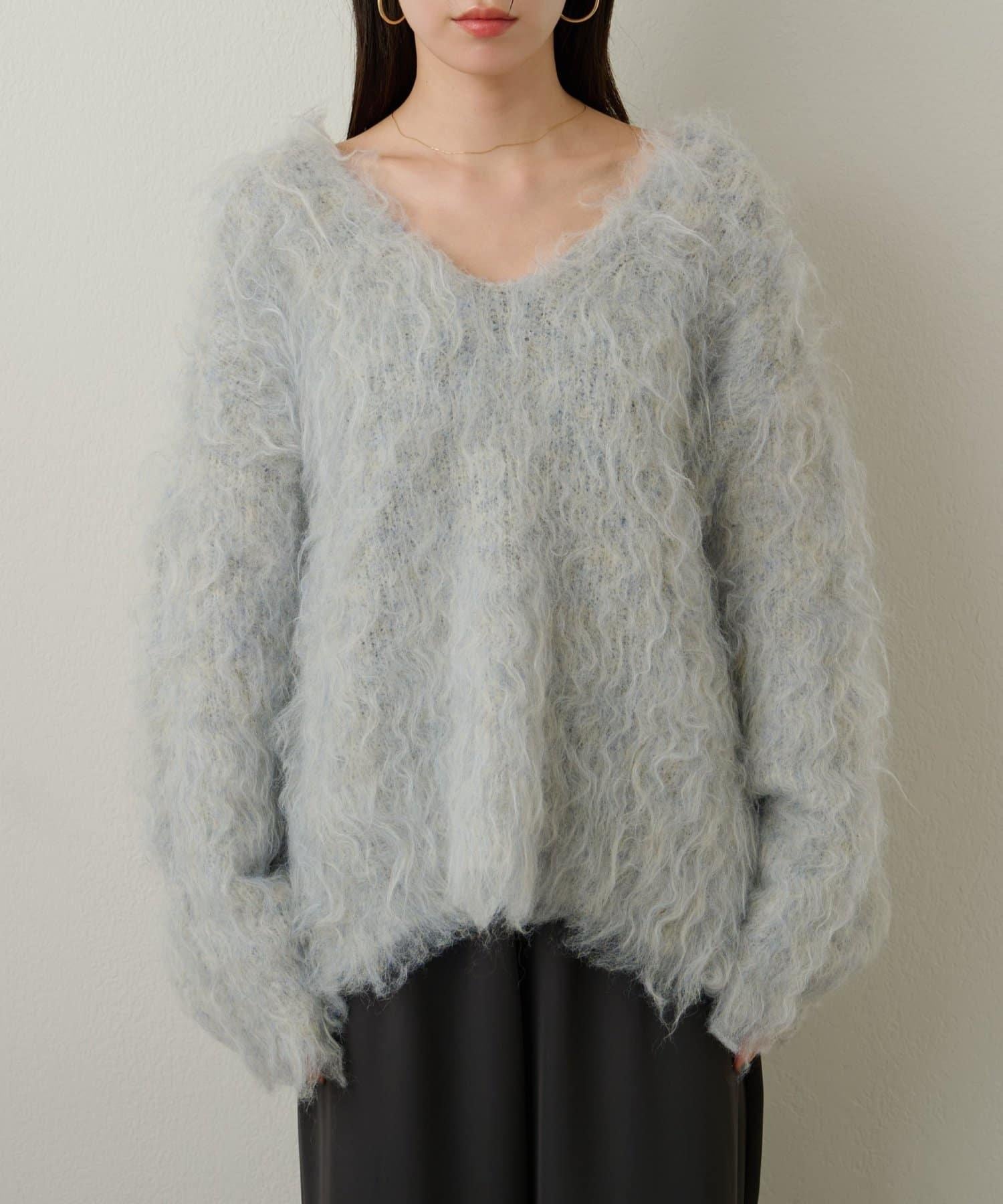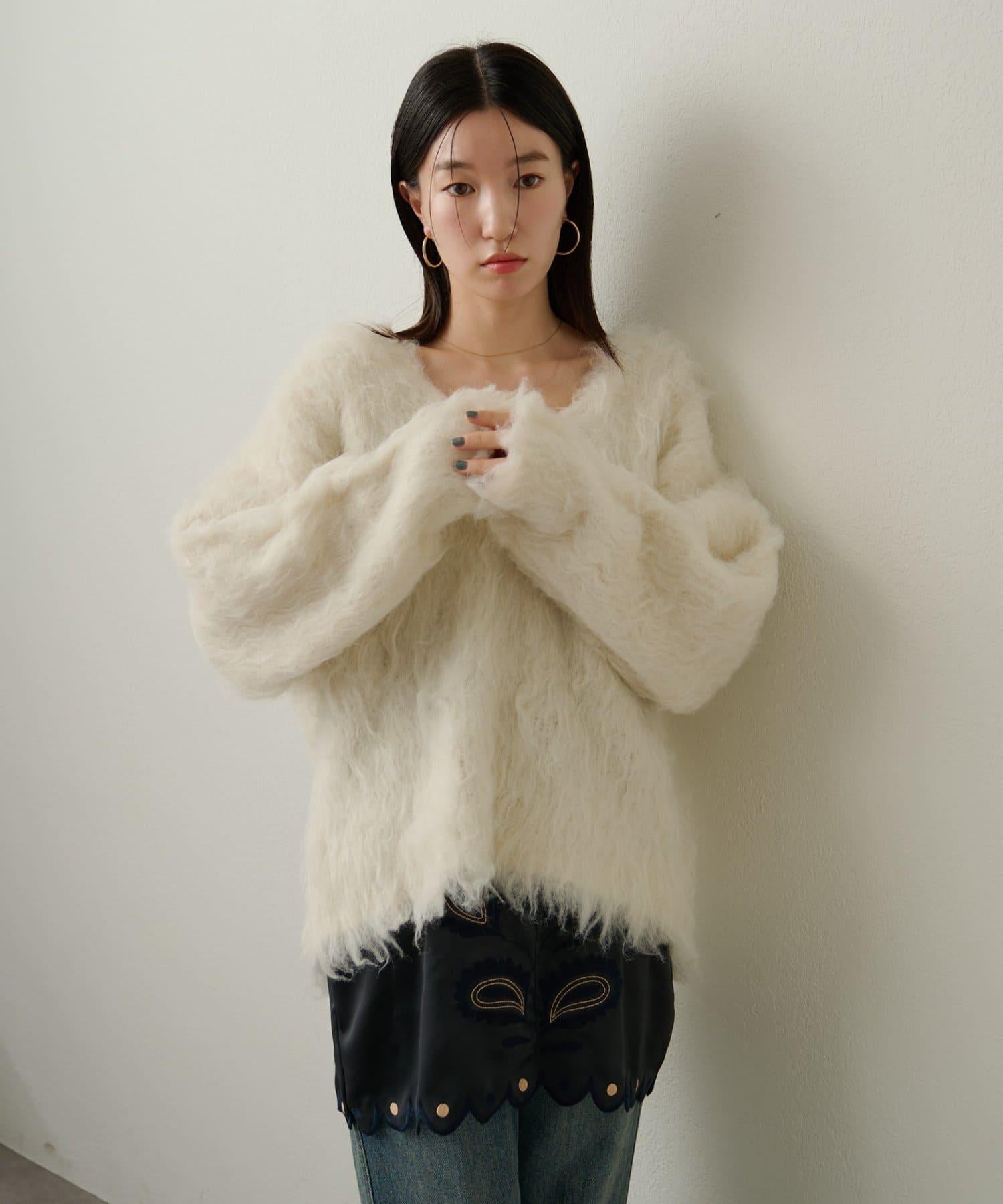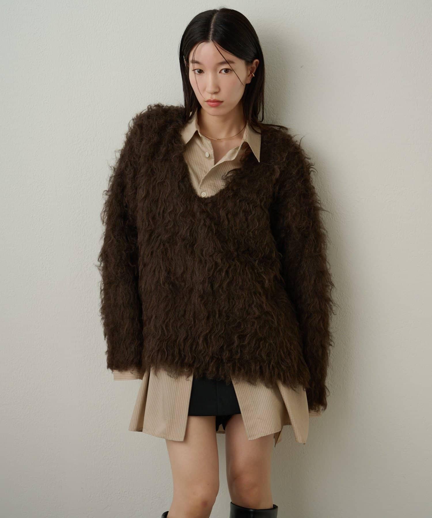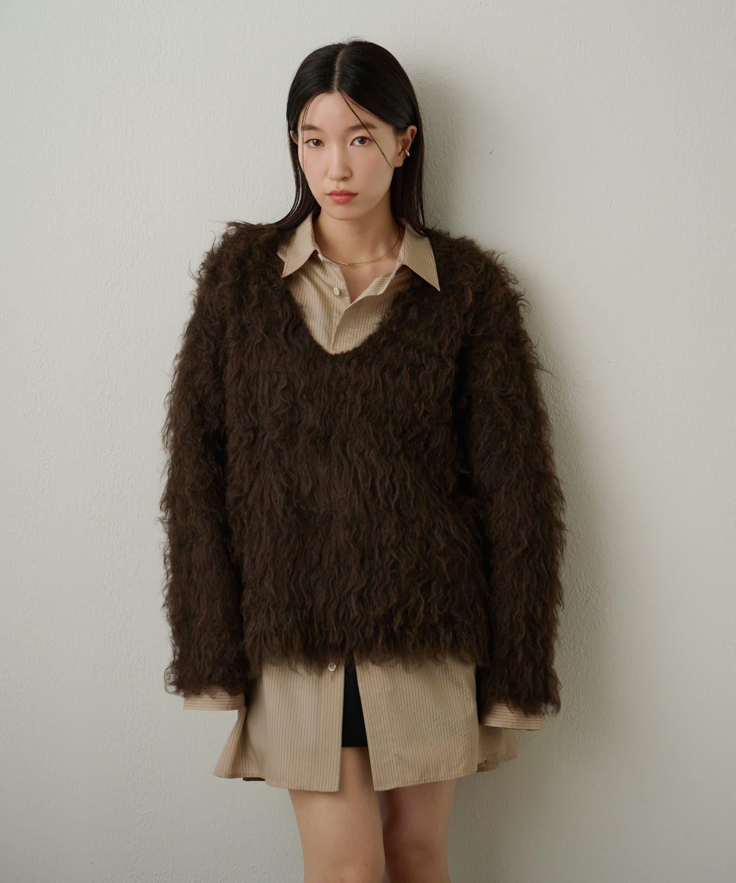 凸起的 V 形針織套頭衫,面料蓬鬆宜人。
