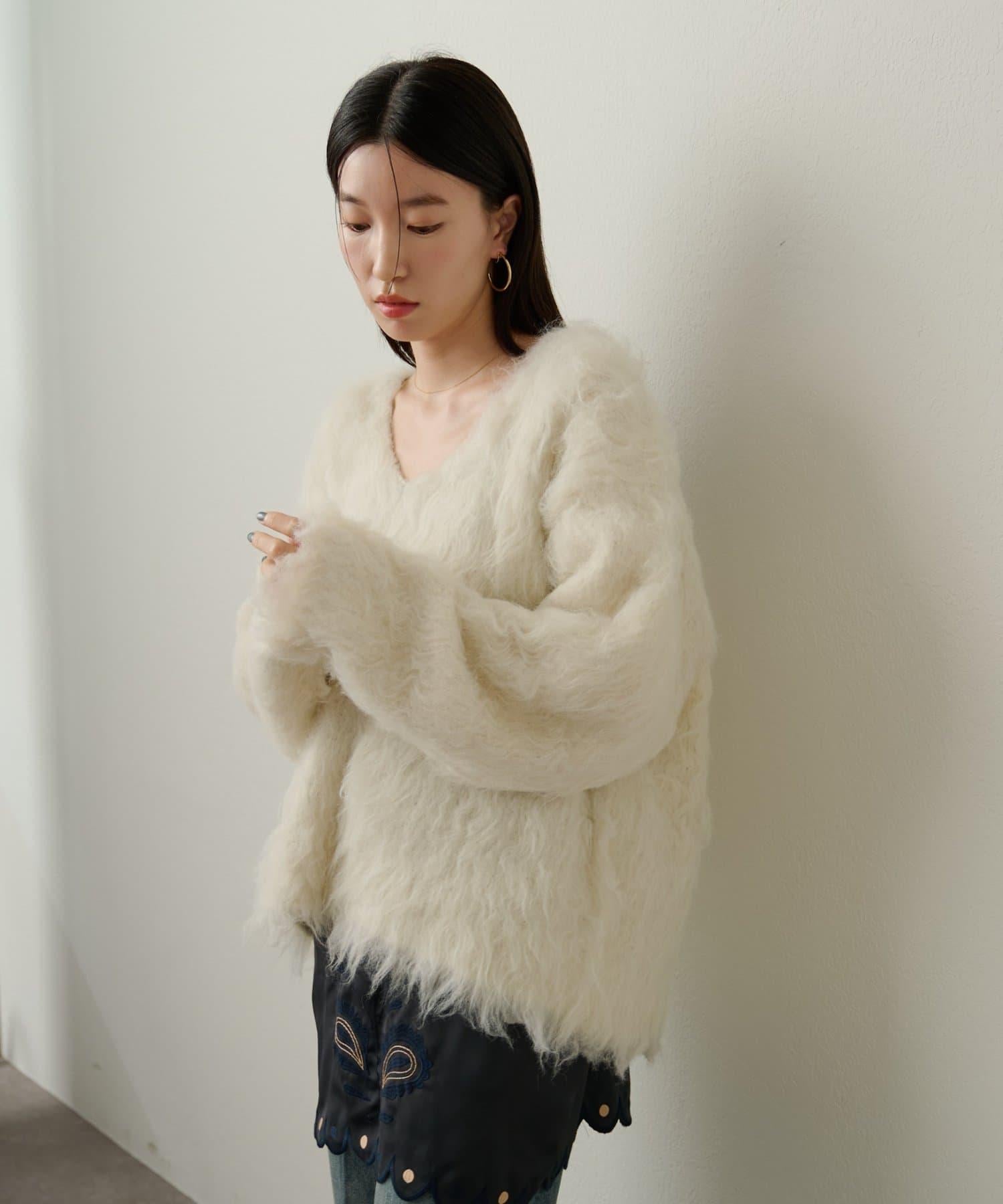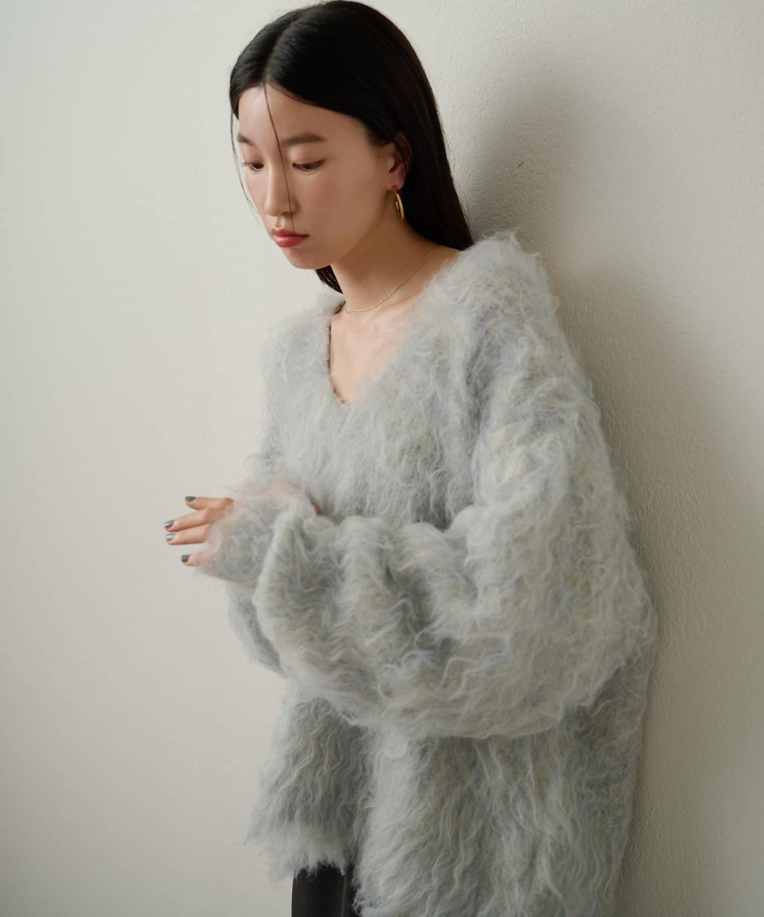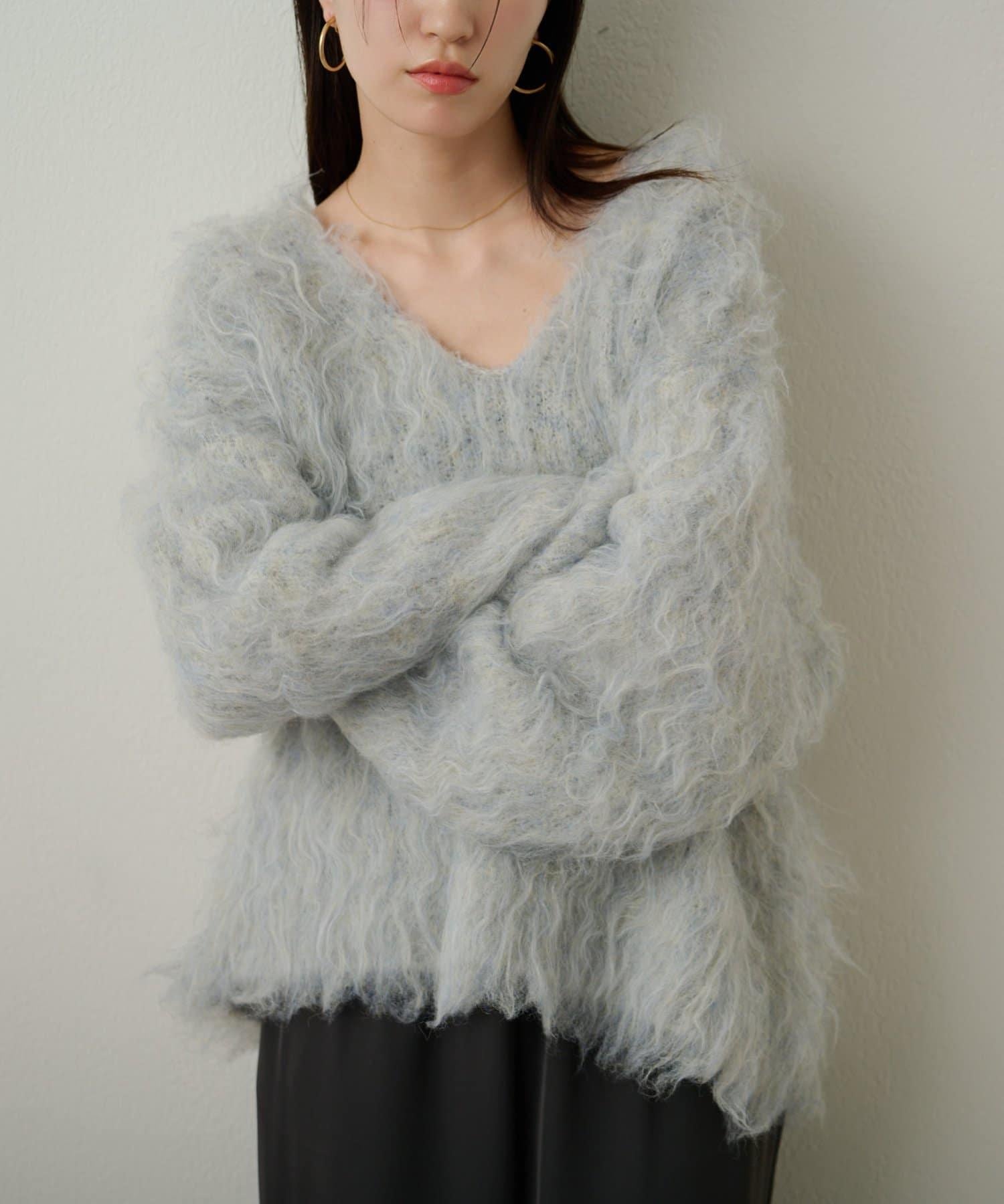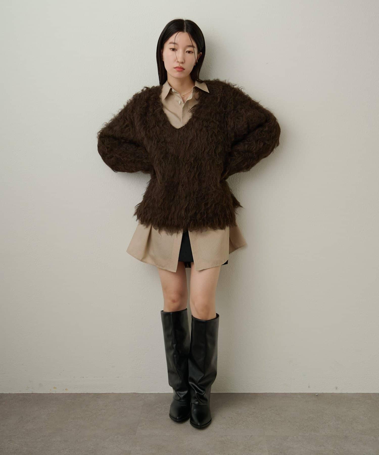 凸起的 V 形針織套頭衫,面料蓬鬆宜人。