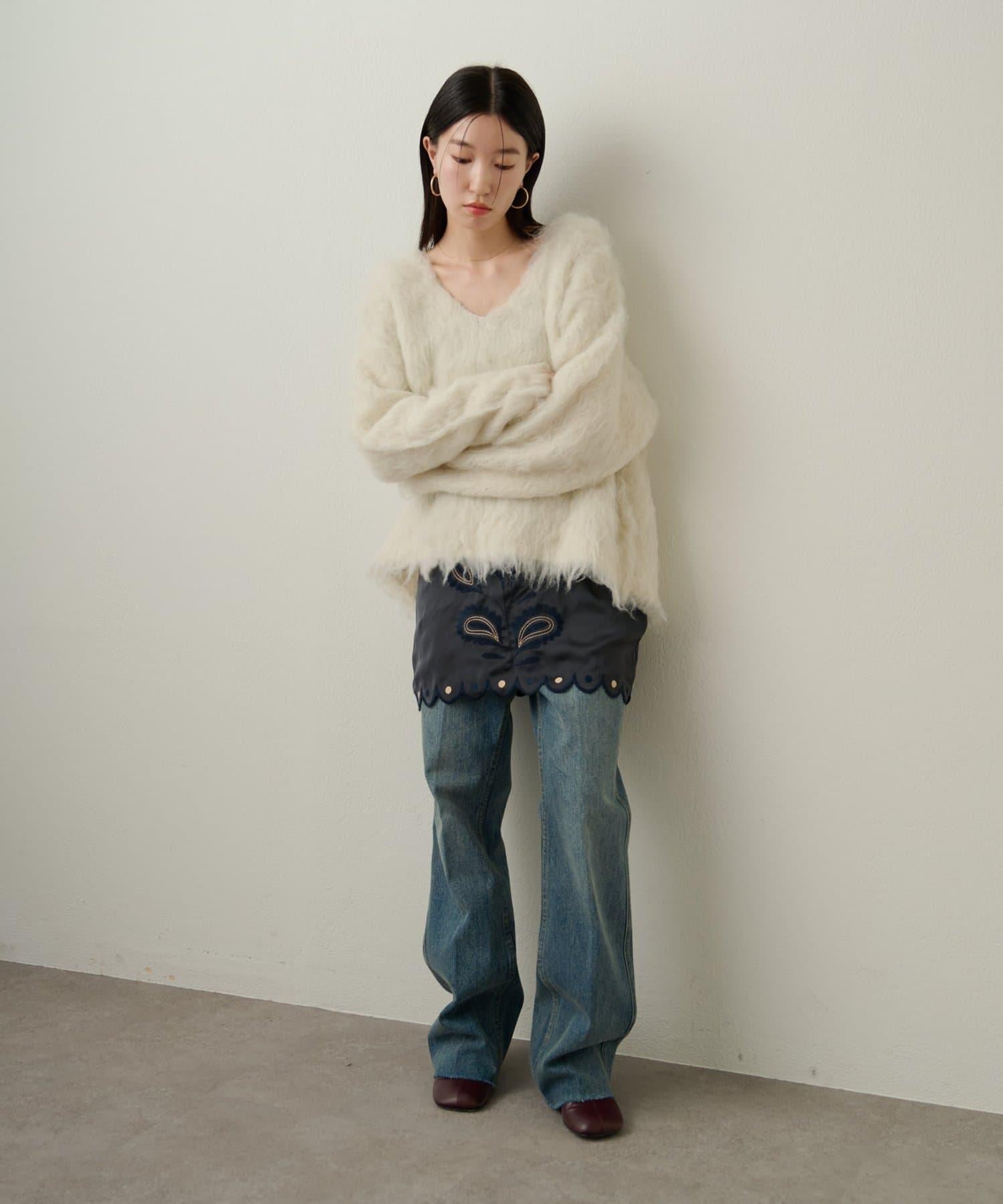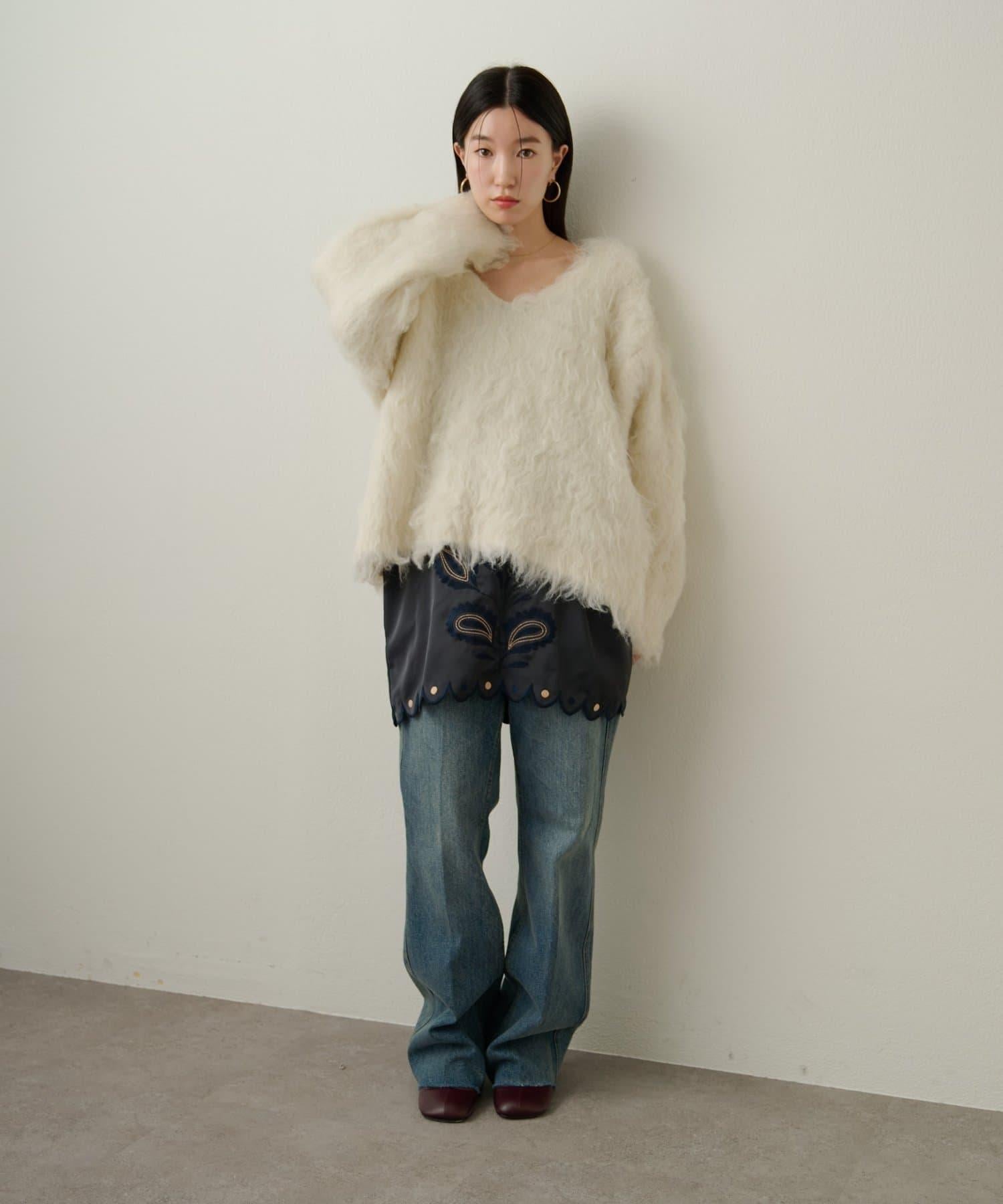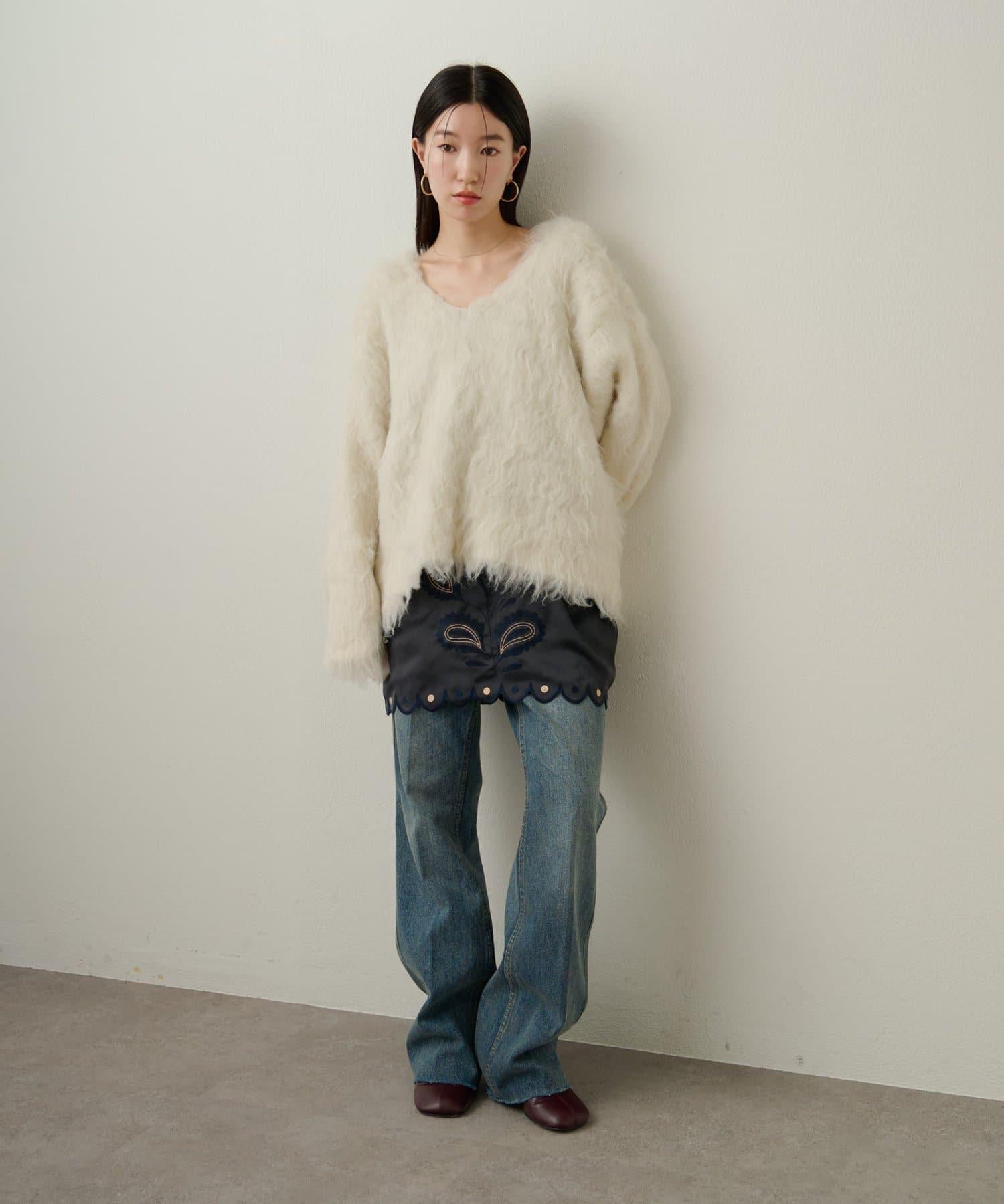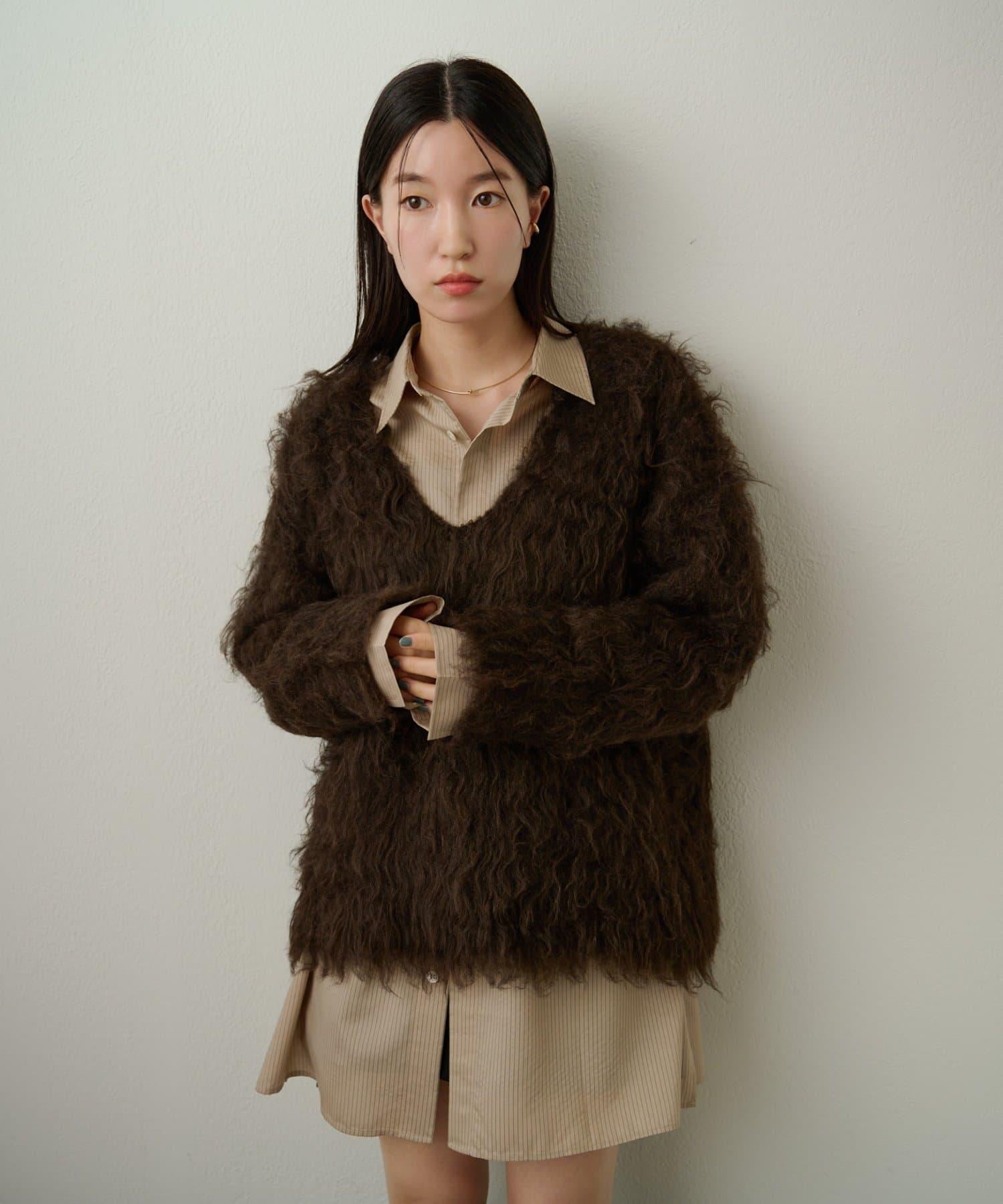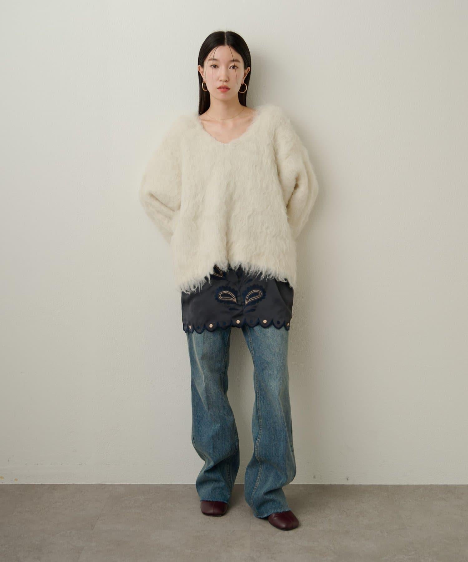 凸起的 V 形針織套頭衫,面料蓬鬆宜人。