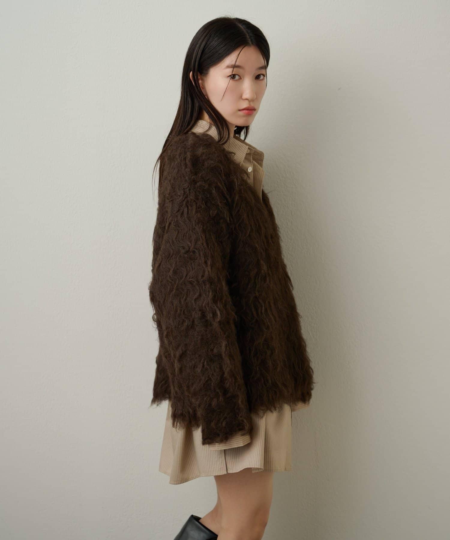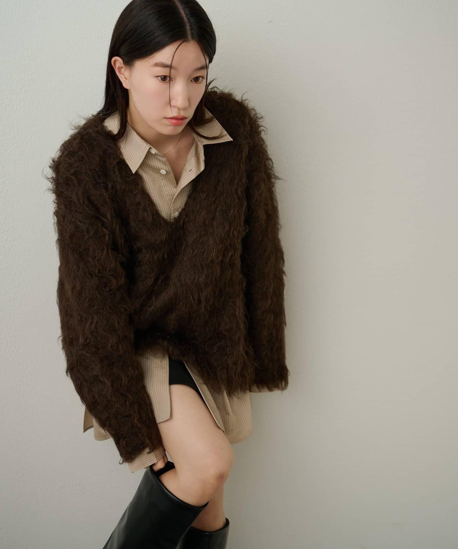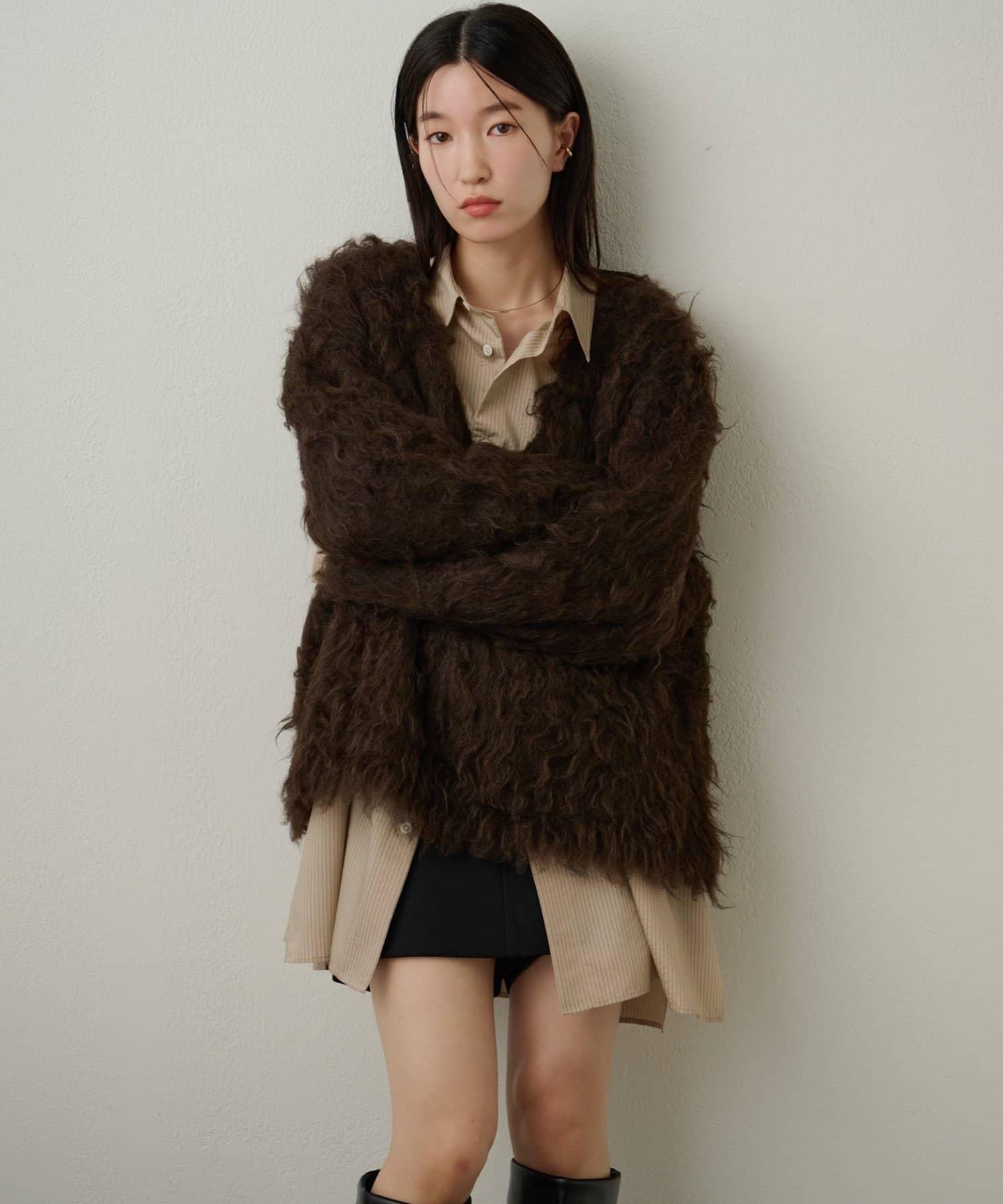 針織物體積堅實,毛茸茸的質感體現了服裝的外觀和手感,給人一種細緻入微的感覺。