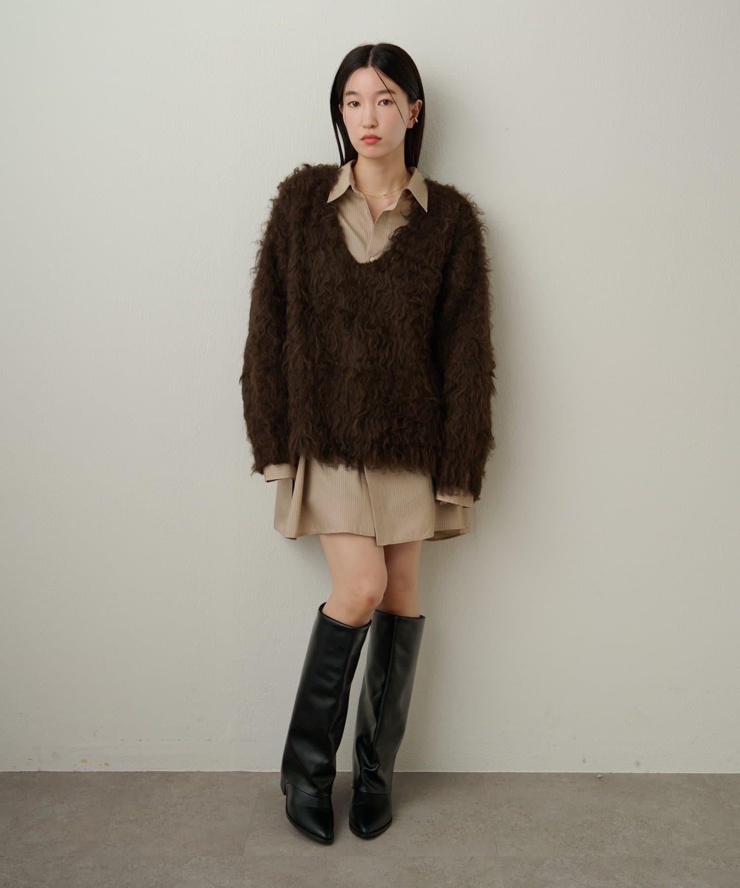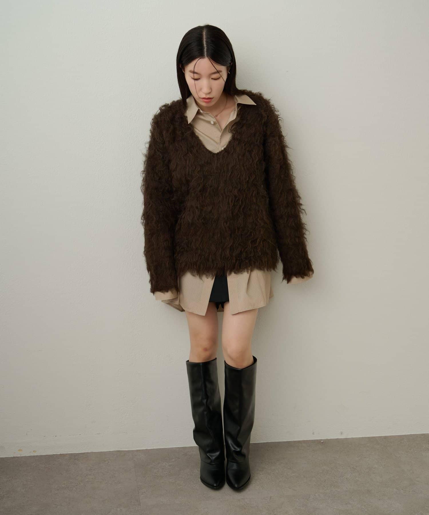 磨毛V領針織套頭衫