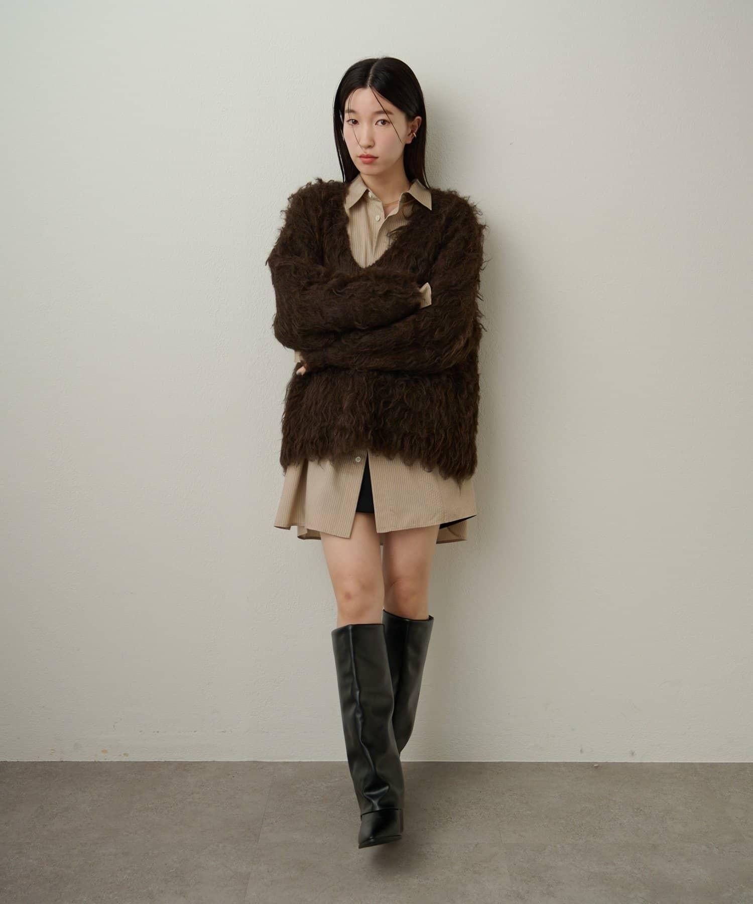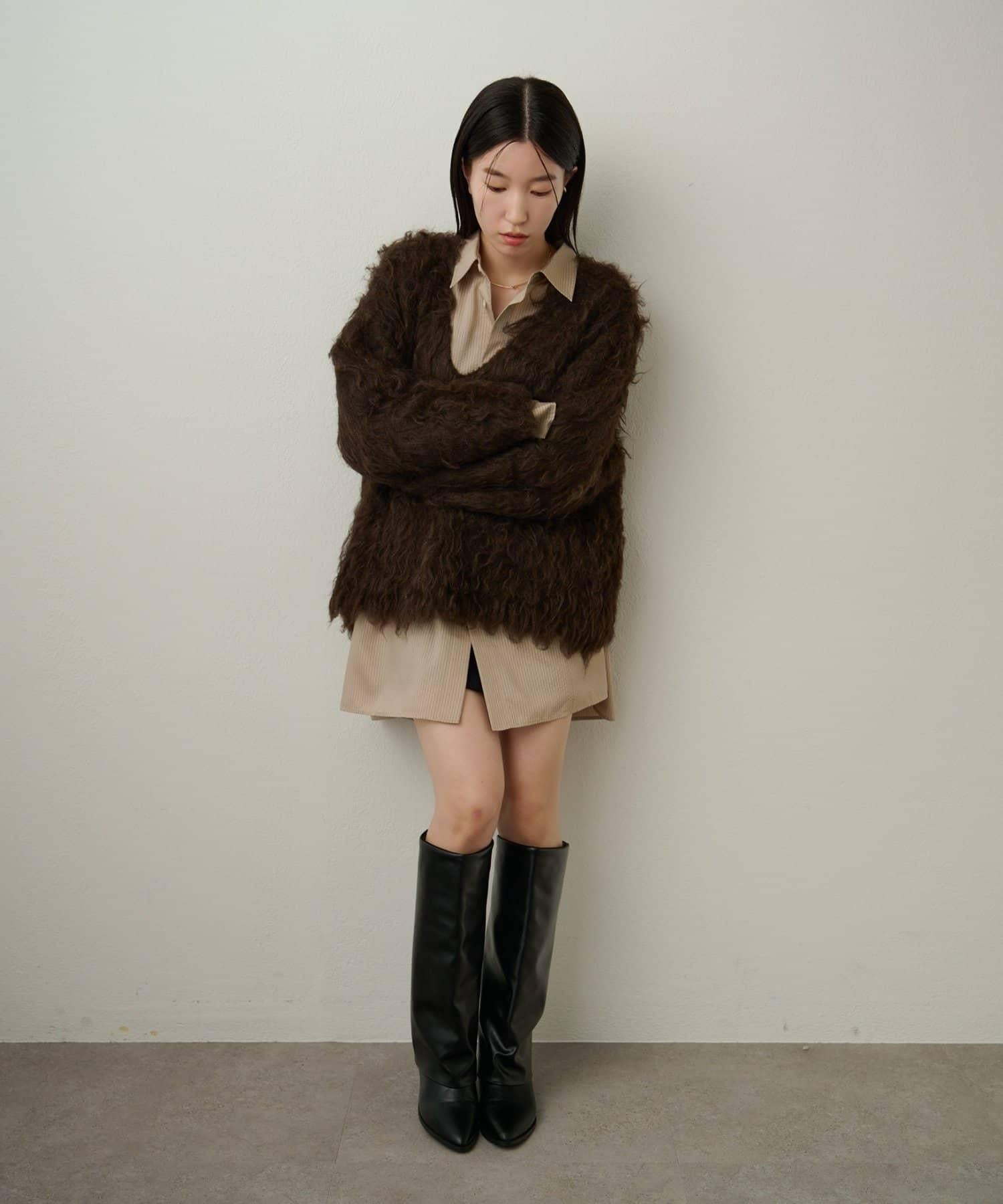 針織面料雖然長毛,但柔軟蓬鬆,保暖不扎手。