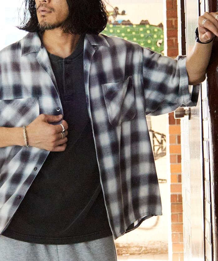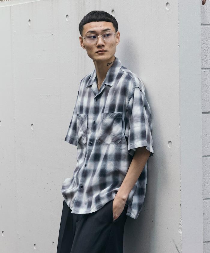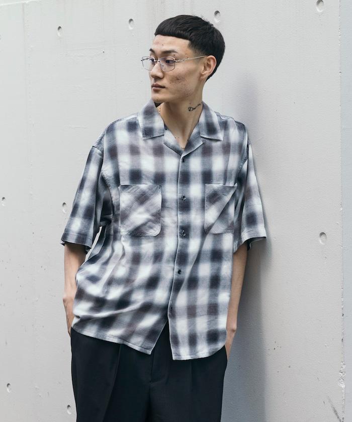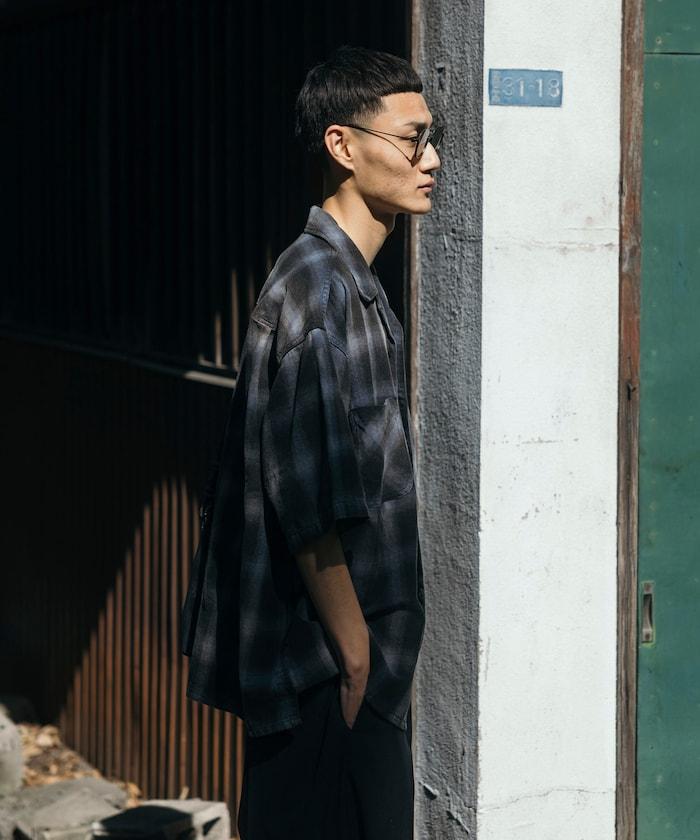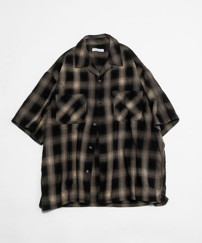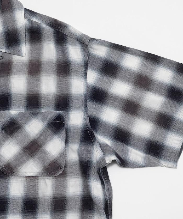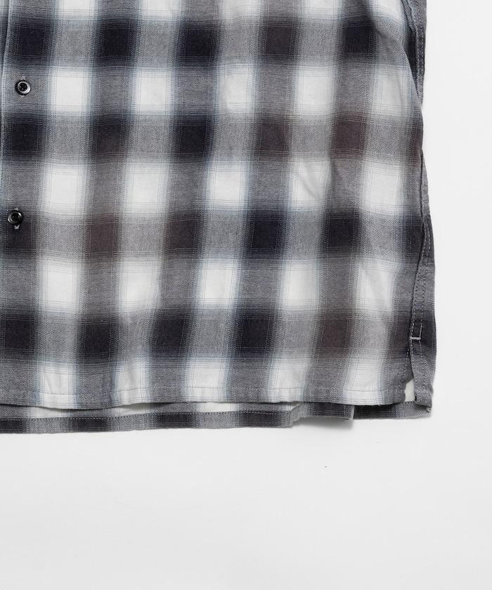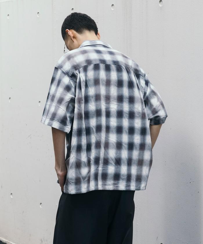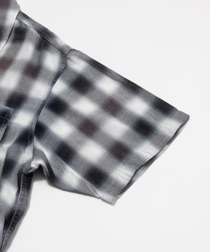 磨邊處理 開領 漸變格子襯衫 短袖