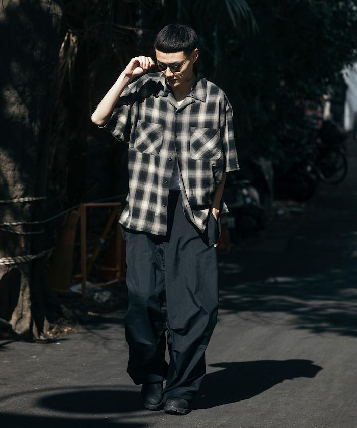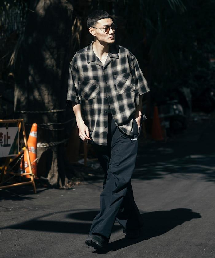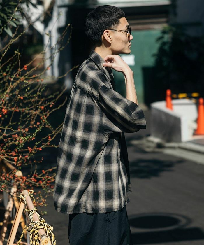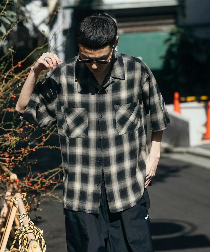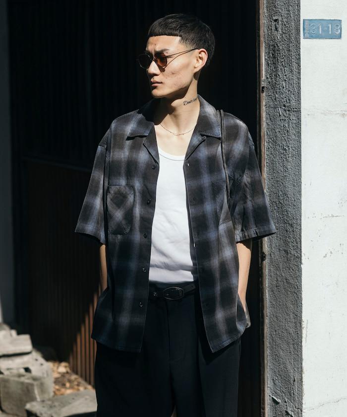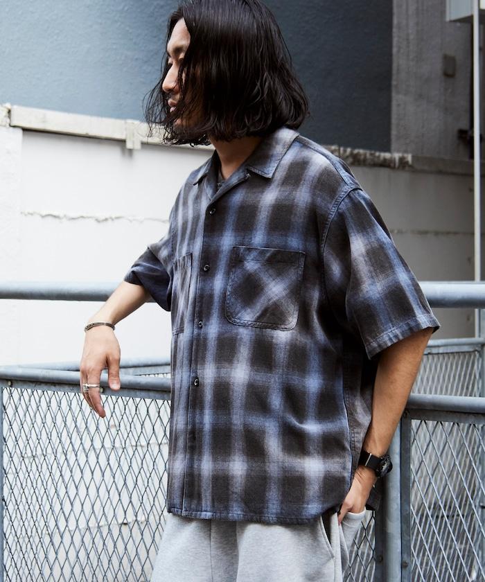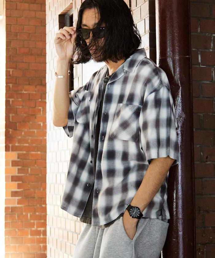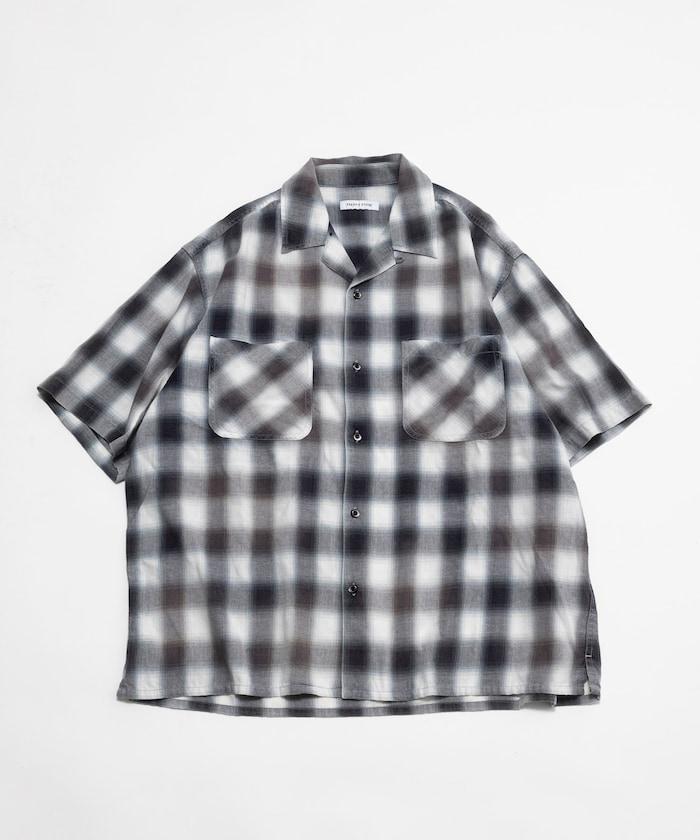磨邊處理 開領 漸變格子襯衫 短袖