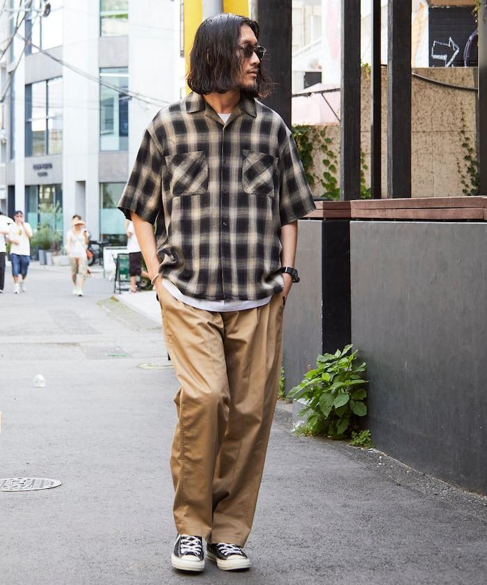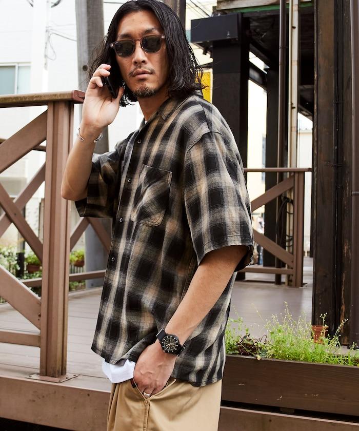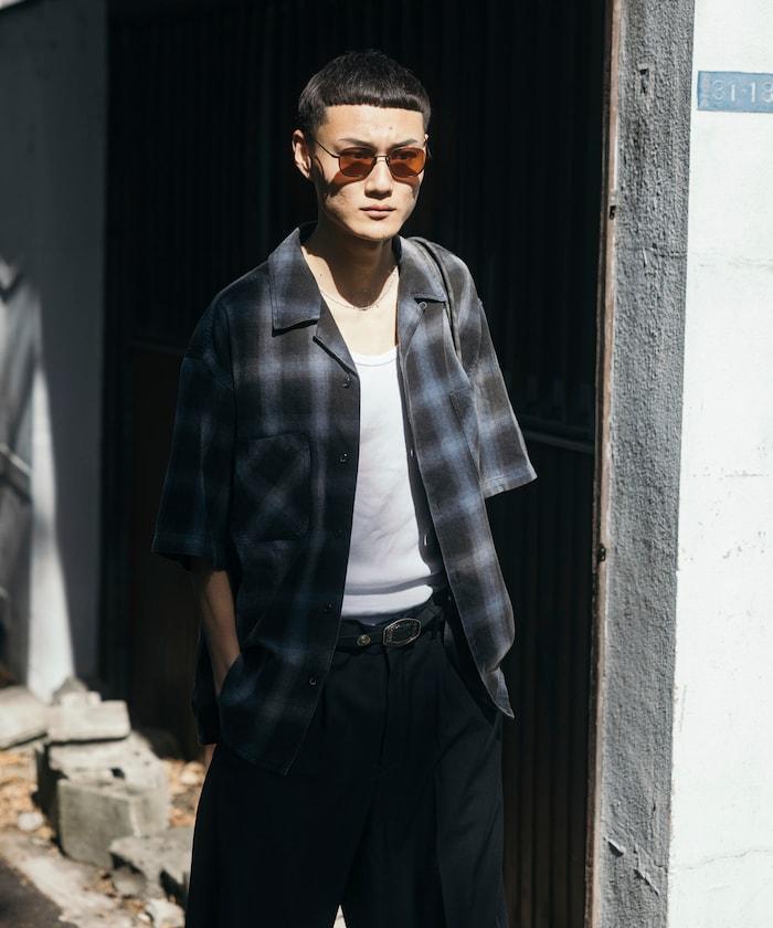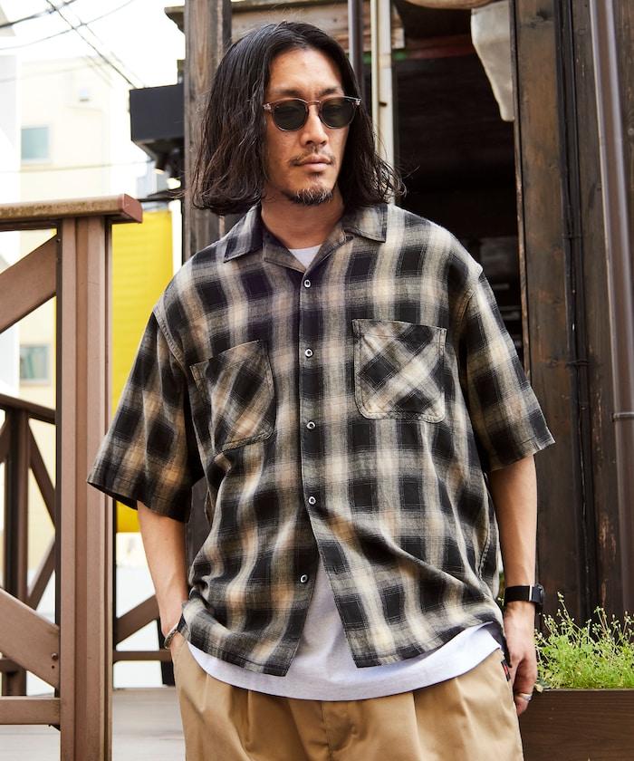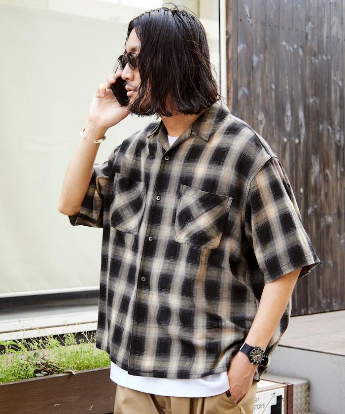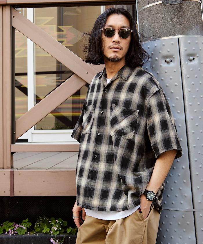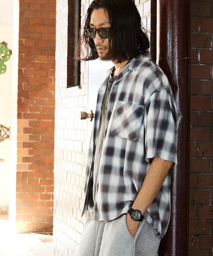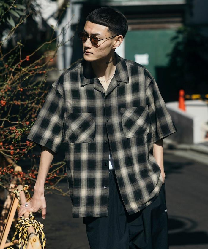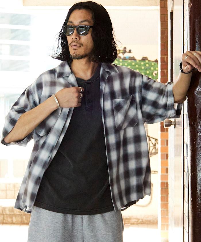 磨邊處理 開領 漸變格子襯衫 短袖