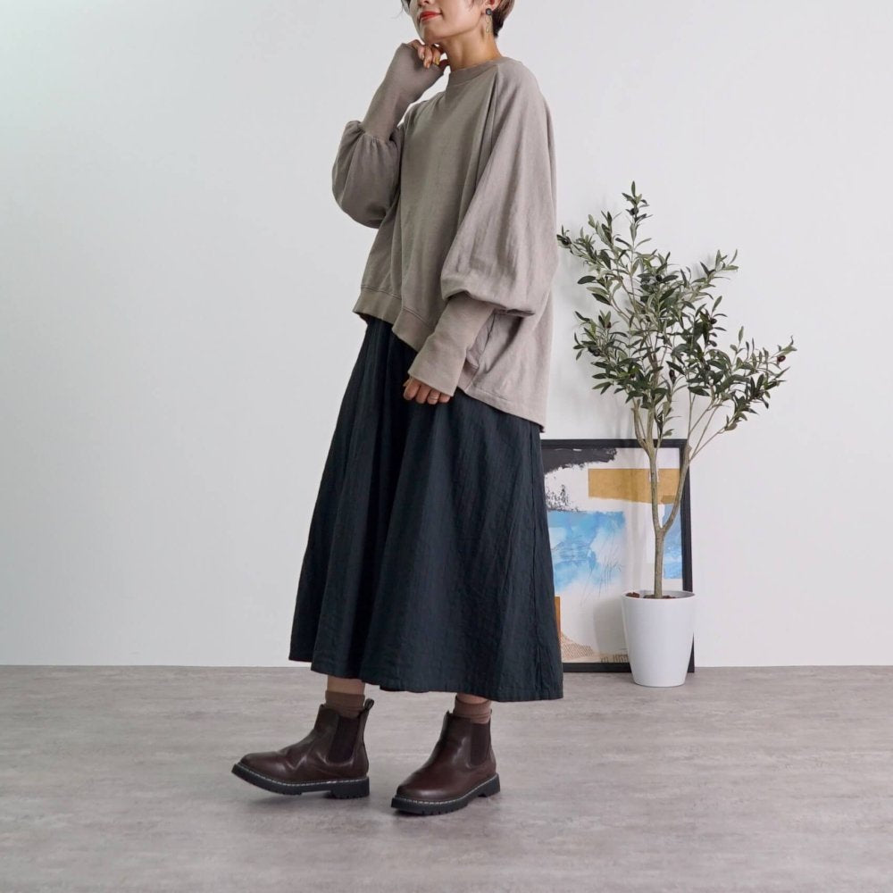 前幅的長度恰到好處,讓腰部看起來更高挑。您還可以期待悅目的增高效果。羅紋下襬使其看起來更加圓潤,營造出柔和、女性化的印象,同時又不會過於隨意。 ^